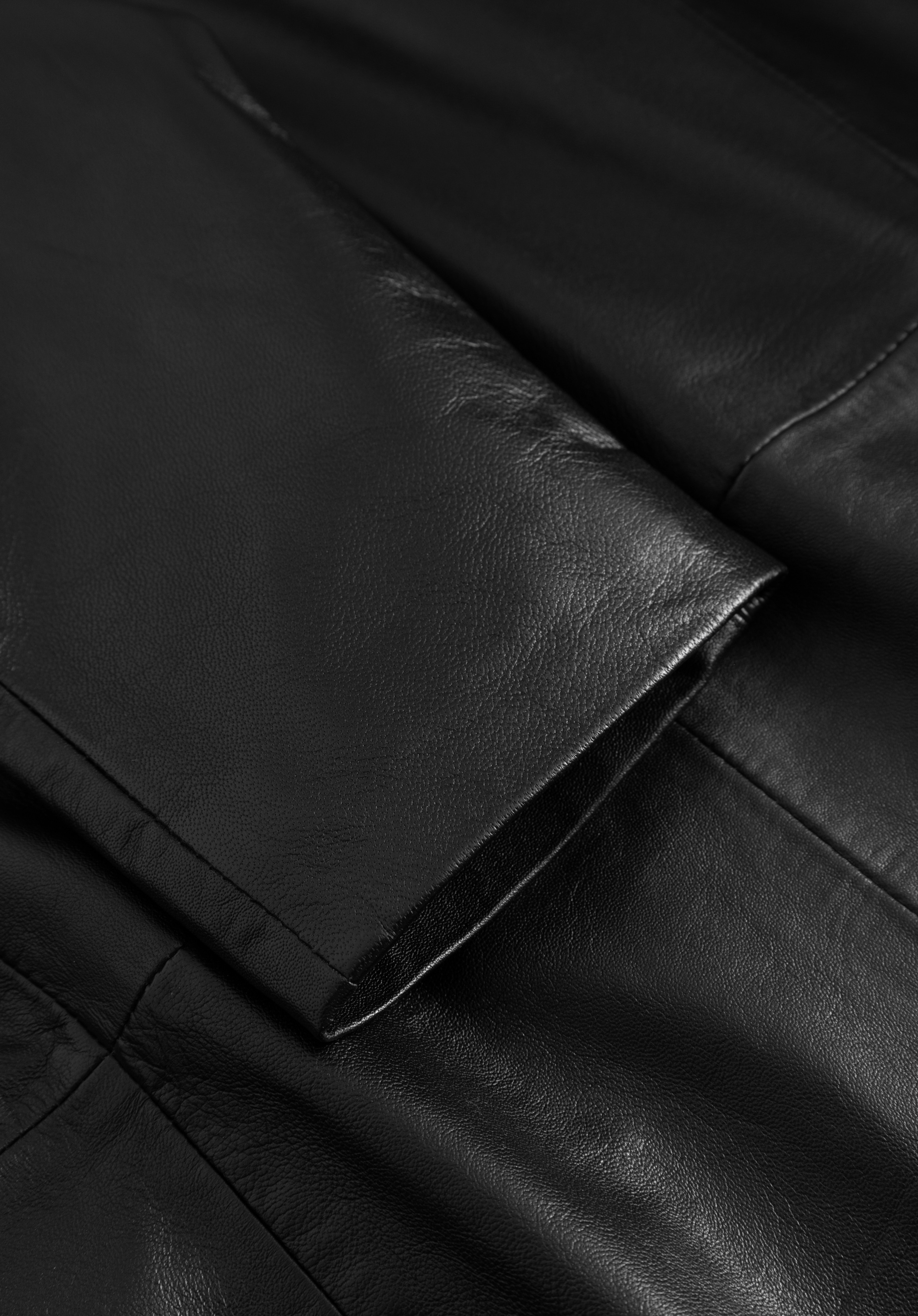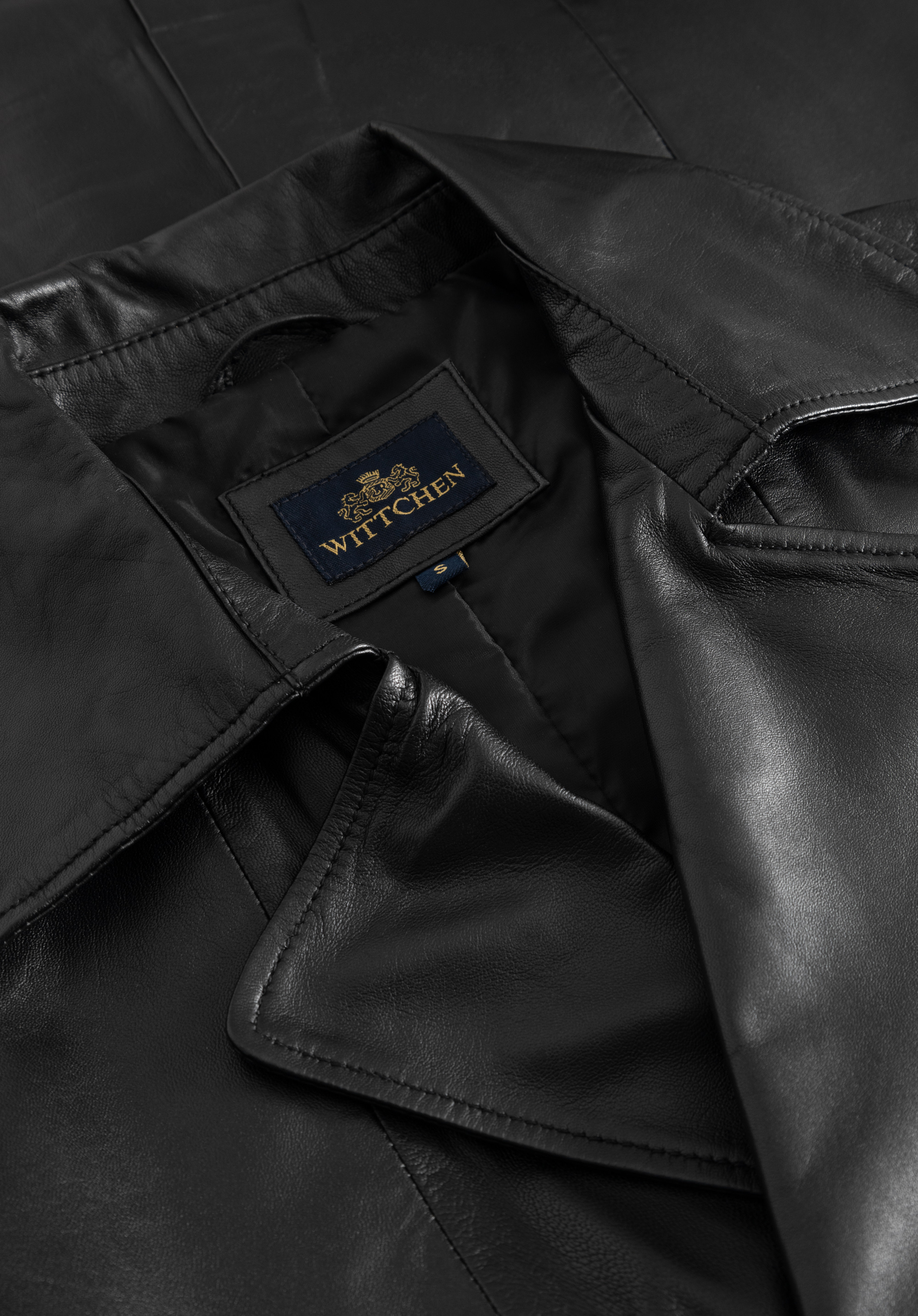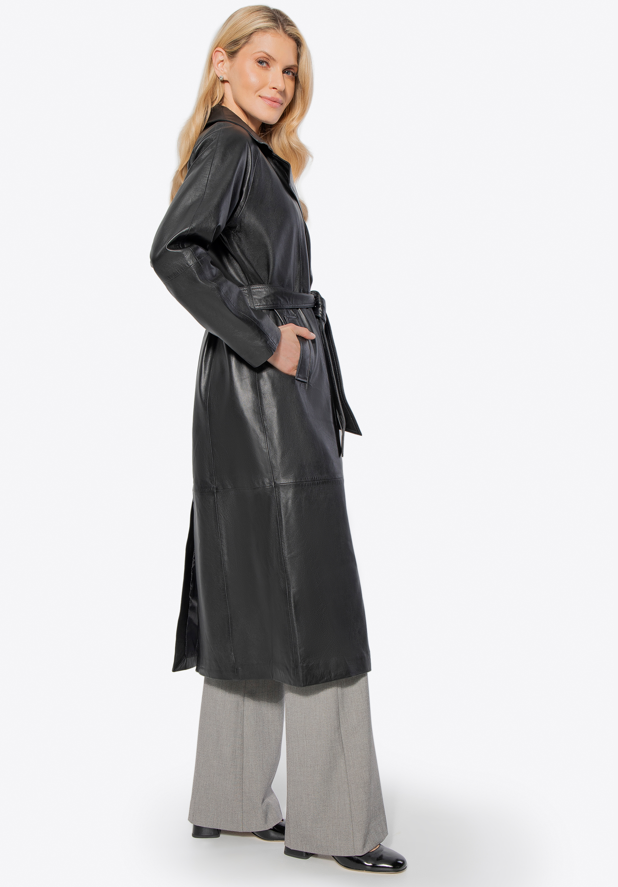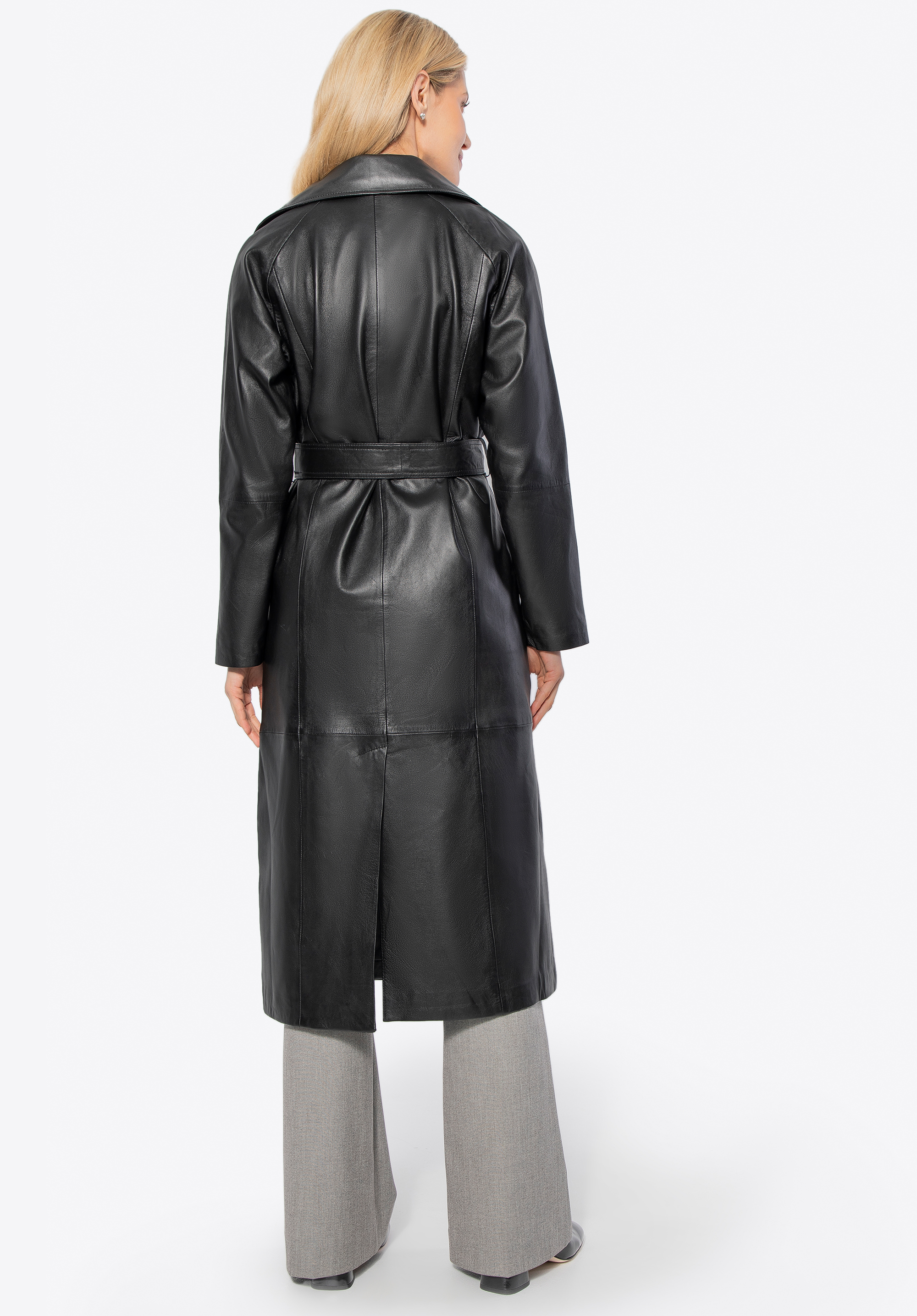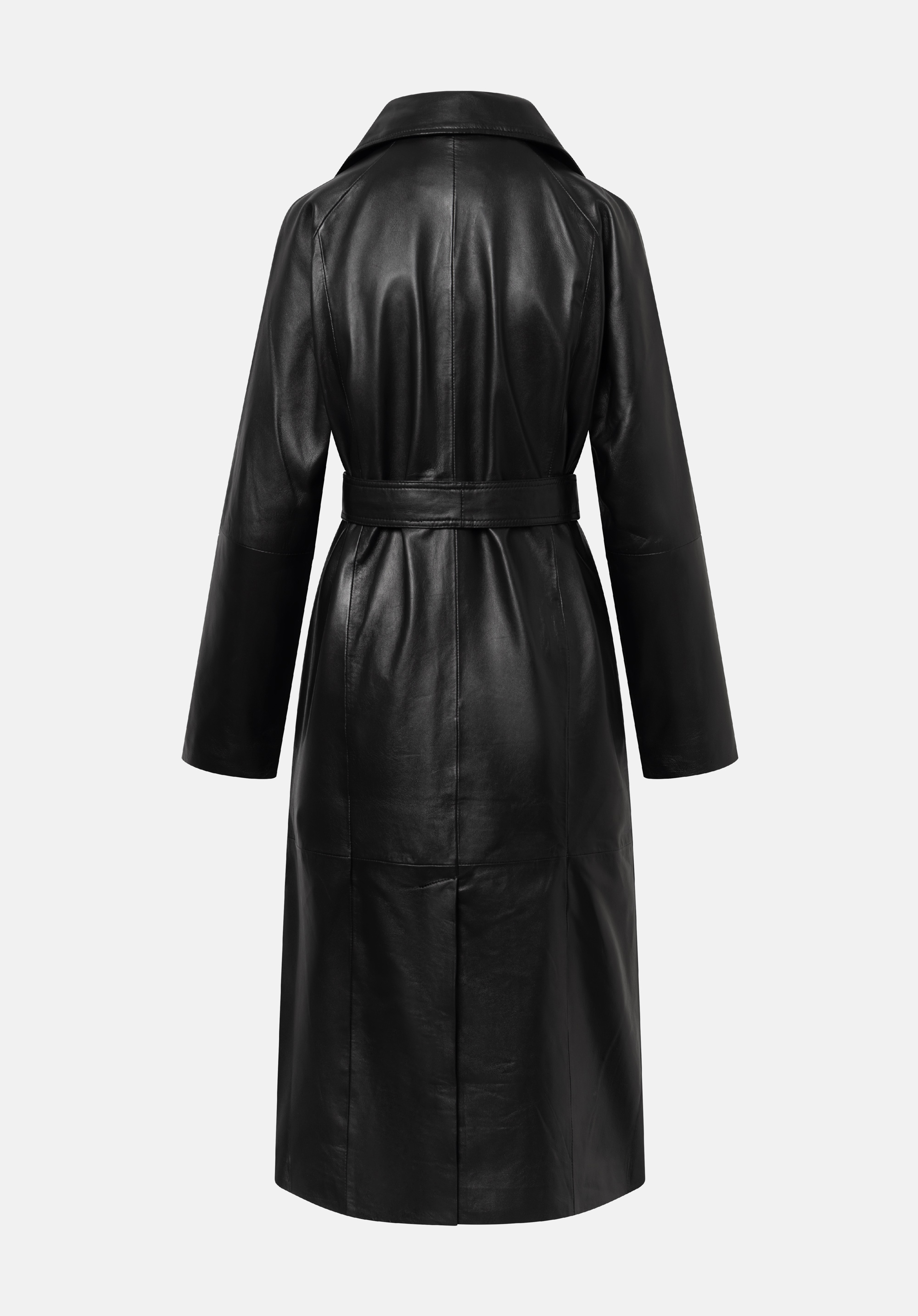 Ten płaszcz z naturalnej skóry owczej to kwintesencja klasyki w nowoczesnym wydaniu. Klasyczny fason w subtelny sposób podkreśla sylwetkę, a pasek pozwala na idealne dopasowanie. Ponadczasowy kołnierz, metalowe logo producenta i pionowe kieszenie wkomponowują się w minimalistyczny design, tworząc płaszcz, który emanuje elegancją i wyrafinowaniem.