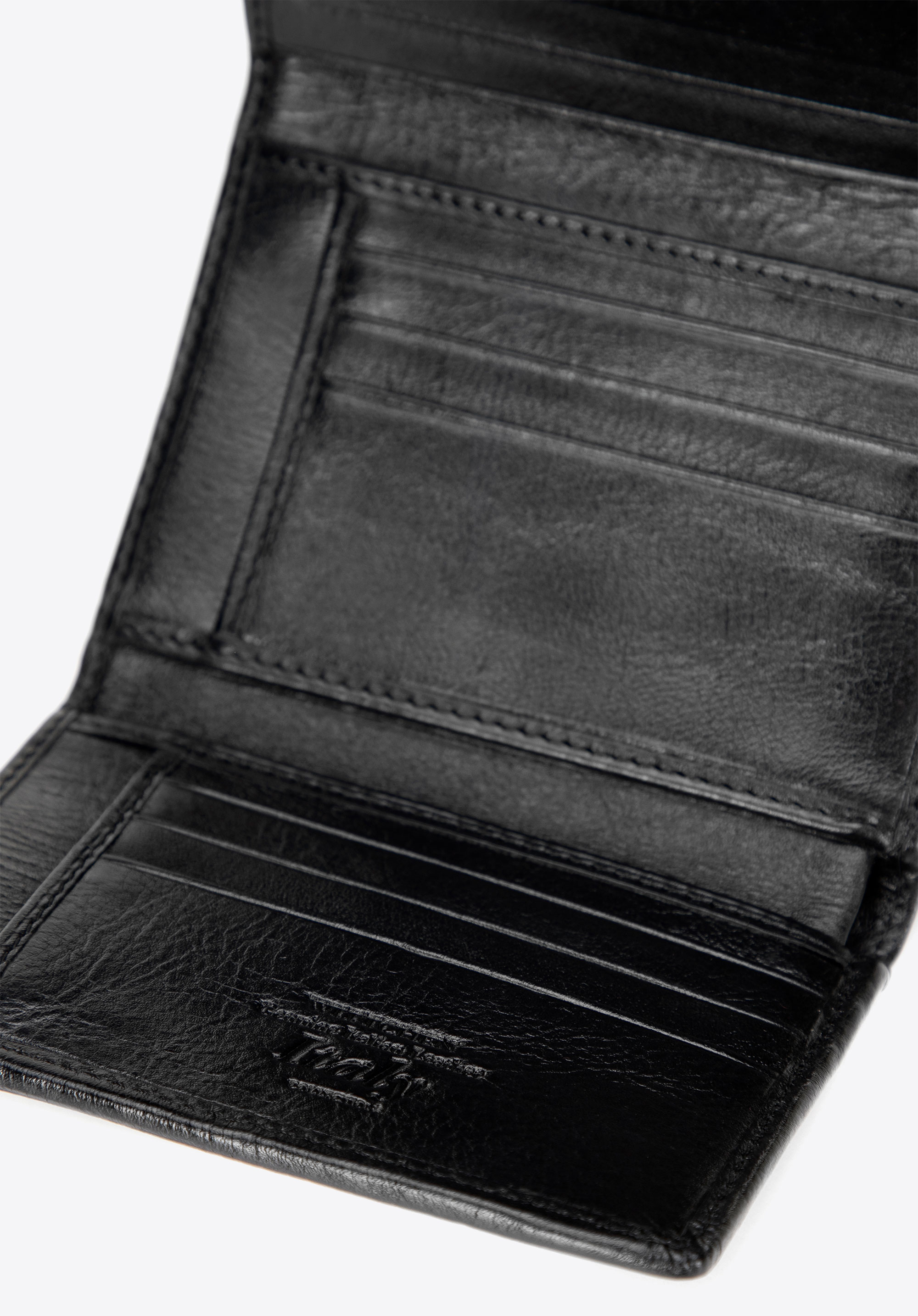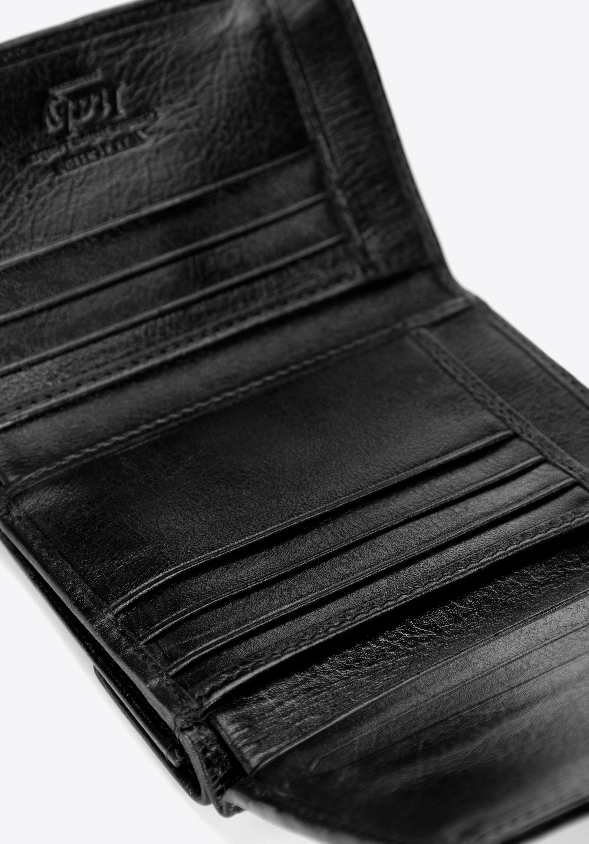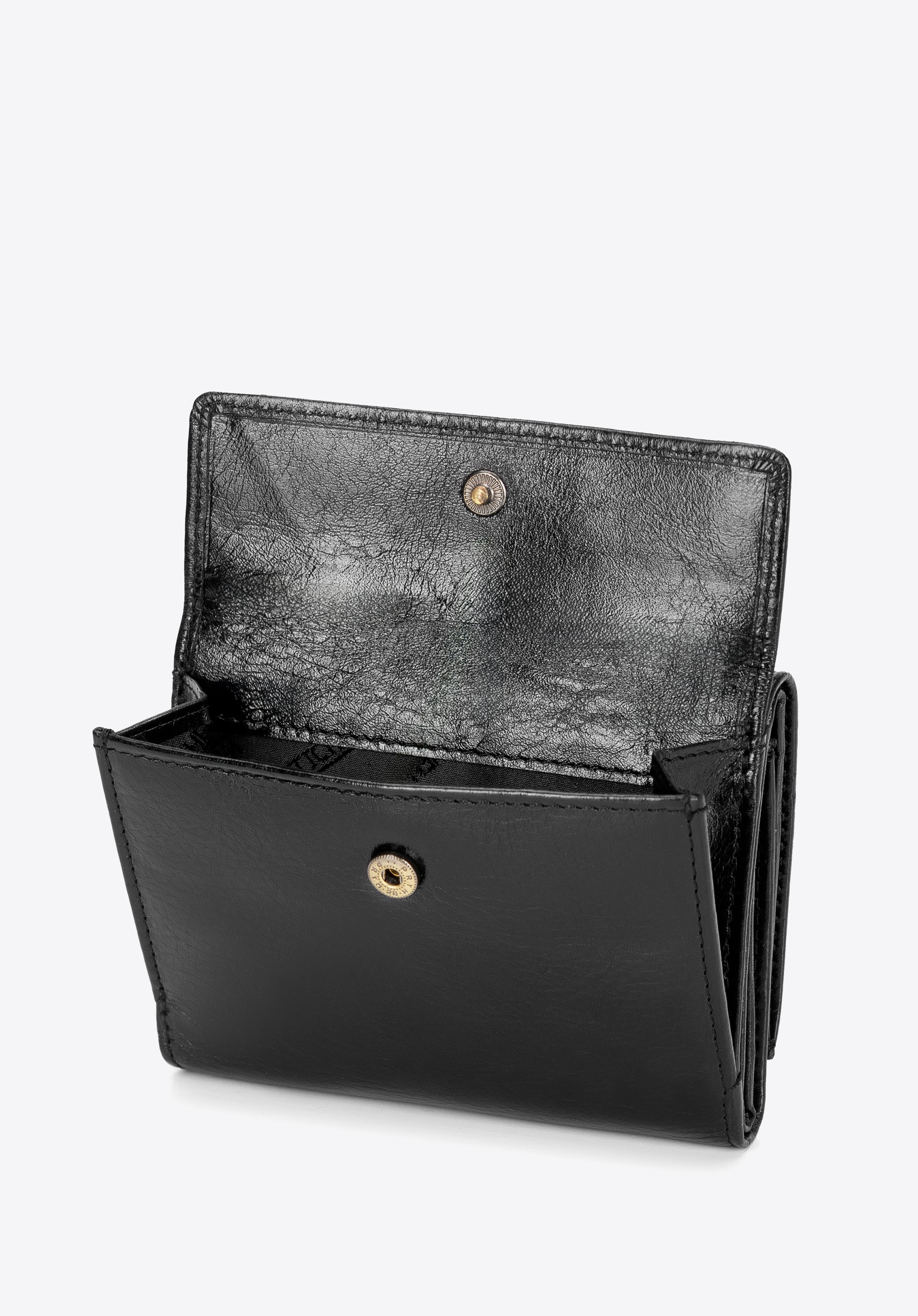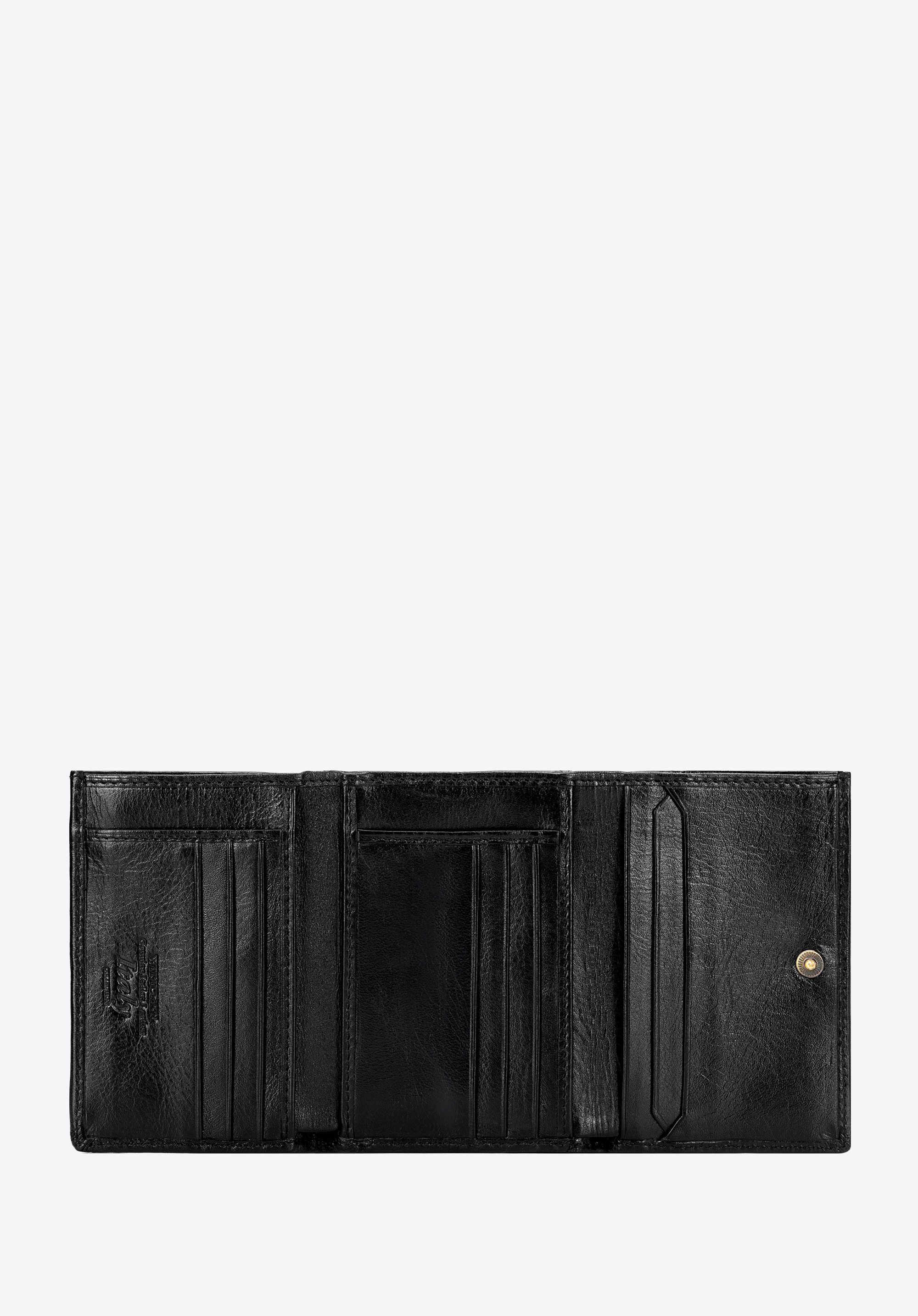 Nasz średniej wielkości portfel wykonany z miękkiej skóry naturalnej to dodatek, który łączy w sobie klasyczną elegancję i funkcjonalność. Subtelny połysk skóry, staranne szycie oraz tłoczone logo WITTCHEN na przodzie sprawiają, że prezentuje się niezwykle szykownie. Zamykanie na napę i praktyczna kieszeń na bilon z tyłu, zapinana na zatrzask, gwarantują wygodę w codziennym użytkowaniu.
