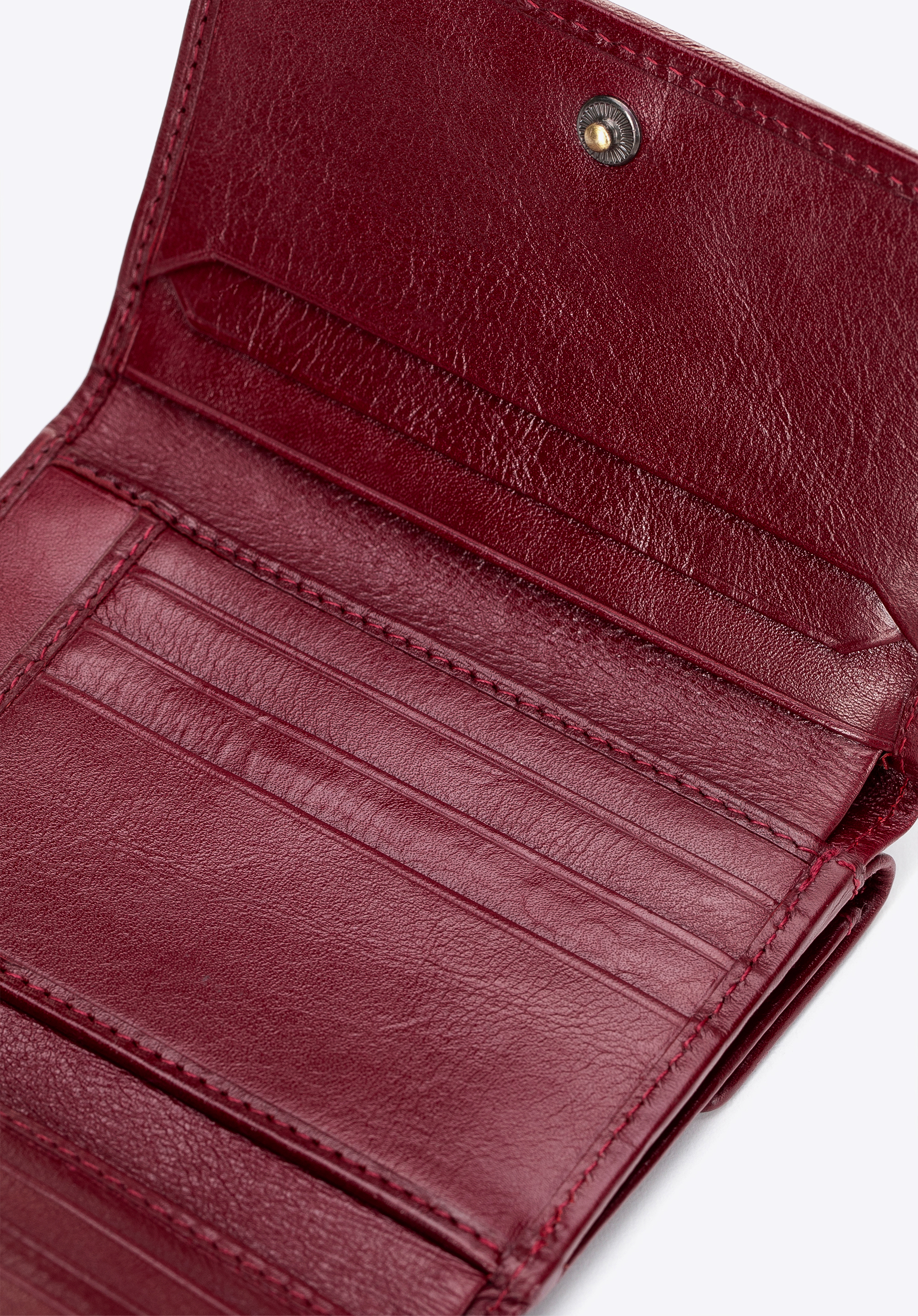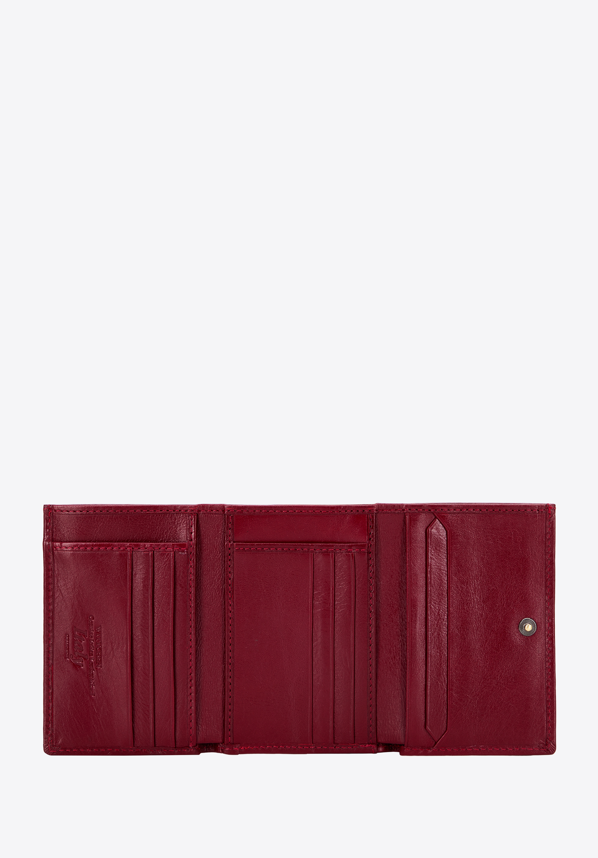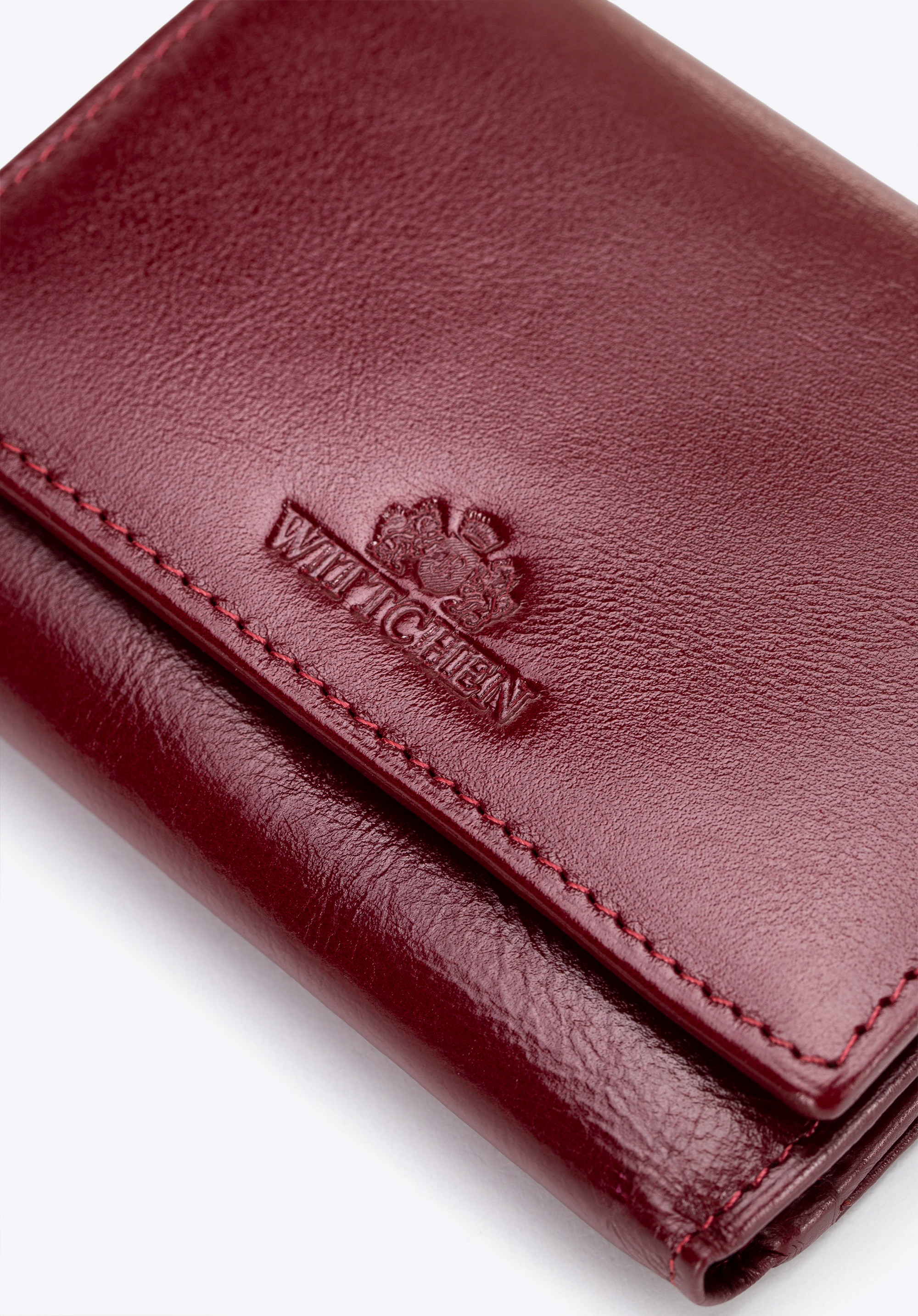 Nasz średniej wielkości portfel wykonany z miękkiej skóry naturalnej to dodatek, który łączy w sobie klasyczną elegancję i funkcjonalność. Subtelny połysk skóry, staranne szycie oraz tłoczone logo WITTCHEN na przodzie sprawiają, że prezentuje się niezwykle szykownie. Zamykanie na napę i praktyczna kieszeń na bilon z tyłu, zapinana na zatrzask, gwarantują wygodę w codziennym użytkowaniu.