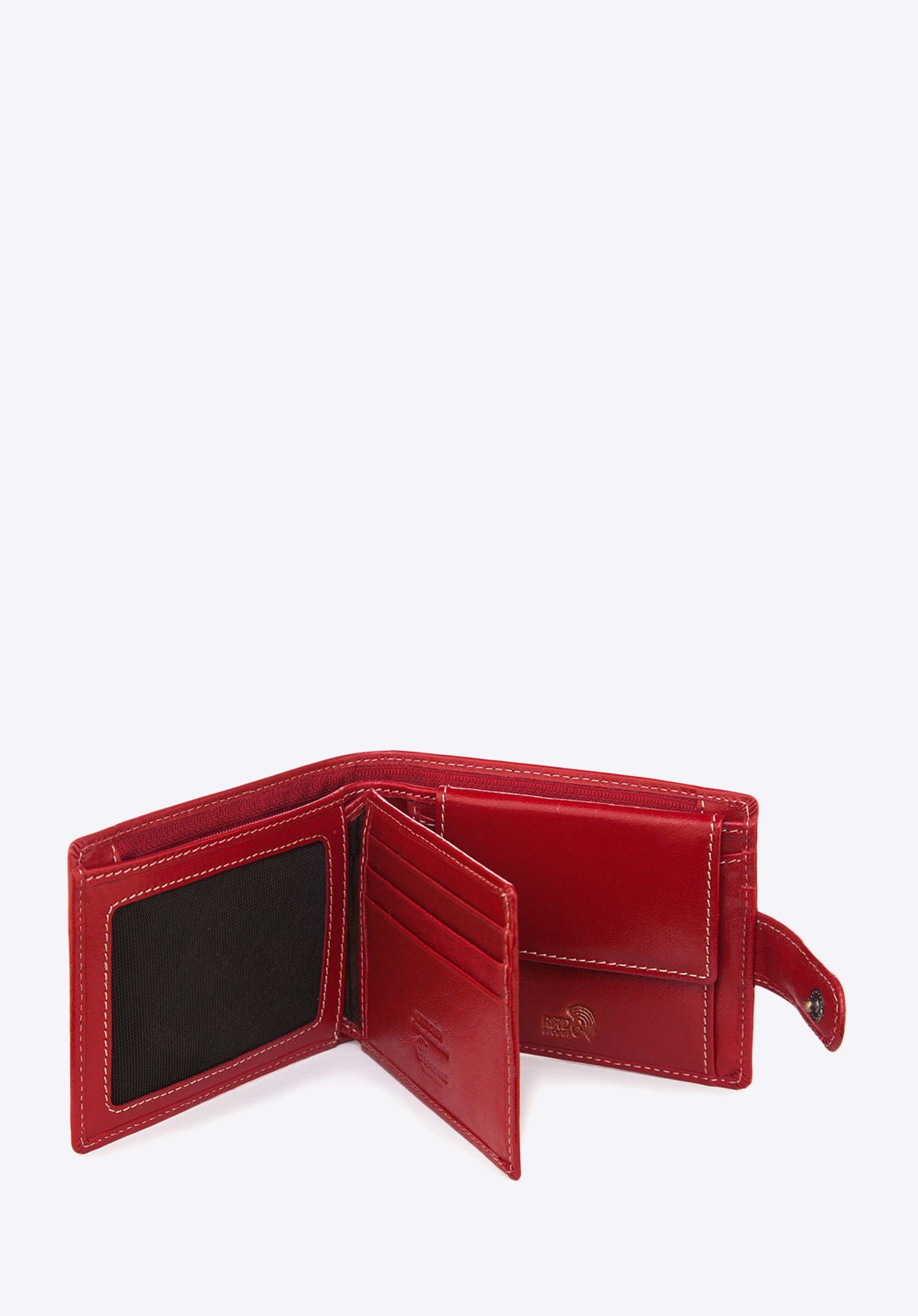 - Bezpieczeństwo: Skórzany portfel jest zabezpieczony paskiem zamykanym na napę, zapewnia skuteczną ochronę Twoich cennych rzeczy.