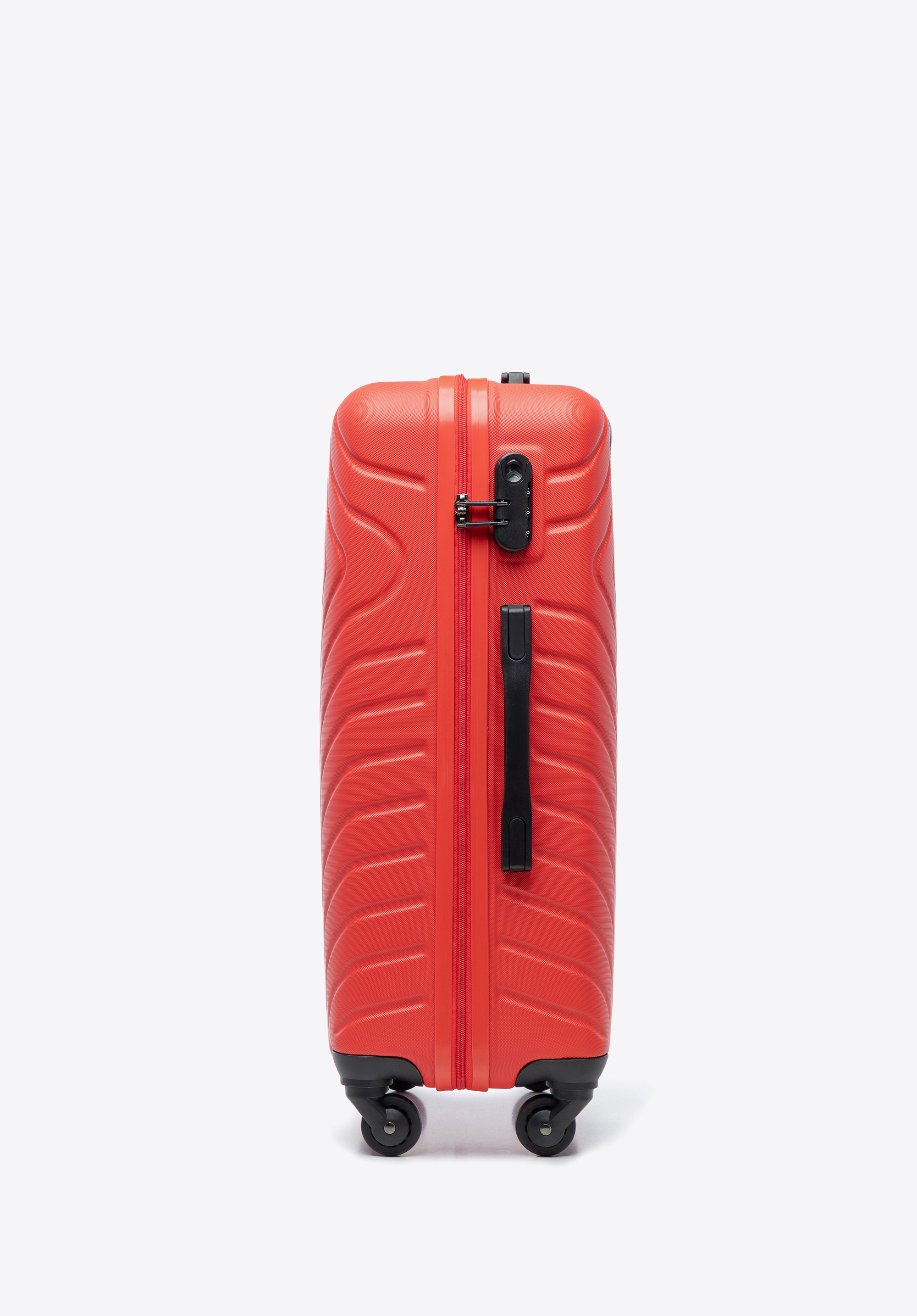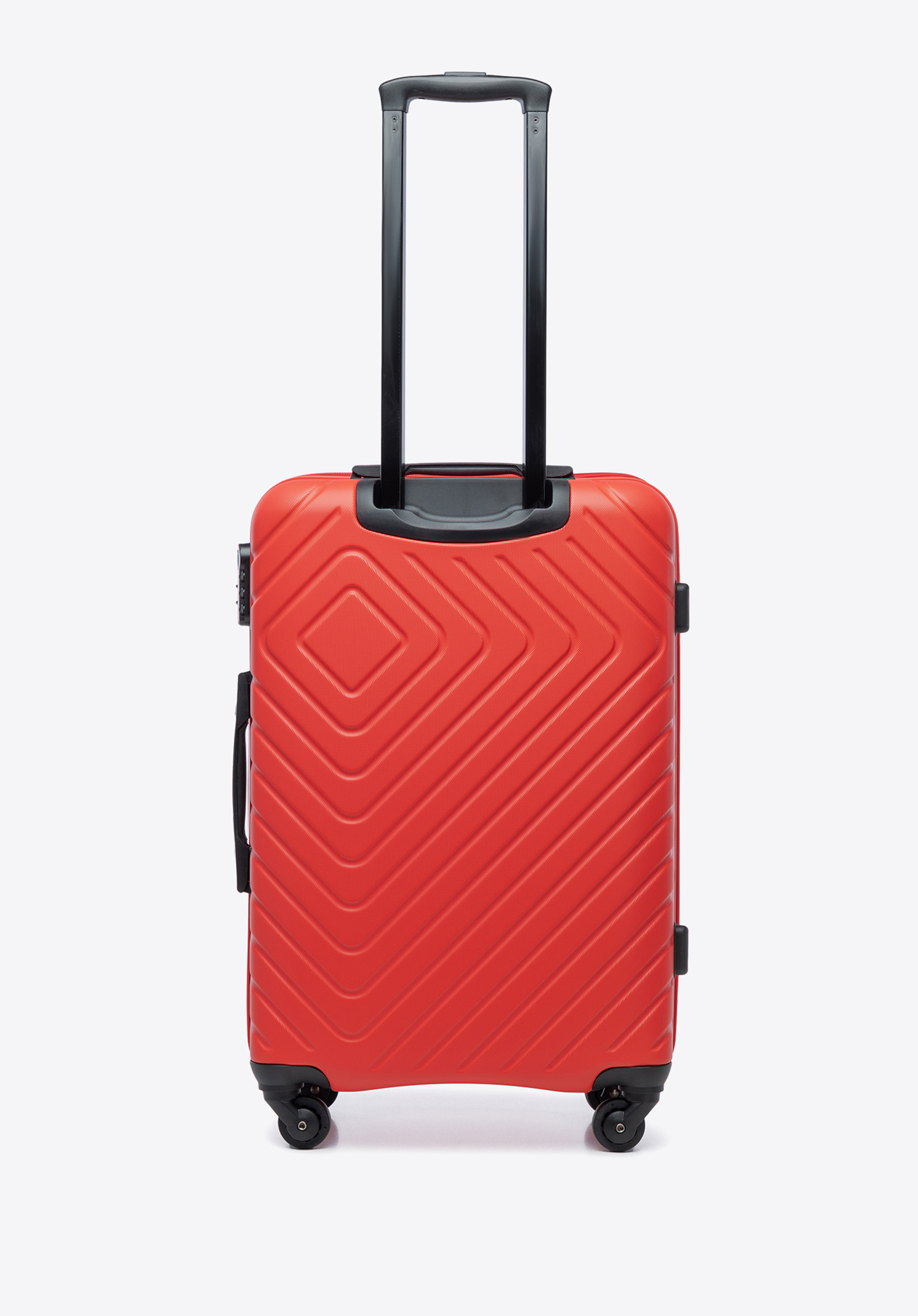 Średnia walizka i kosmetyczka z ABS-u z geometrycznym tłoczeniem czerwone