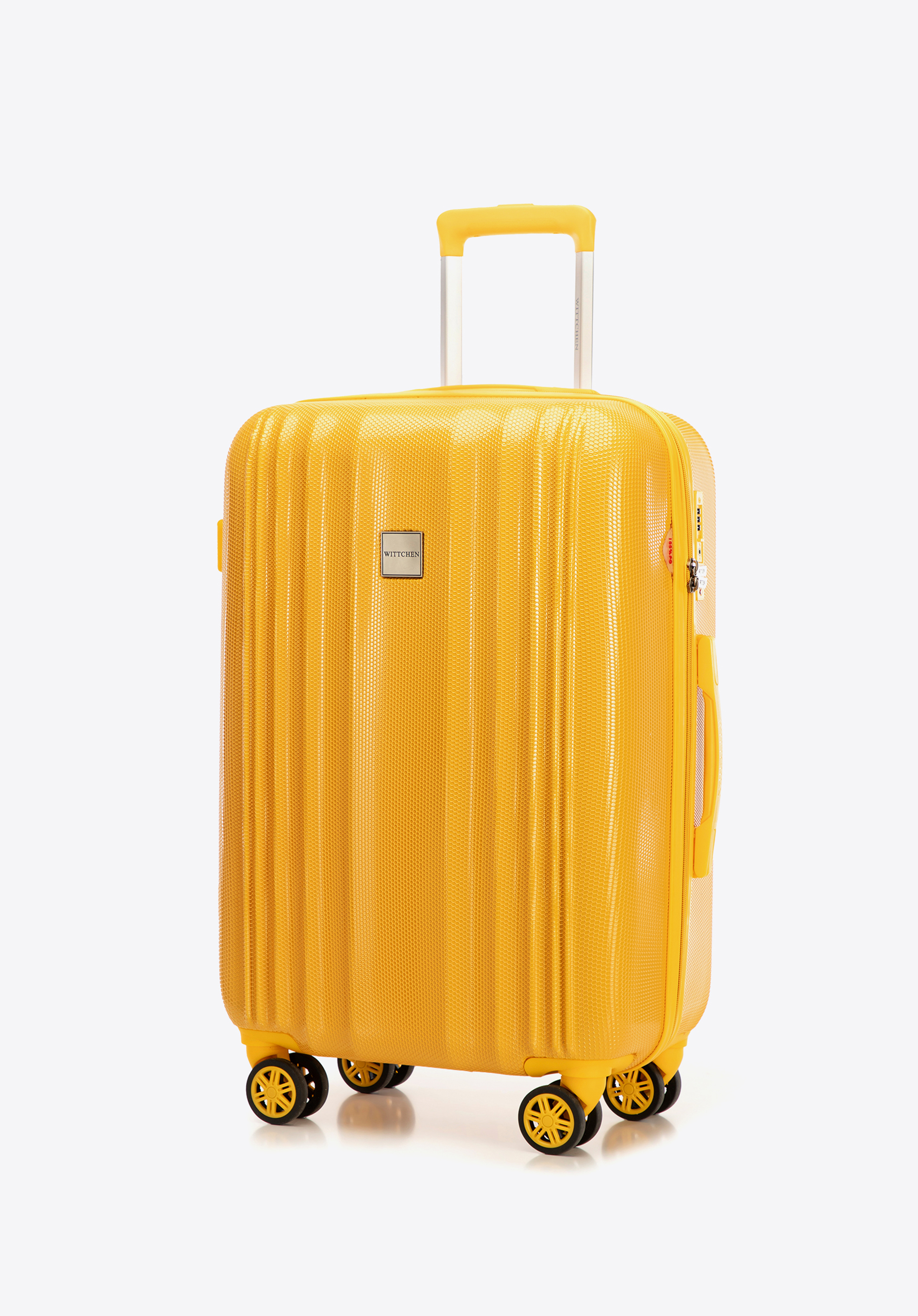 - Design i praktyczne detale: Eleganckie pionowe tłoczenia oraz faktura plastra miodu nadają walizce nowoczesny, stylowy wygląd, jednocześnie chroniąc ją przed zarysowaniami.