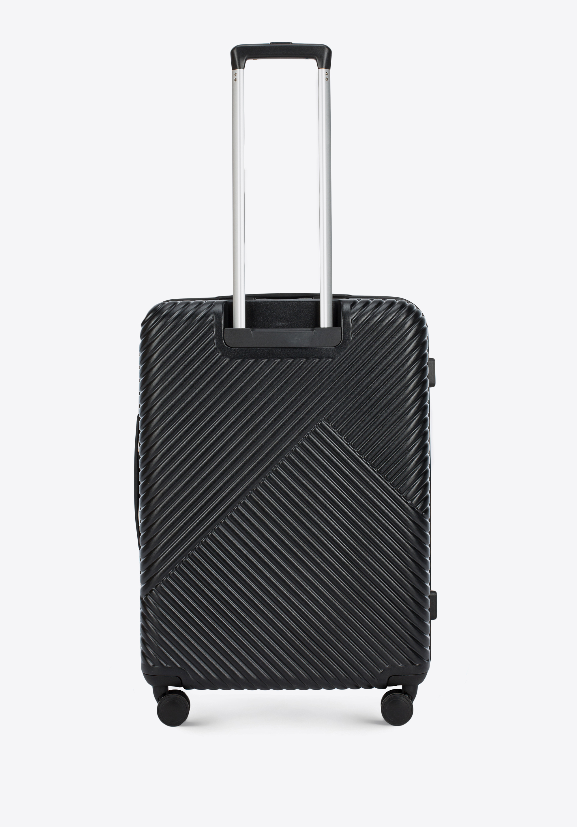- Komfort prowadzenia: Wysuwany uchwyt i miękka, gumowana rączka gwarantują wygodne manewrowanie oraz przenoszenie bagażu.