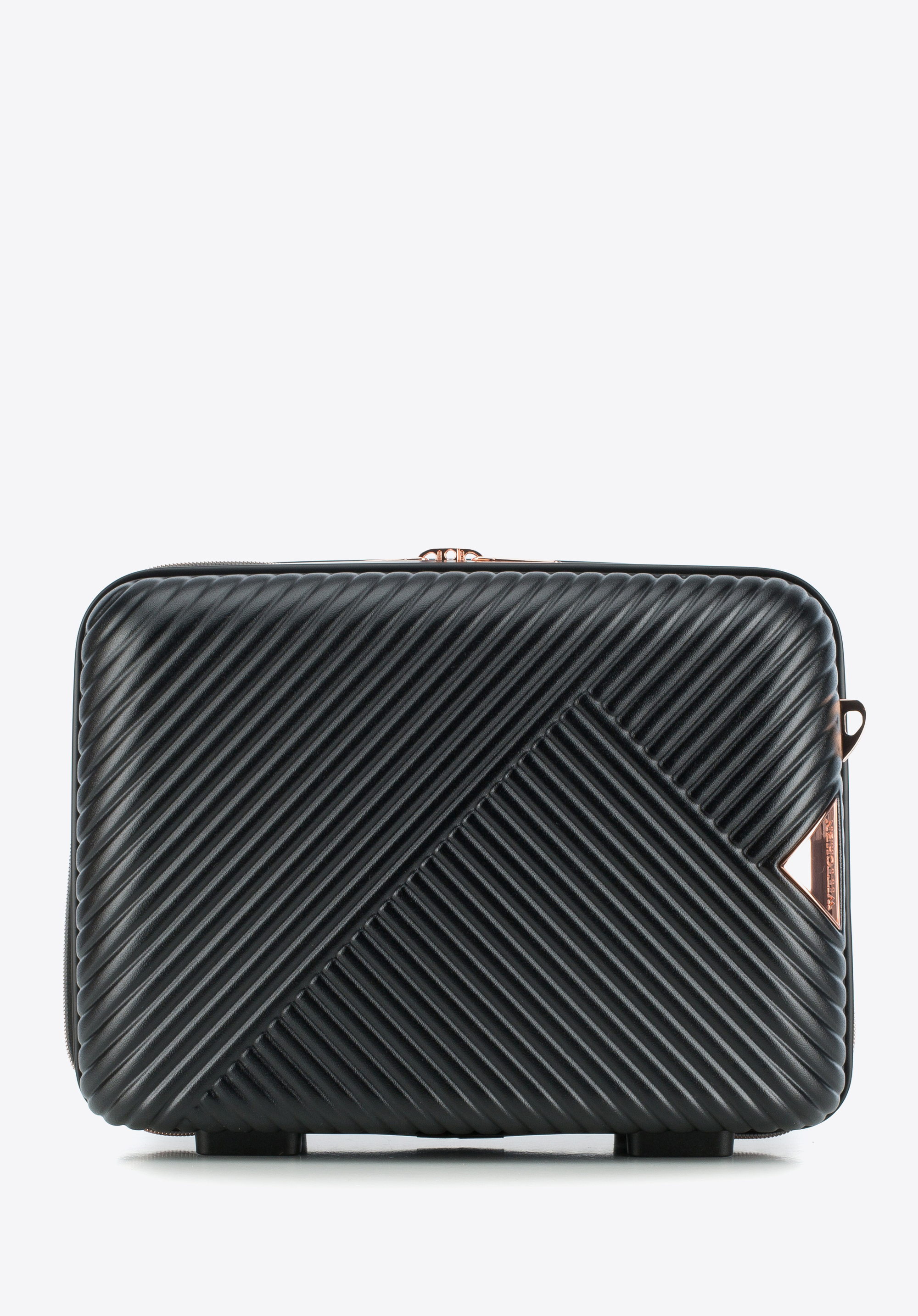 - Stabilność: Nóżki ochronne w walizce i kosmetyczce zabezpieczają je przed zabrudzeniem i uszkodzeniami podczas stawiania.