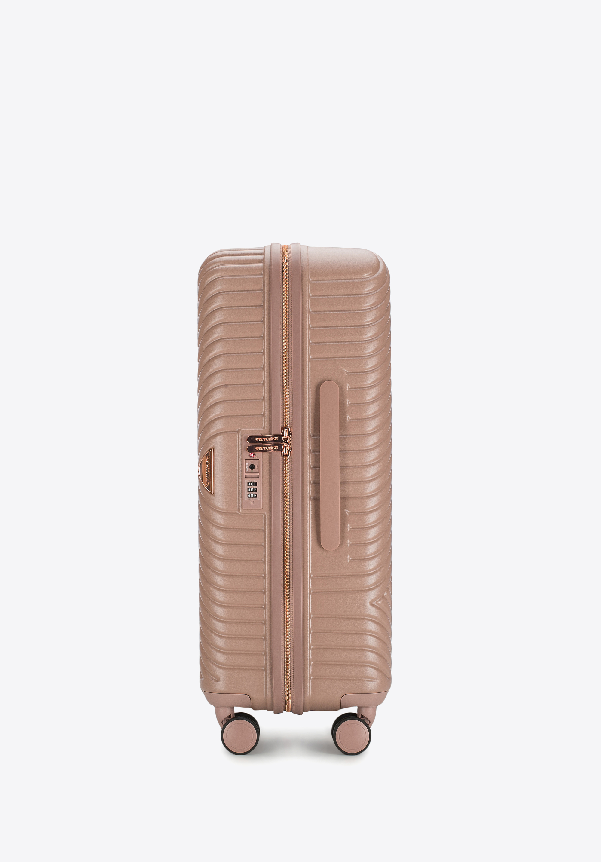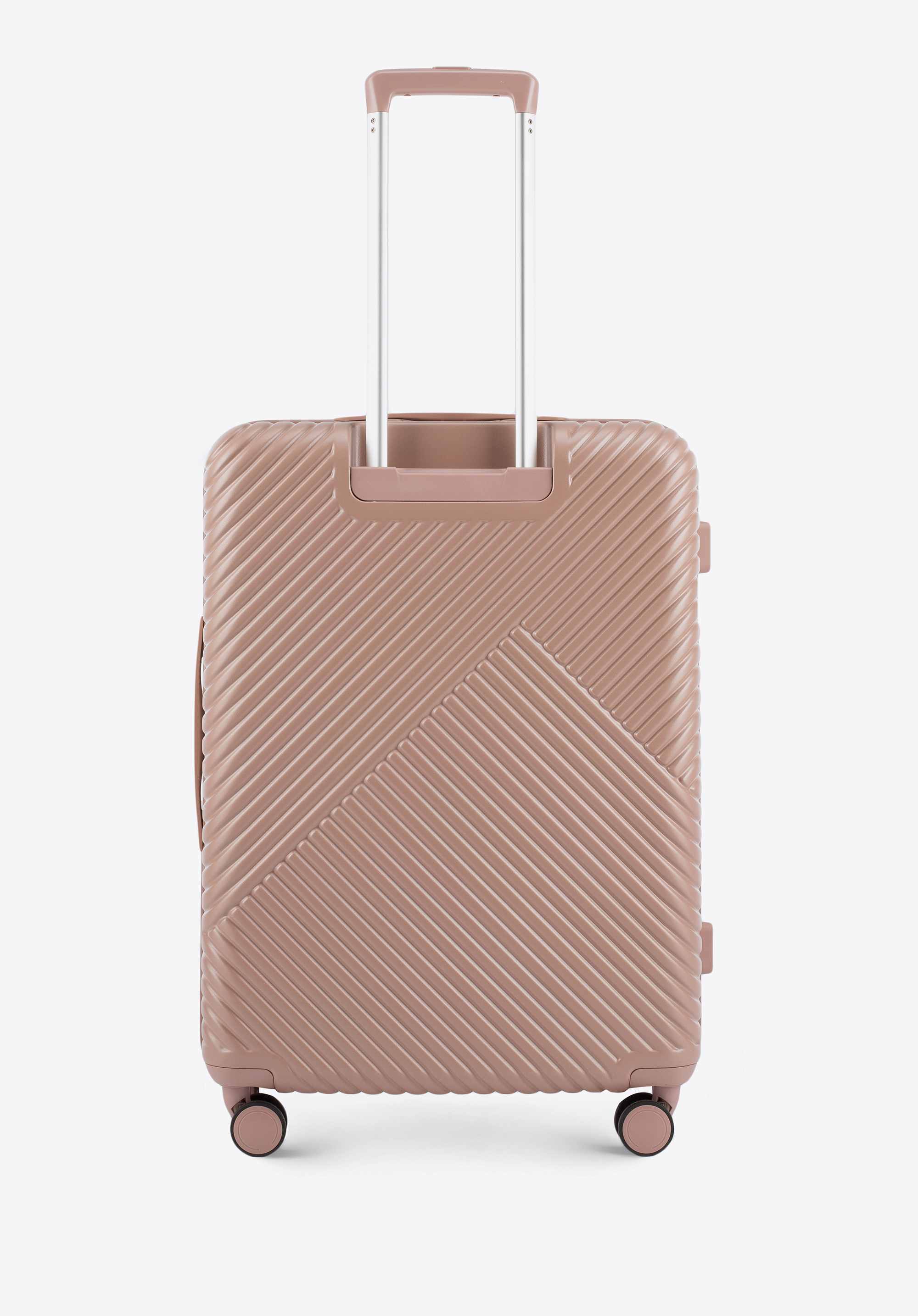 Stylowy duet, który doda elegancji każdej podróży! Średnia walizka i dopasowana kosmetyczka z kolekcji GL Style zostały wykonane z trwałego polikarbonu o matowym wykończeniu, łączącego lekkość z wysoką odpornością na uszkodzenia. Geometryczne tłoczenia oraz połyskujące okucia w kolorze różowego złota podkreślają nowoczesny charakter kolekcji. To komplet, dzięki któremu każdy wyjazd – od krótkiego wypadu po dłuższe podróże – będzie nie tylko wygodny, ale również wyjątkowo stylowy.
