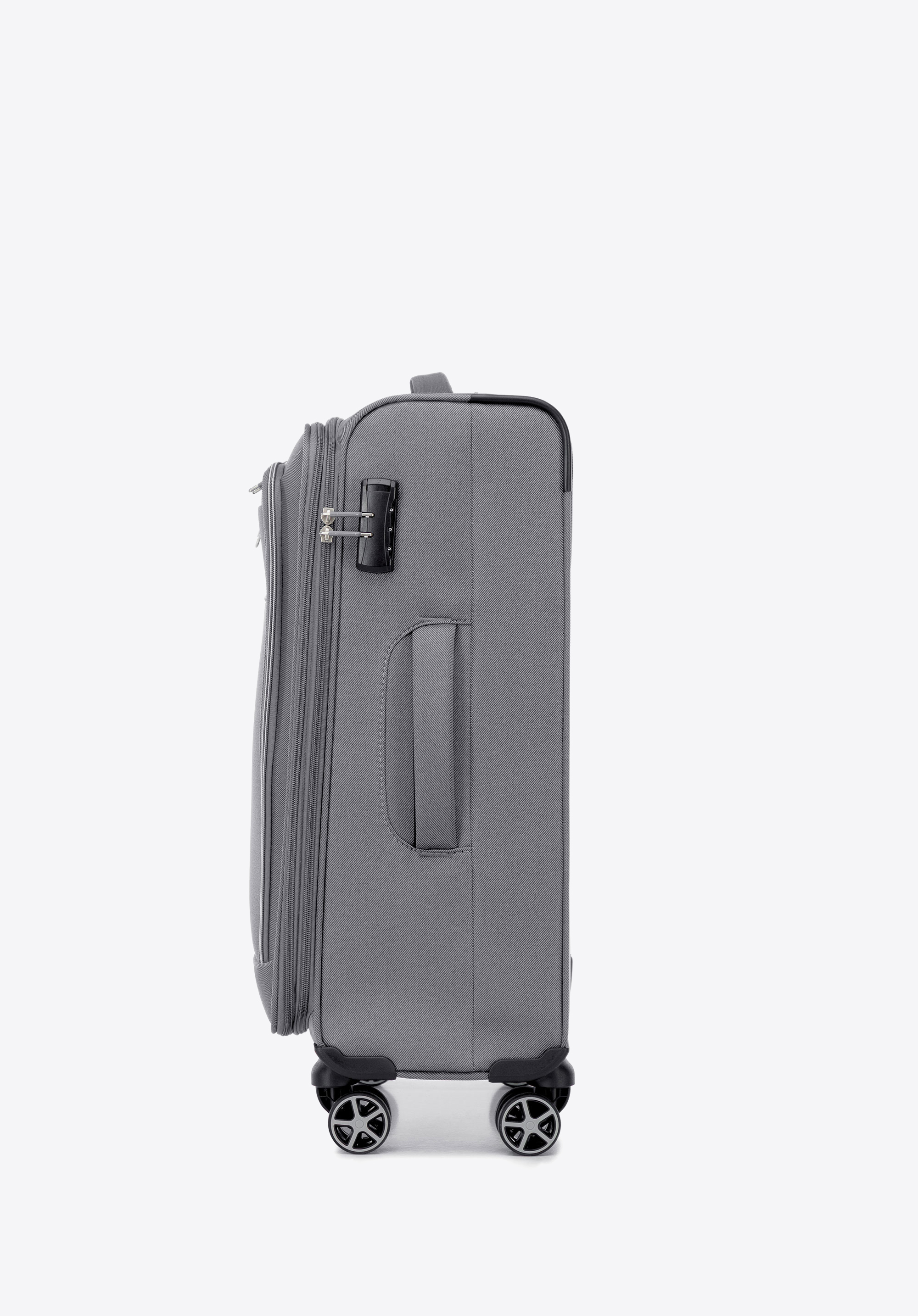 - Poszerzenie: Funkcja rozszerzenia walizki o dodatkowe 4 cm, zwiększająca jej pojemność.
