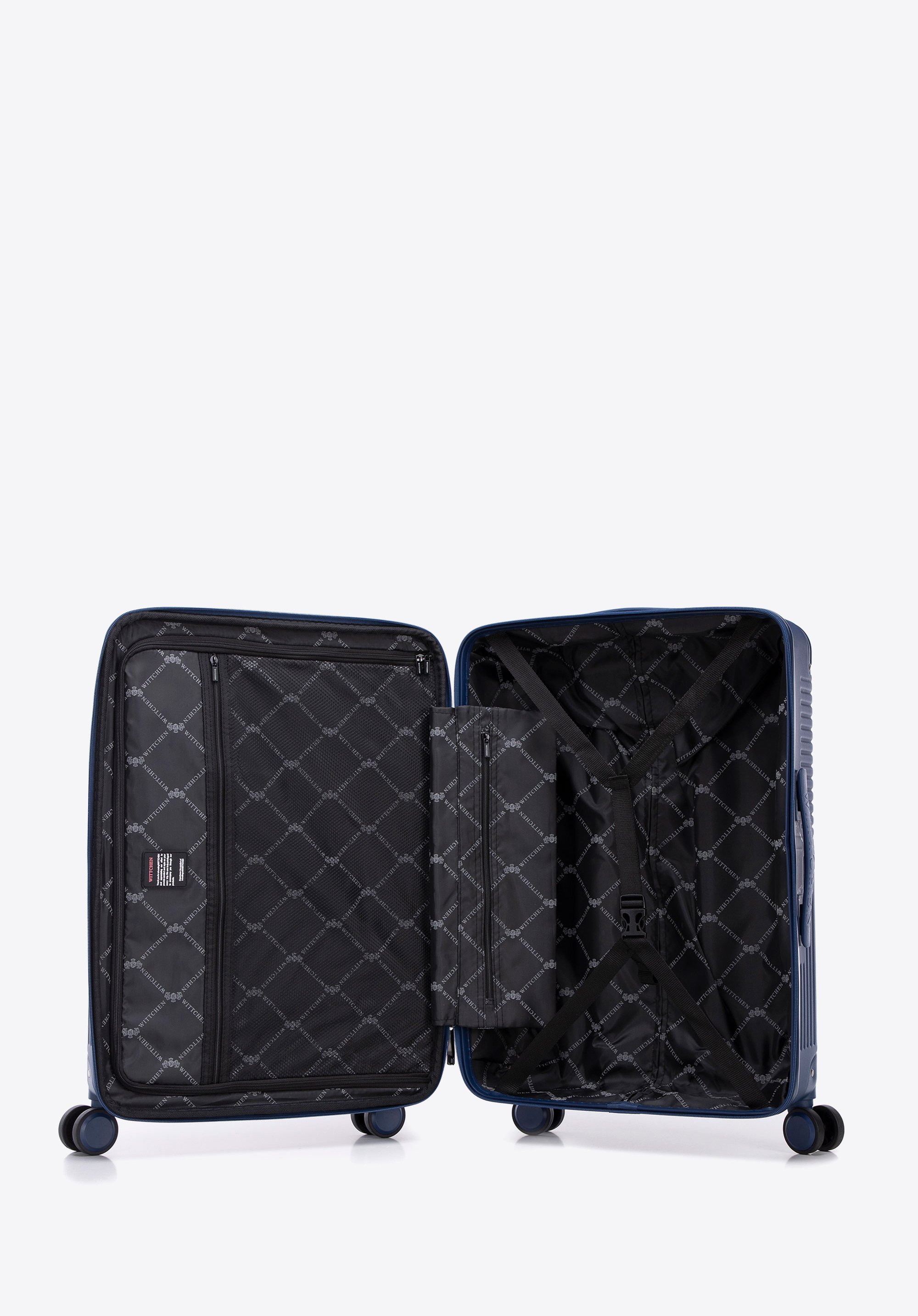 - Połączenie bezpieczeństwa i funkcjonalności: Wzmocnione narożniki walizki w miejscach ze strukturą ABS zwiększają jej odporność na uderzenia i uszkodzenia.