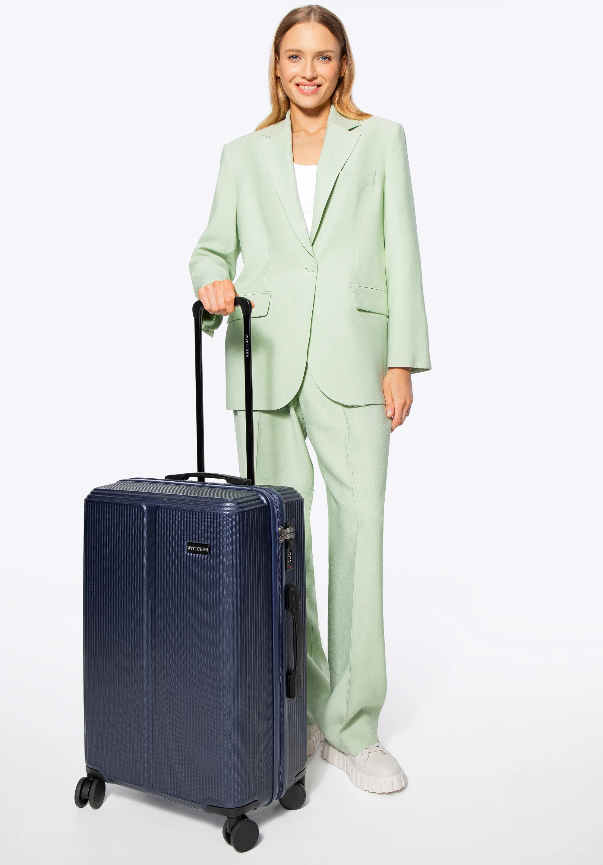 - Design: Pionowe żłobienia i czarne detale nadają walizce nowoczesny wygląd.