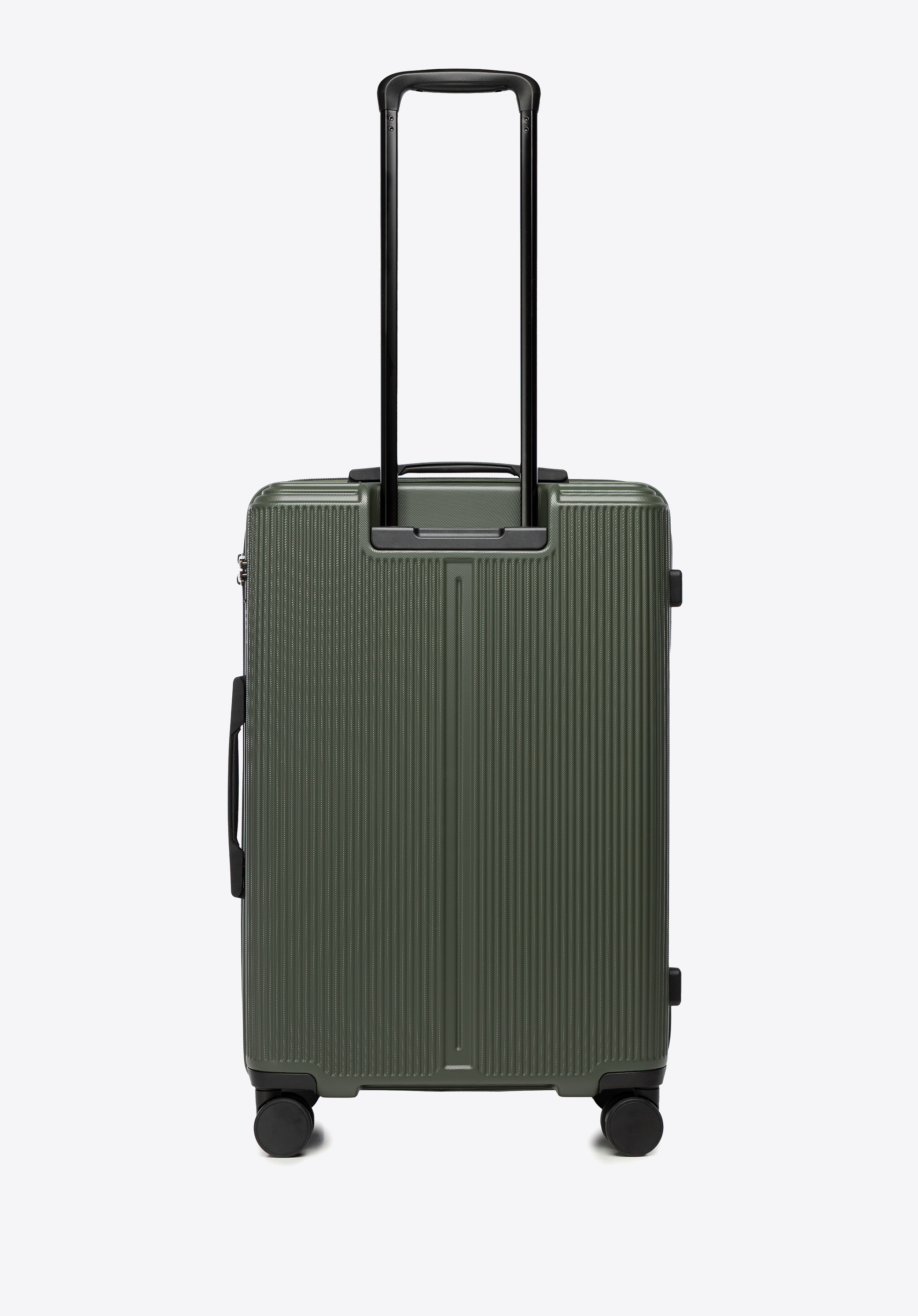 - Design: Pionowe żłobienia i czarne detale nadają walizce nowoczesny wygląd.
