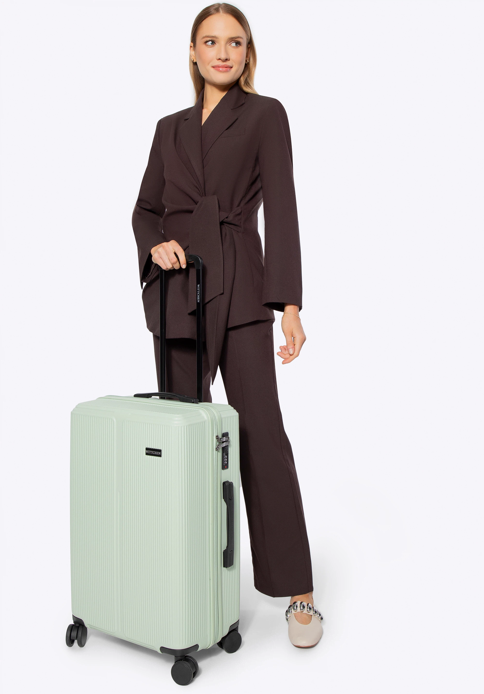 - Design: Pionowe żłobienia i czarne detale nadają walizce nowoczesny wygląd.