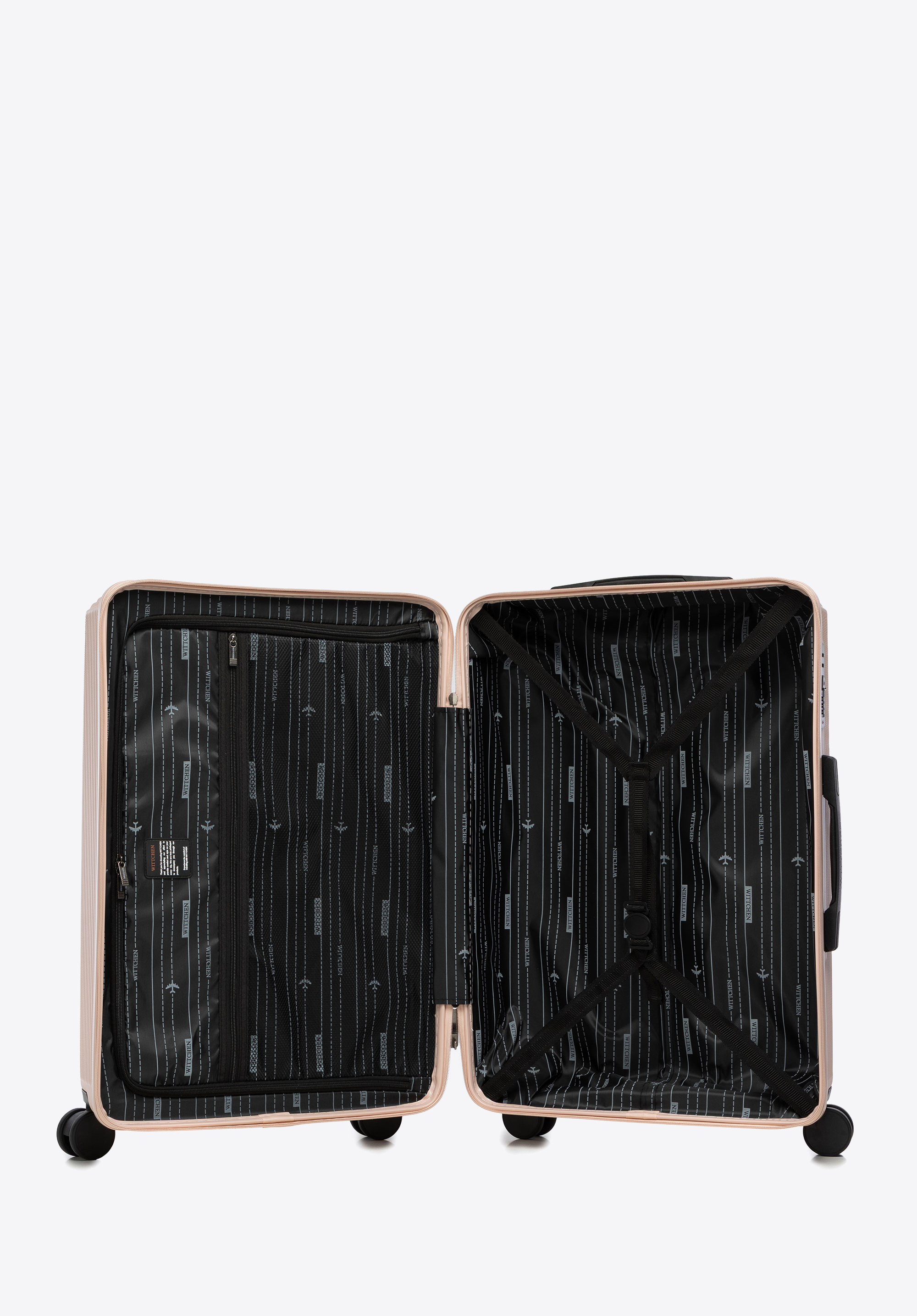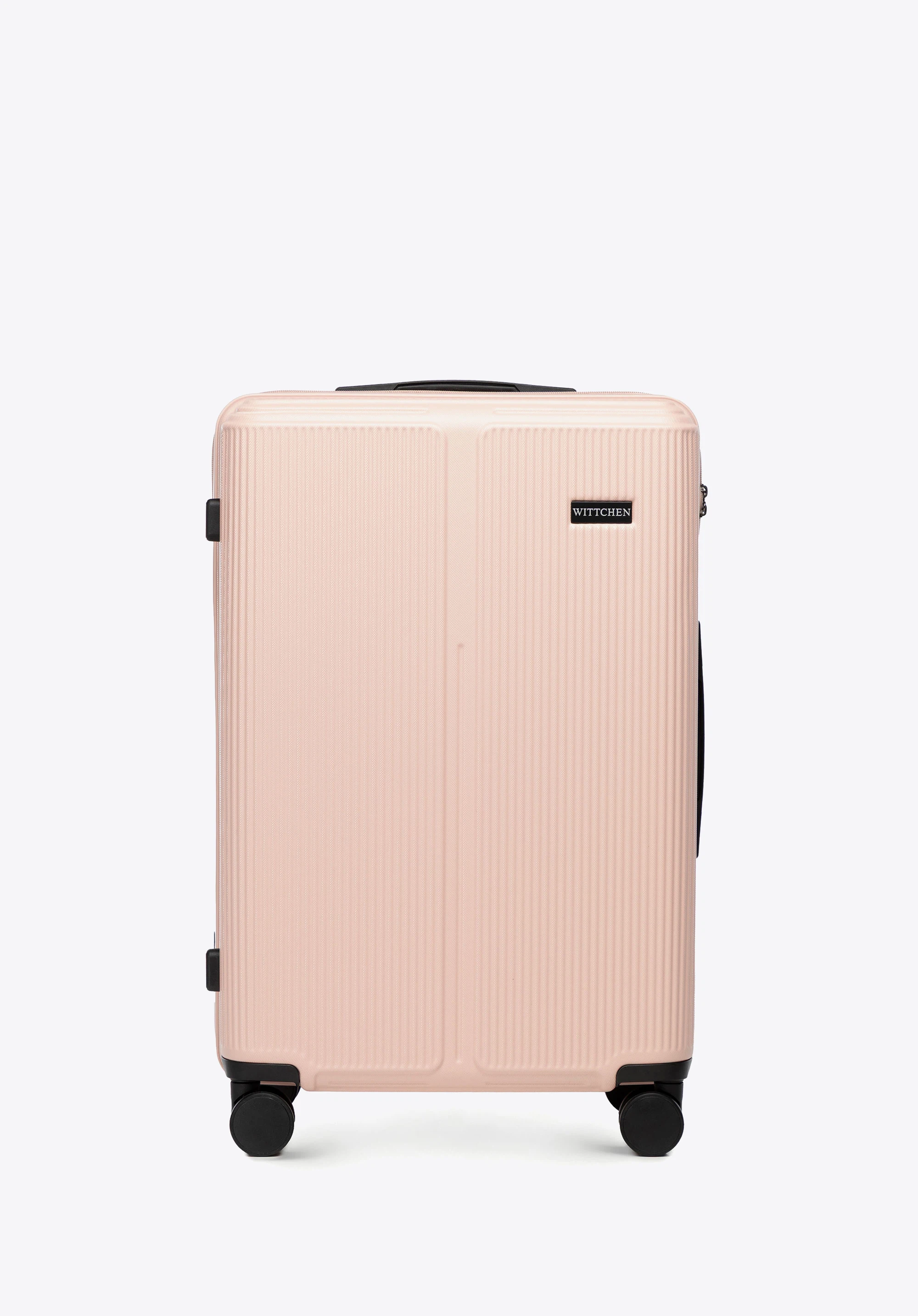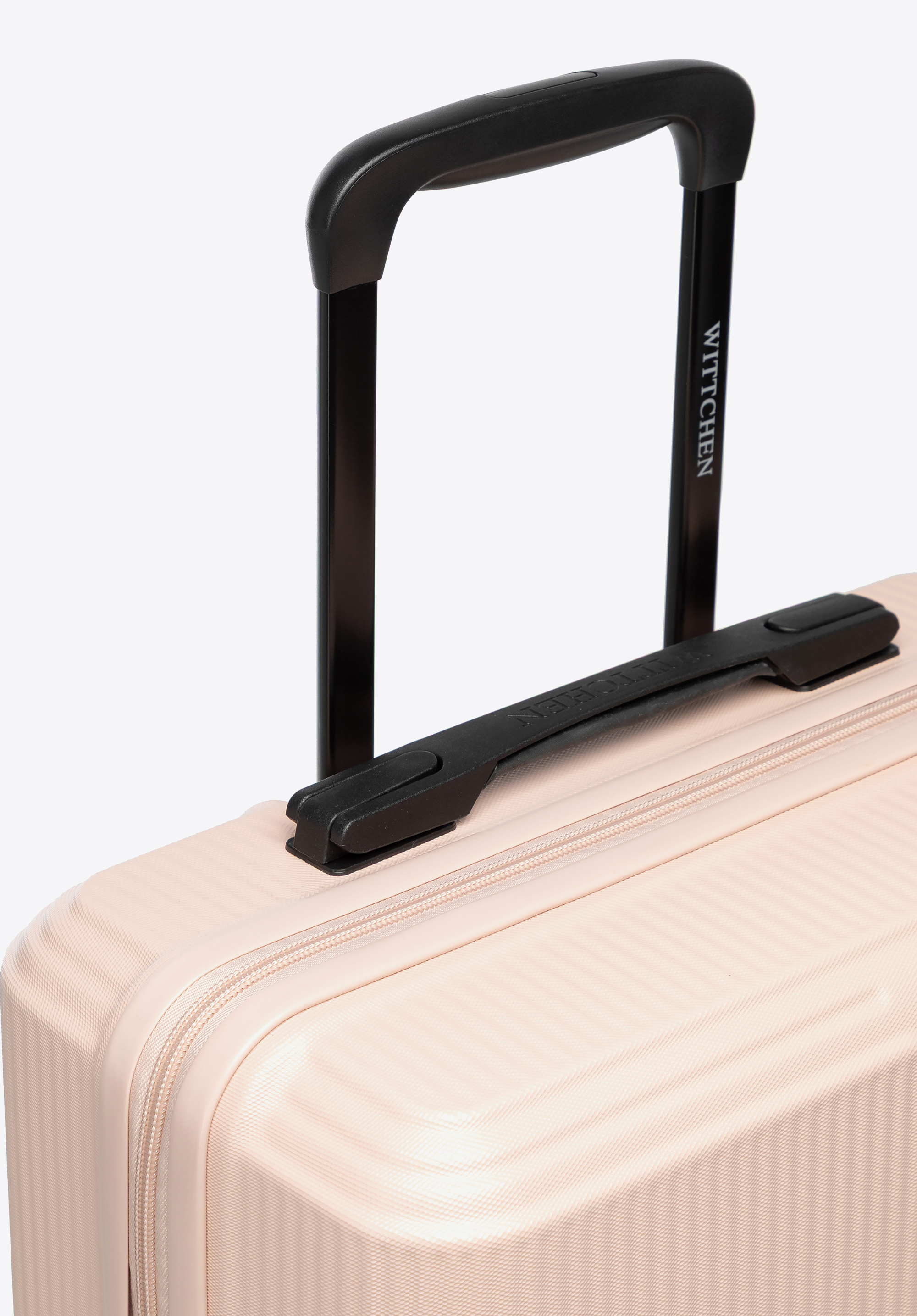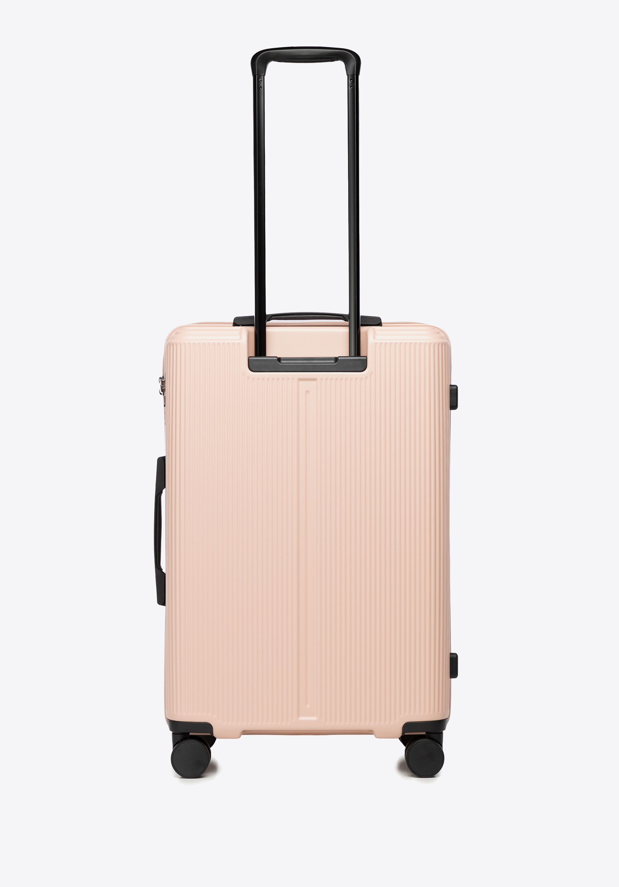 - Design: Pionowe żłobienia i czarne detale nadają walizce nowoczesny wygląd.