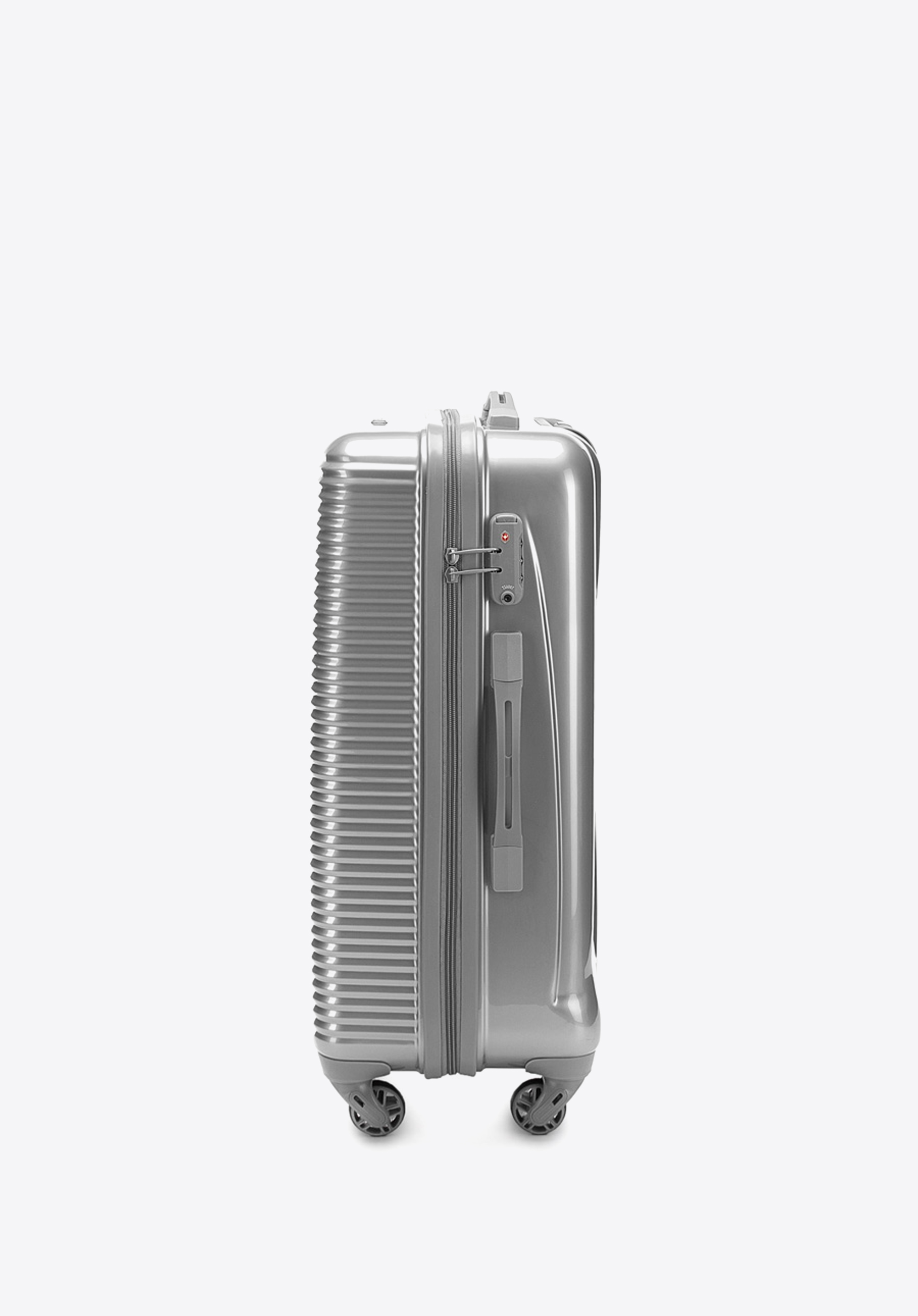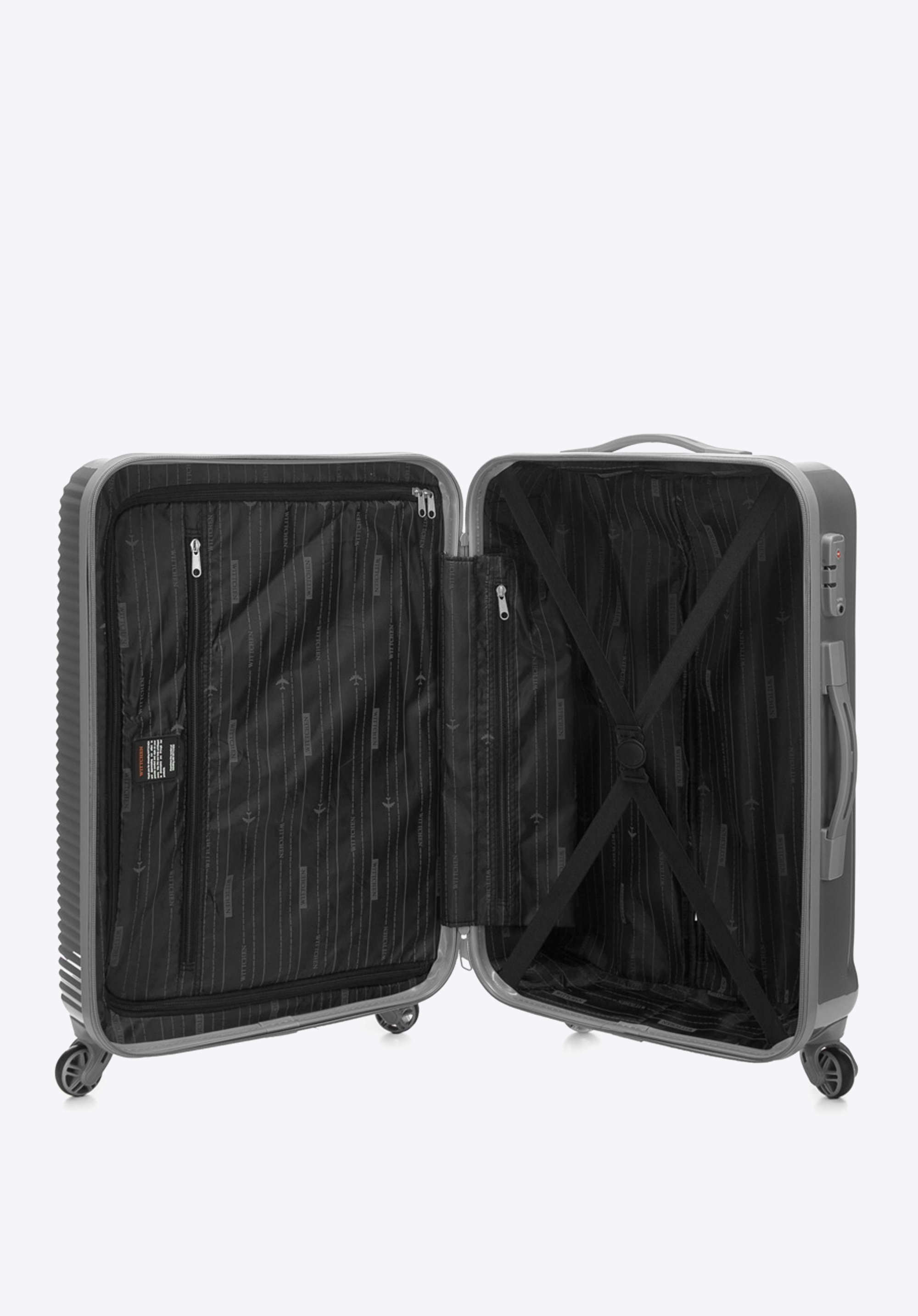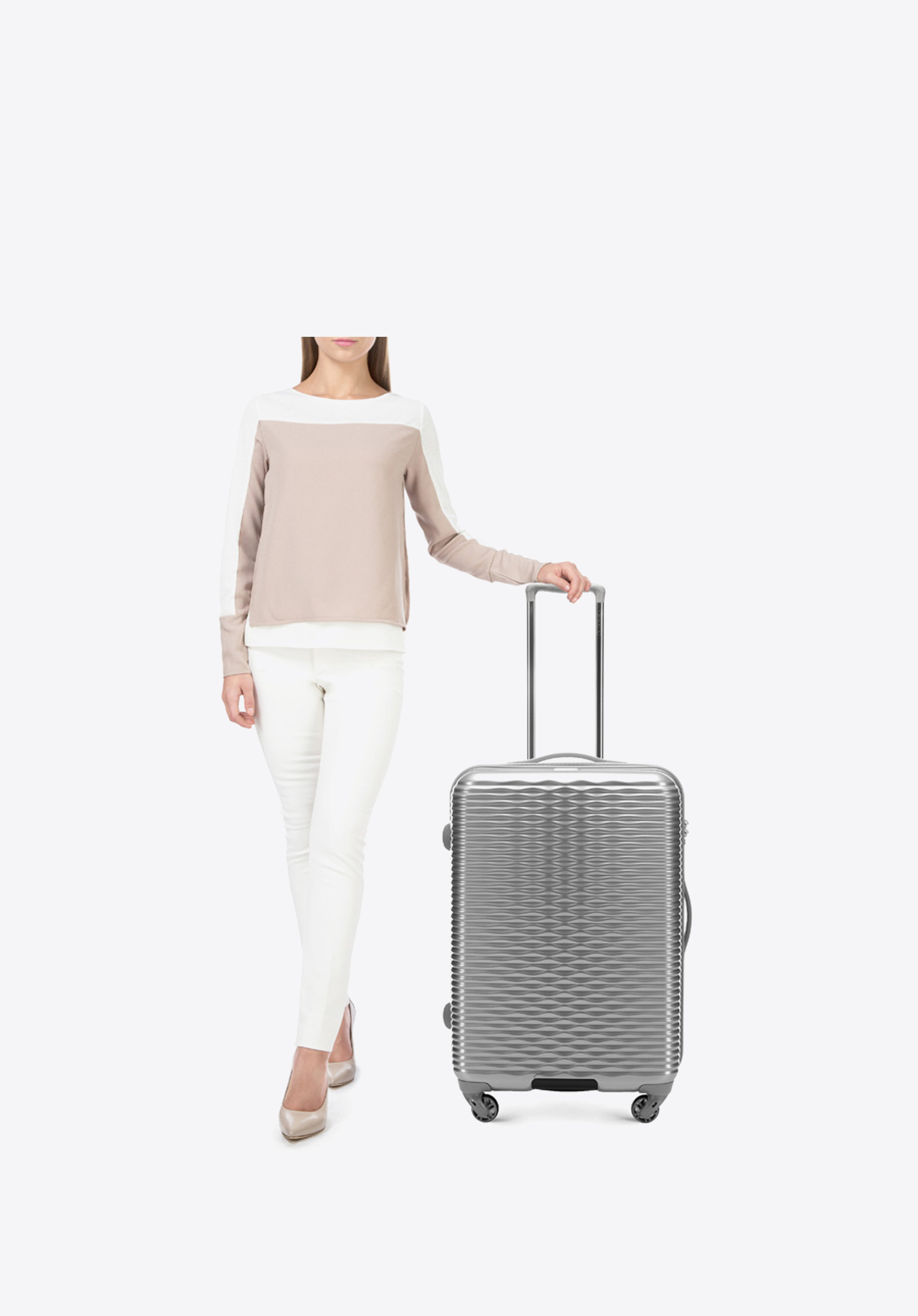 Średnia walizka z kolekcji Wavy Line. Wykonana z bardzo trwałego tworzywa ABS. Posiada cztery kółka ułatwiające manewrowanie, teleskopową rączkę, elastyczny, gumowy uchwyt do ręki oraz system TSA, bardzo przydatny w przypadku rewizji bagażu przez służby celne. Gwarantuje on bezinwazyjne otwarcie walizki oraz jej ponowne zamknięcie bez uszkodzenia zamka.