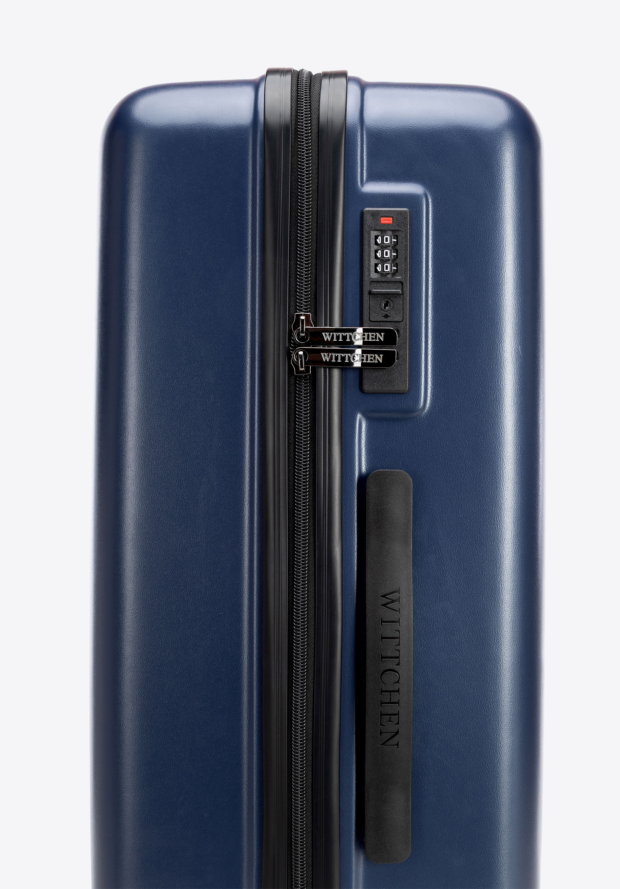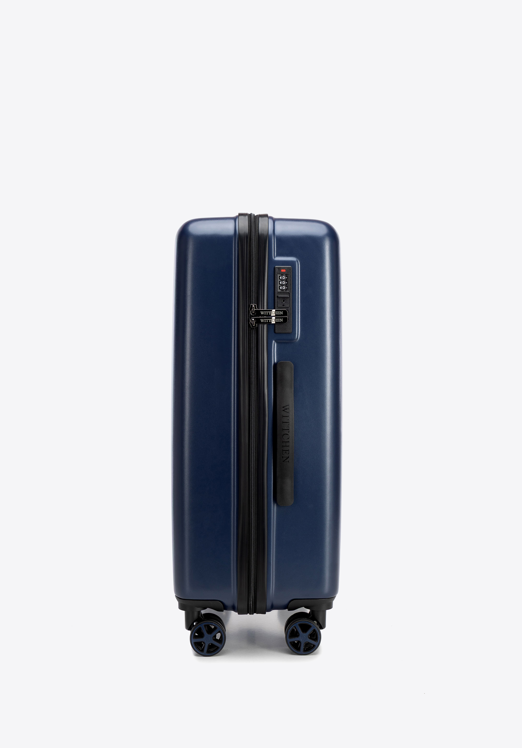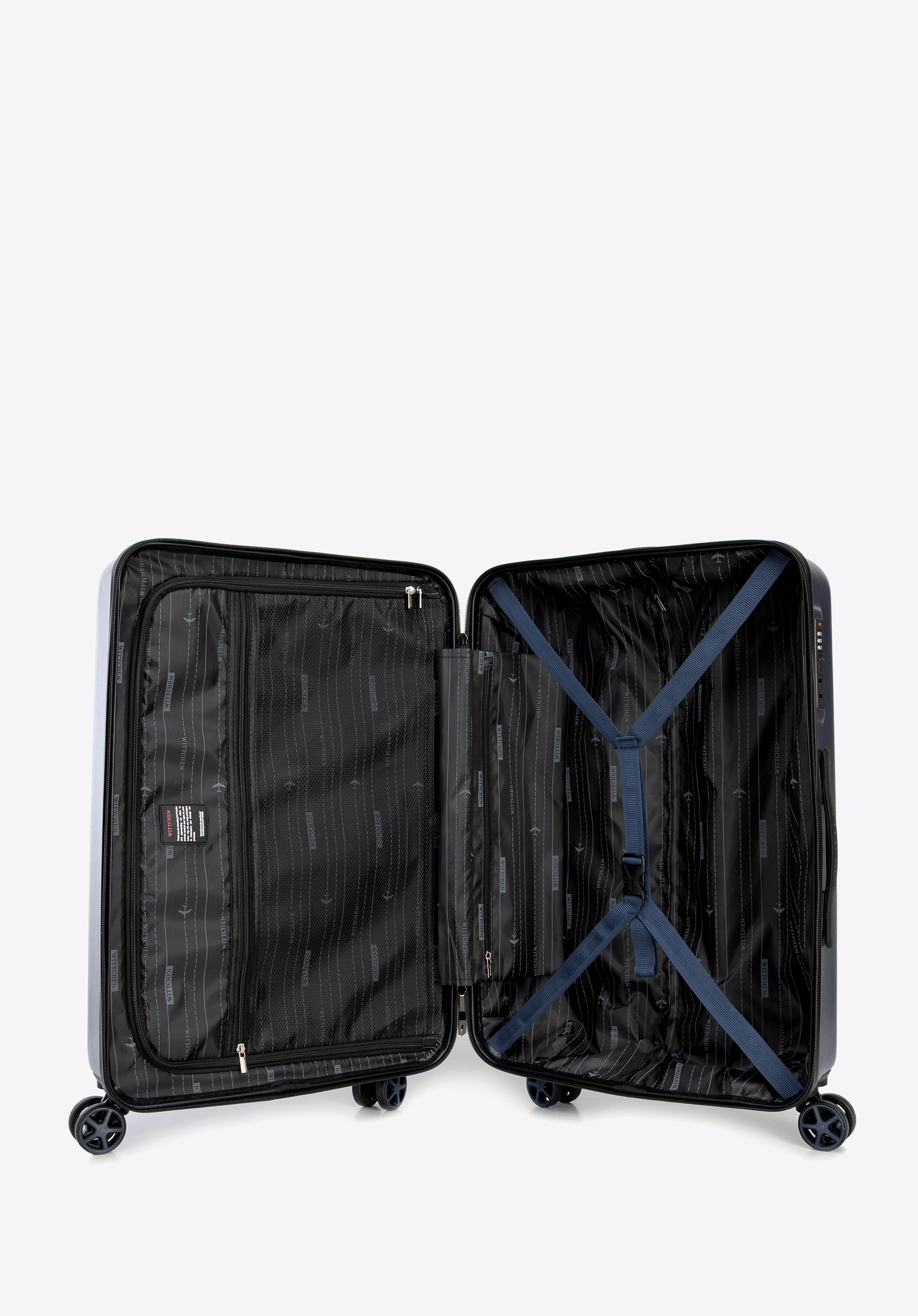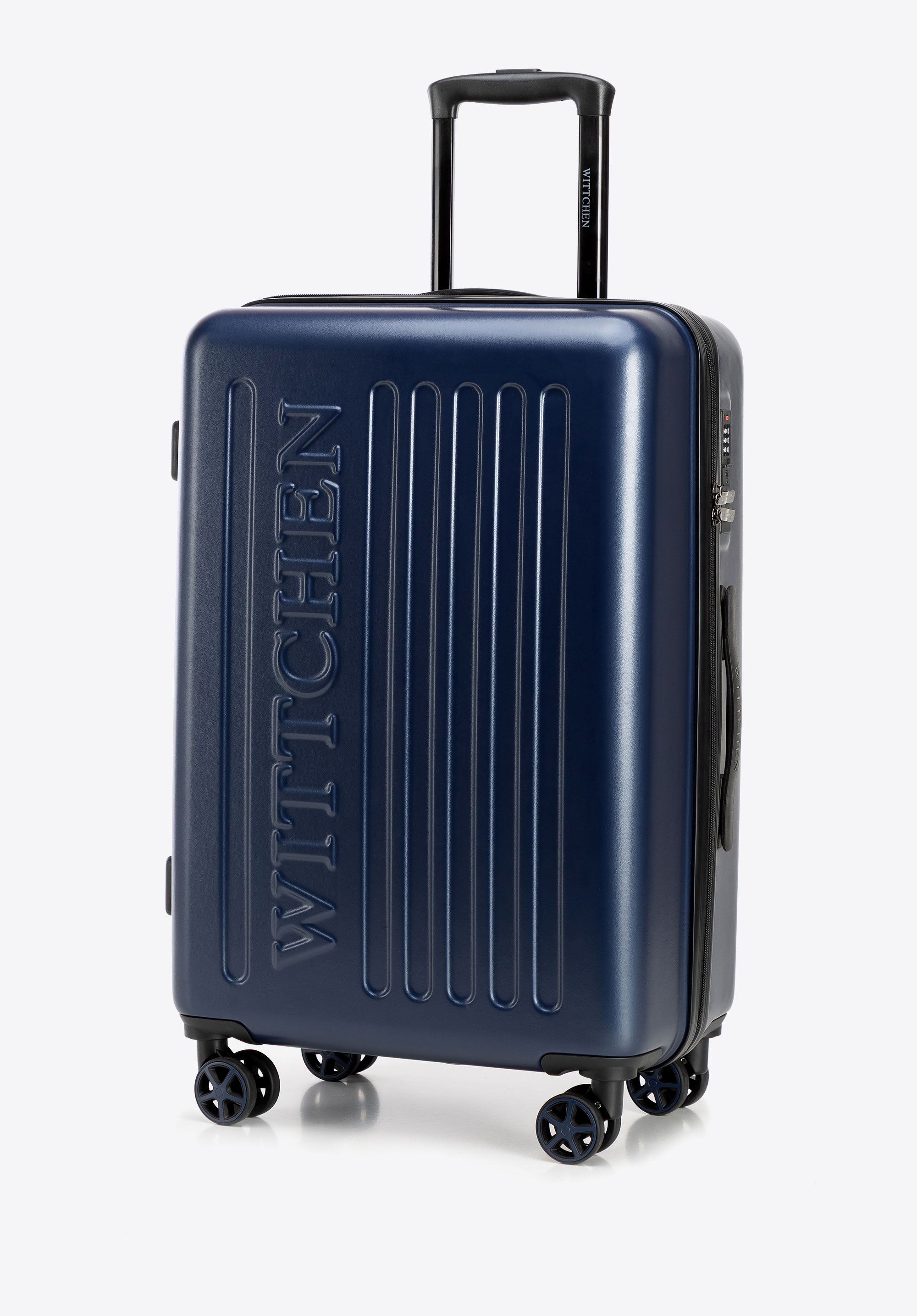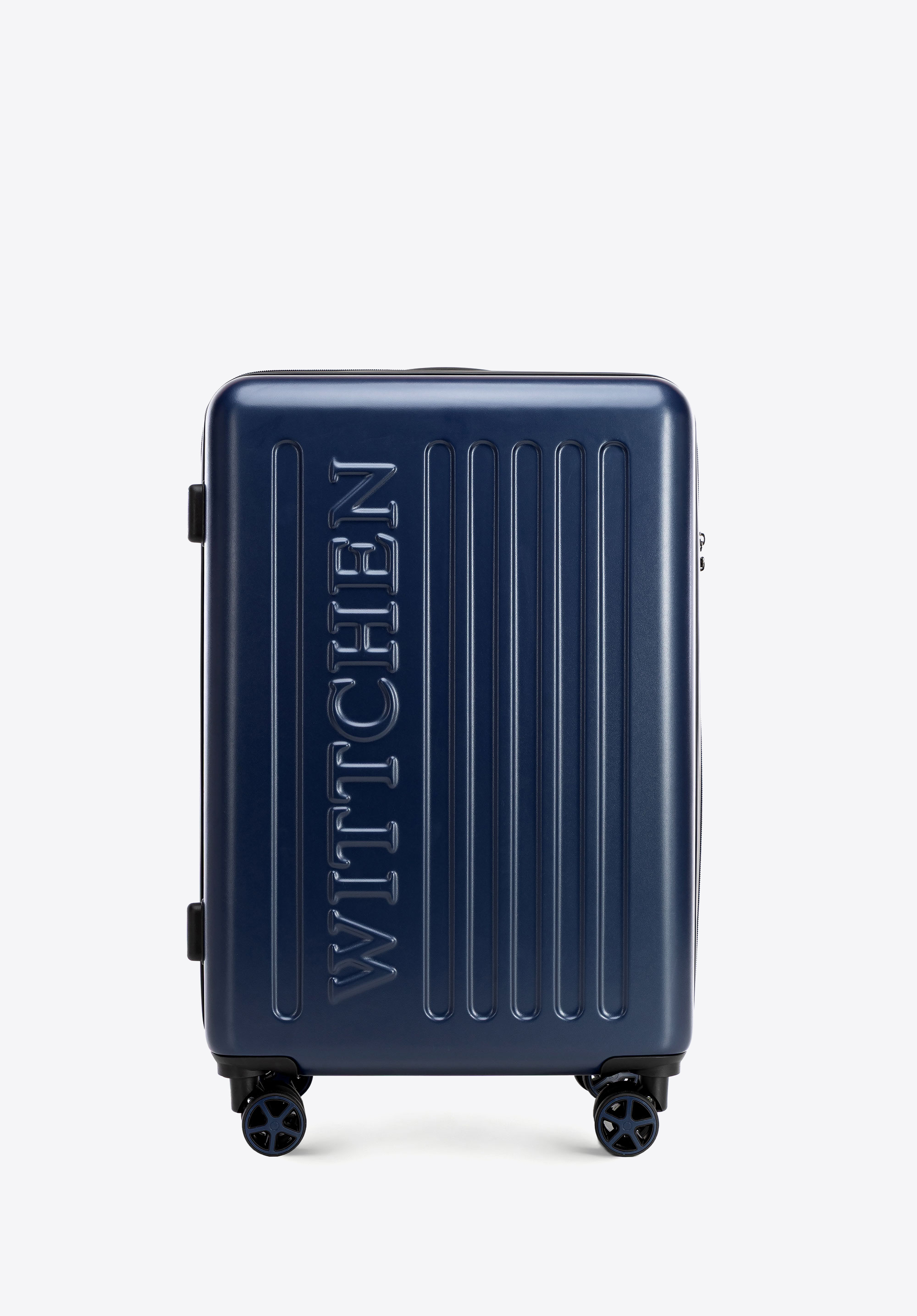 Średnia walizka z ABS-u z tłoczonym logo granatowa