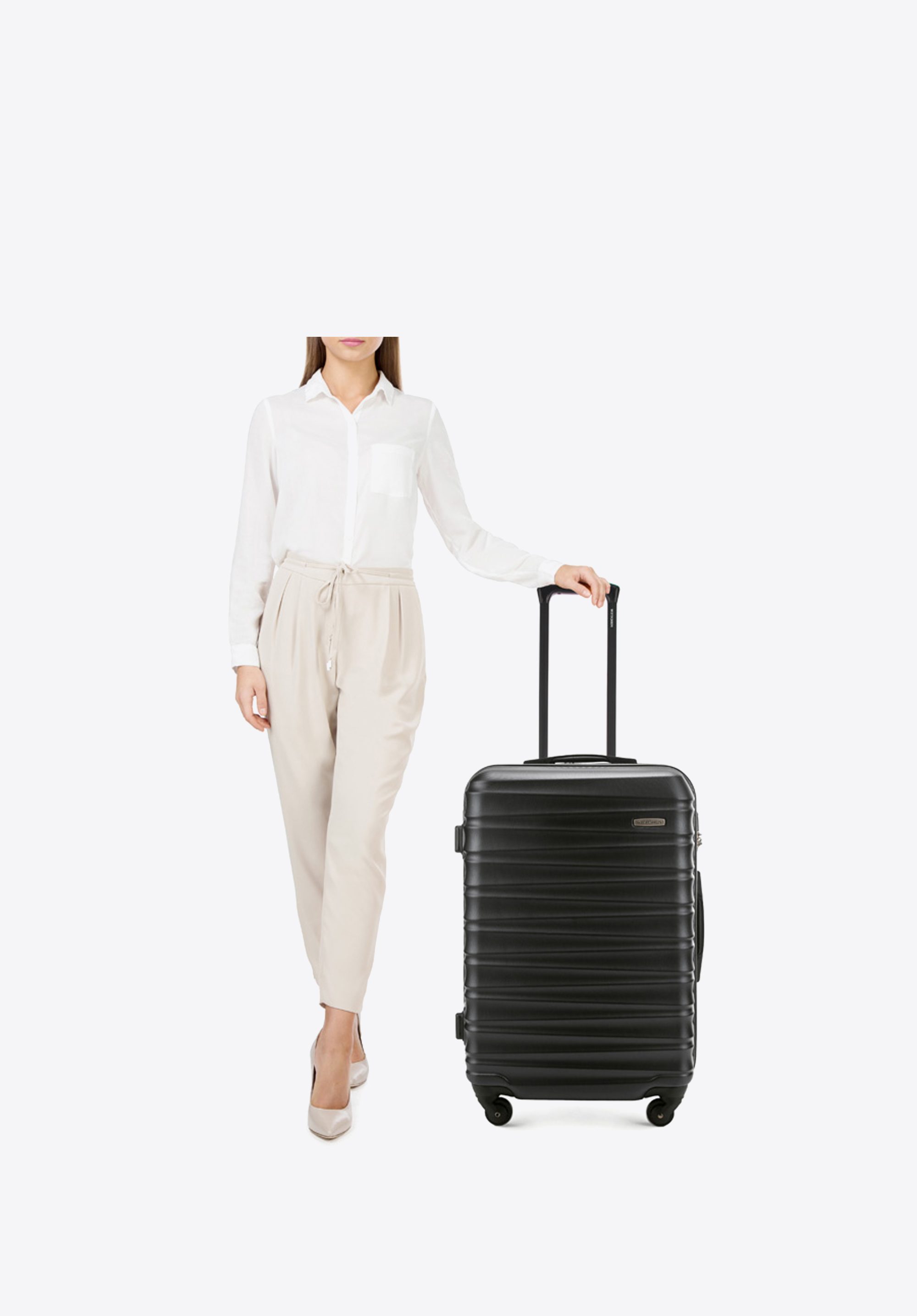 - wysuwany uchwyt oraz dwie gumowe rączki ułatwiające przenoszenie bagażu;