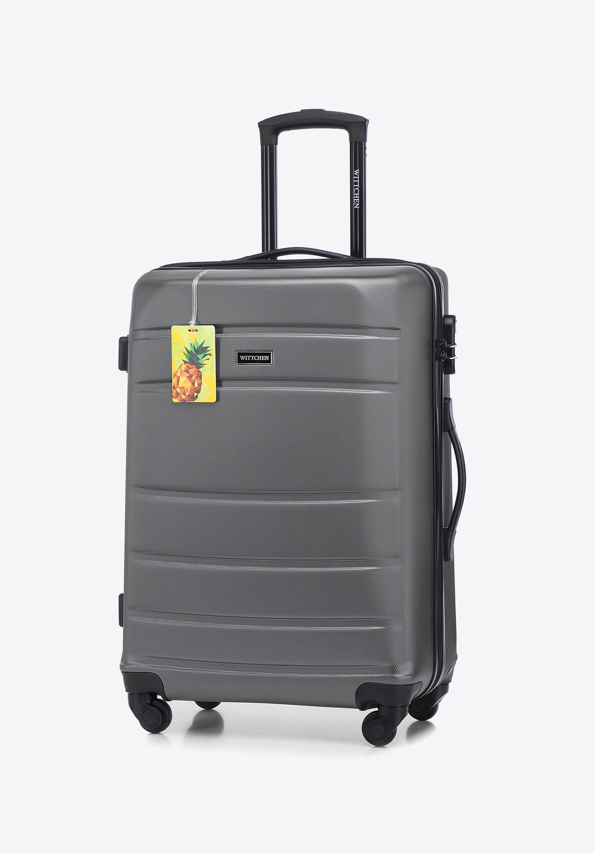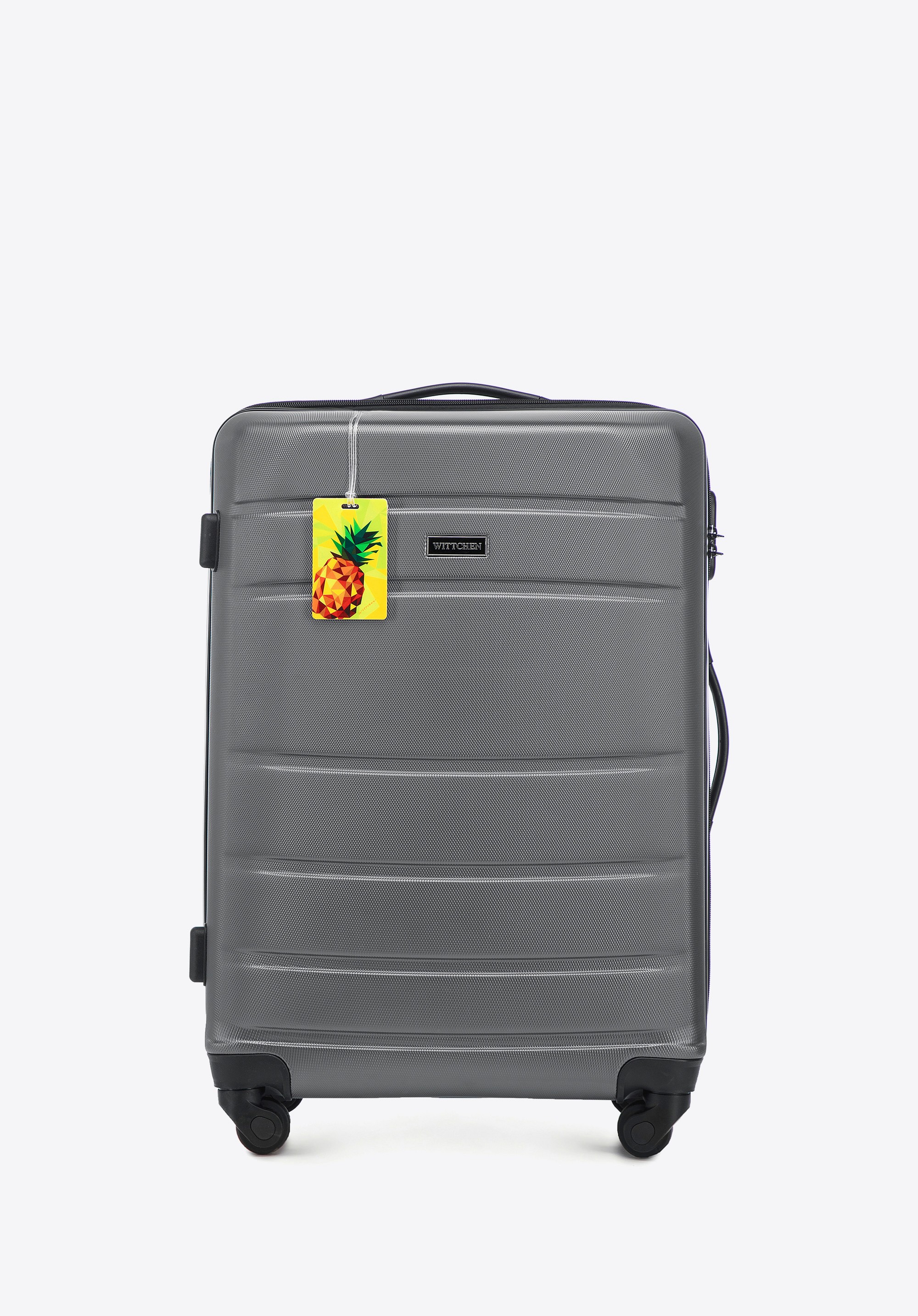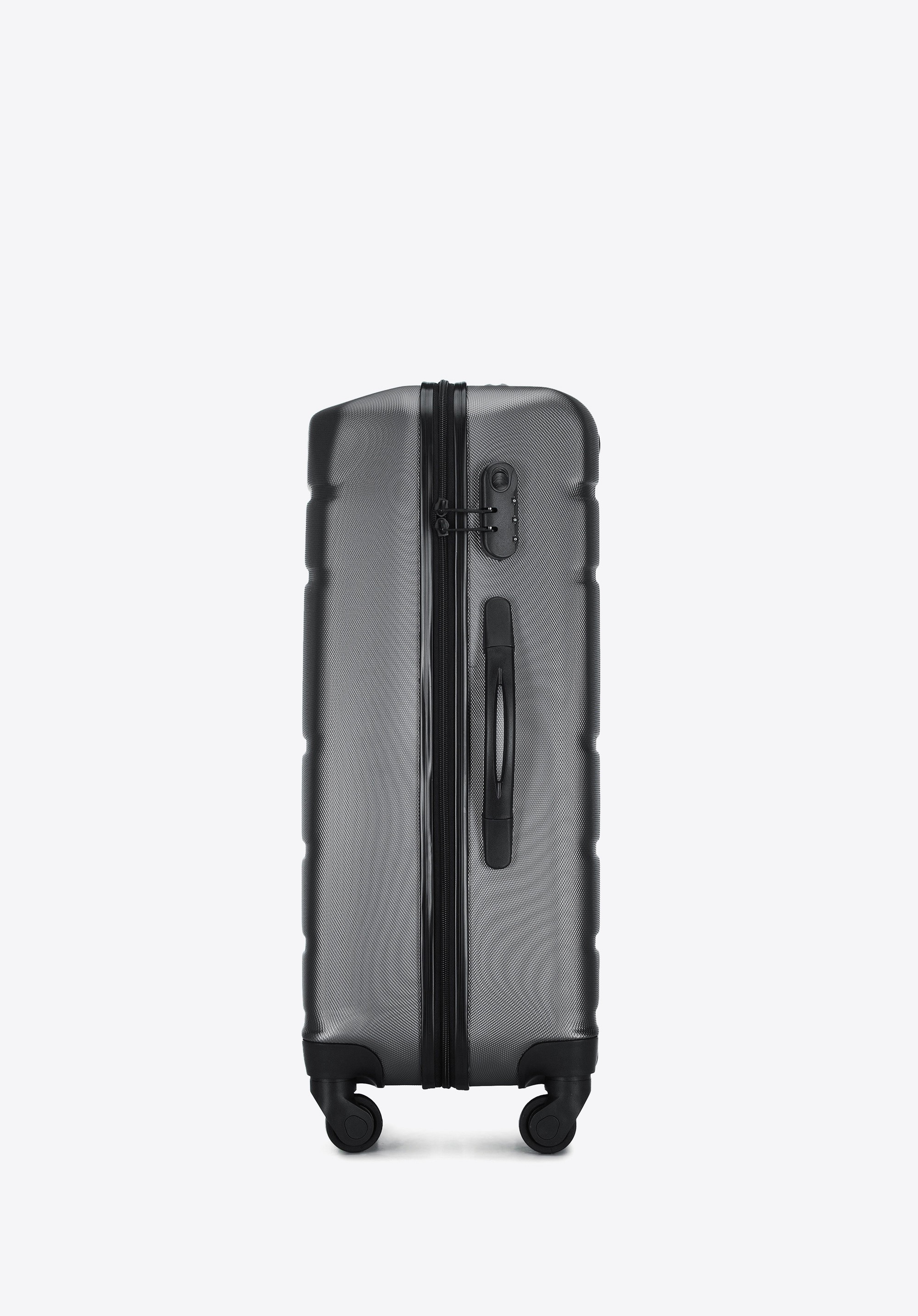 Średnia walizka z ABS - u żłobiona z identyfikatorem szara