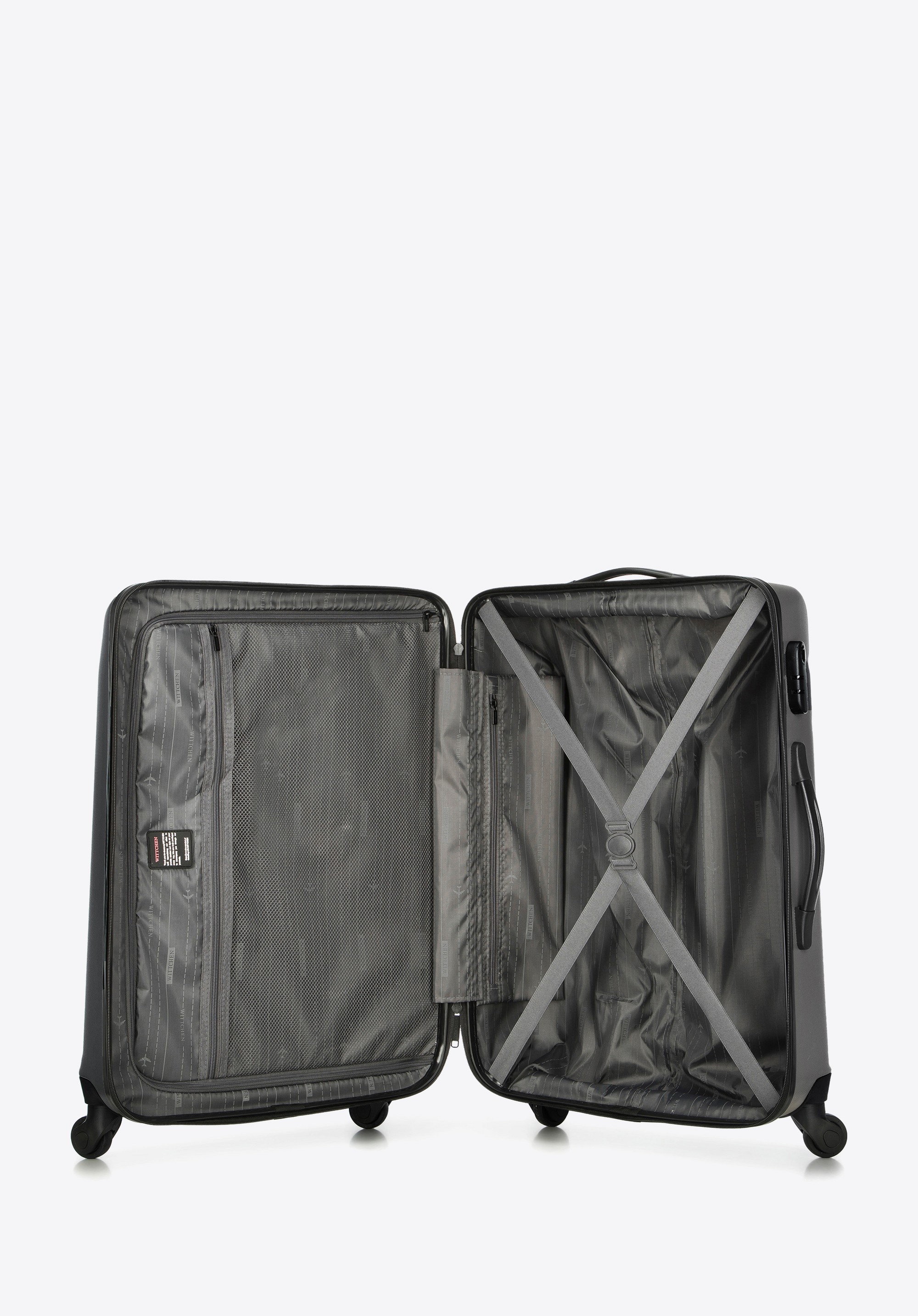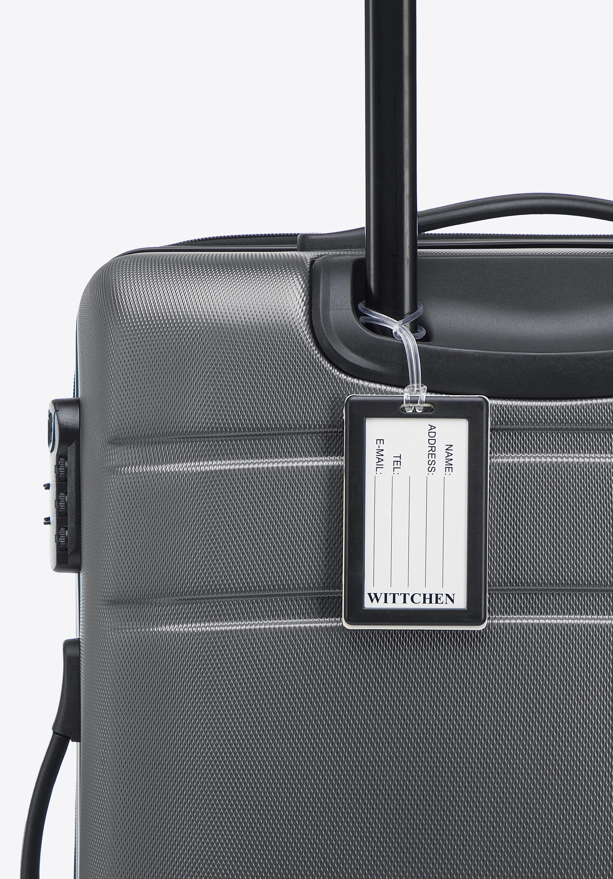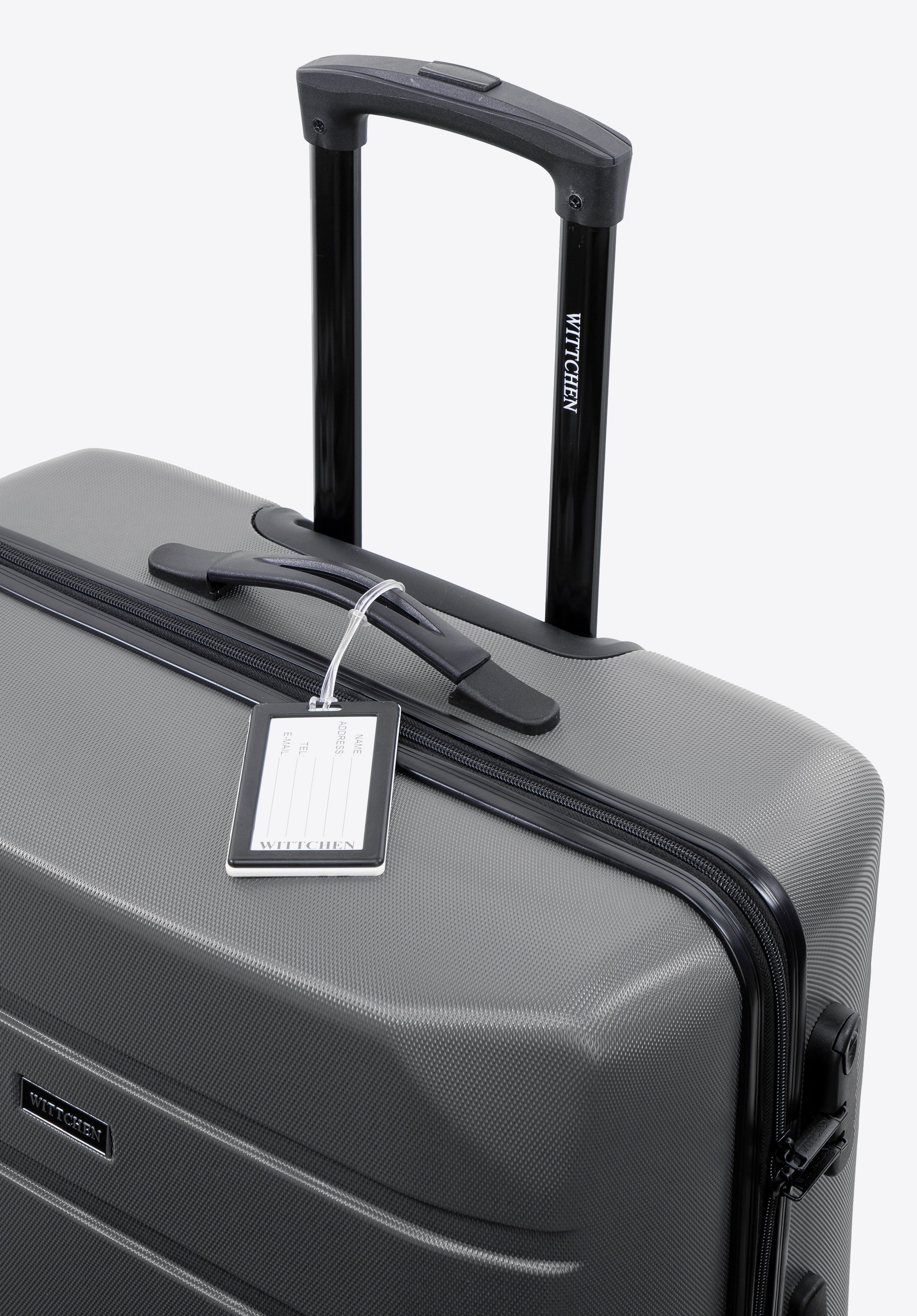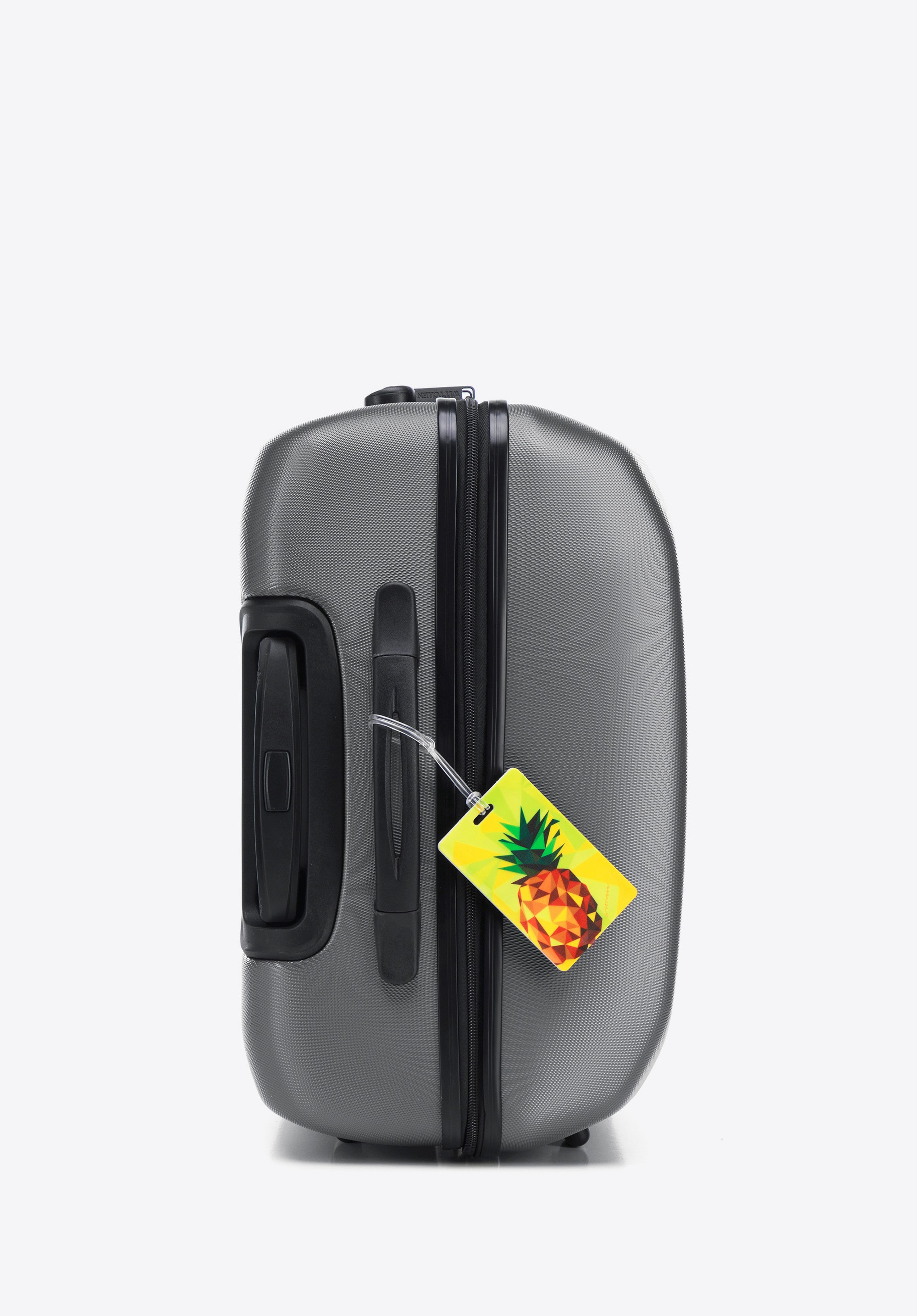 Średnia walizka z ABS - u żłobiona z identyfikatorem szara