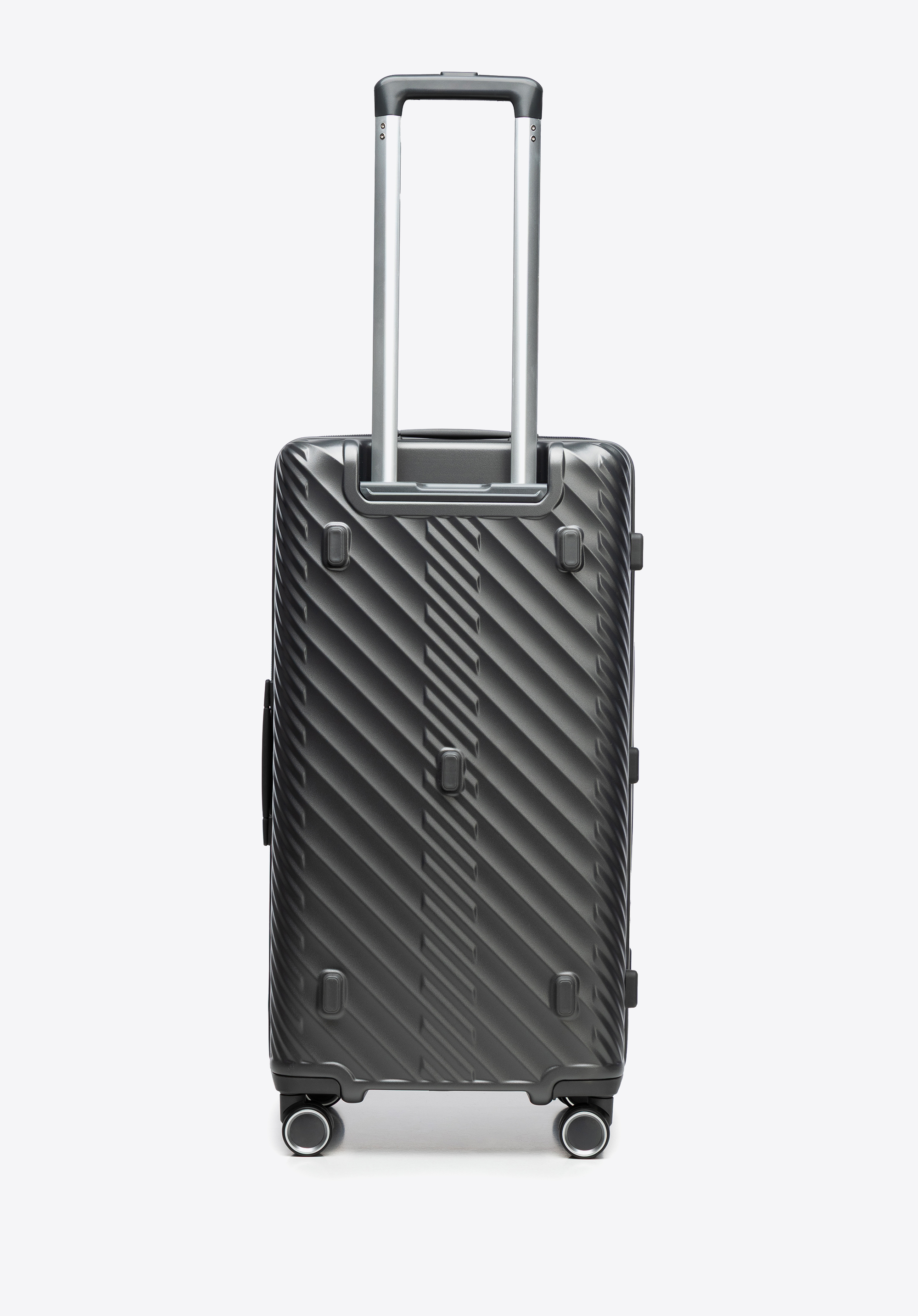 - Design: Smukła forma z geometrycznym wzorem podkreśla nowoczesny charakter walizki – dzięki niej podróżujesz w eleganckim stylu, niezależnie od celu wyjazdu.