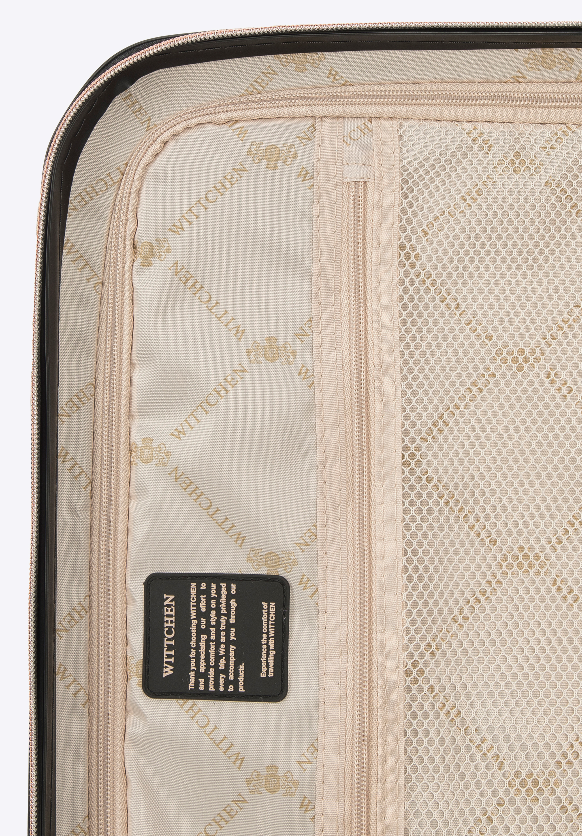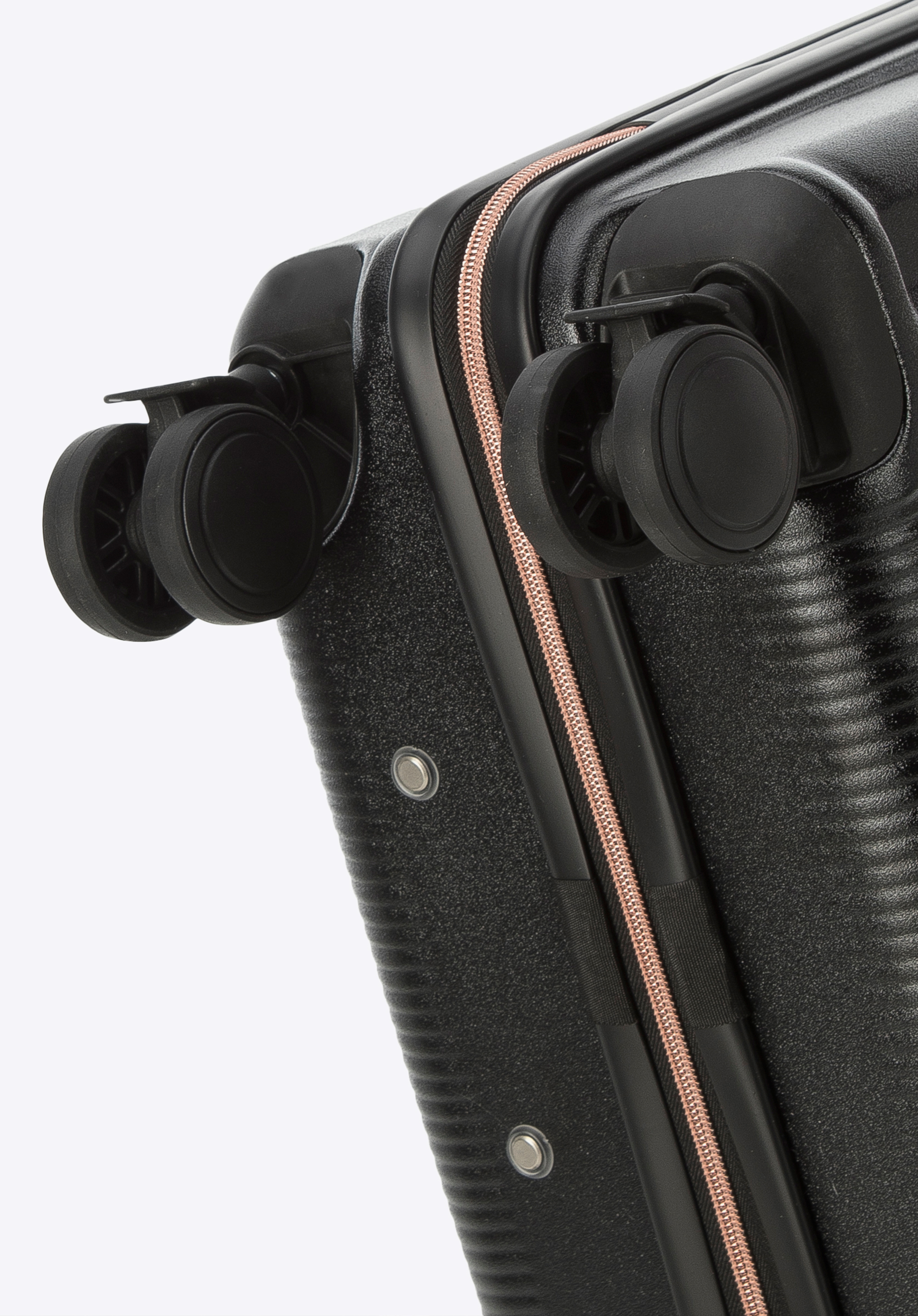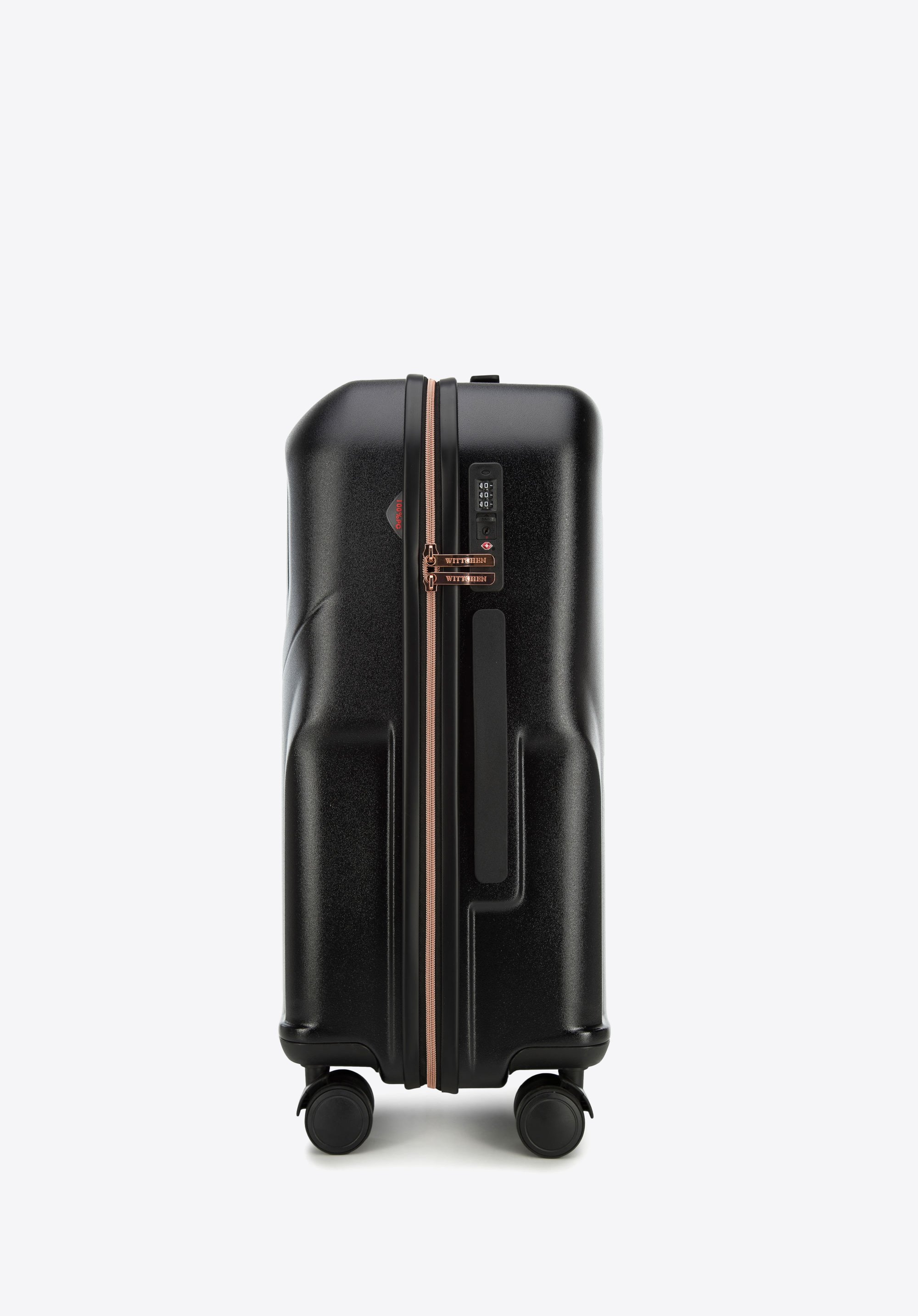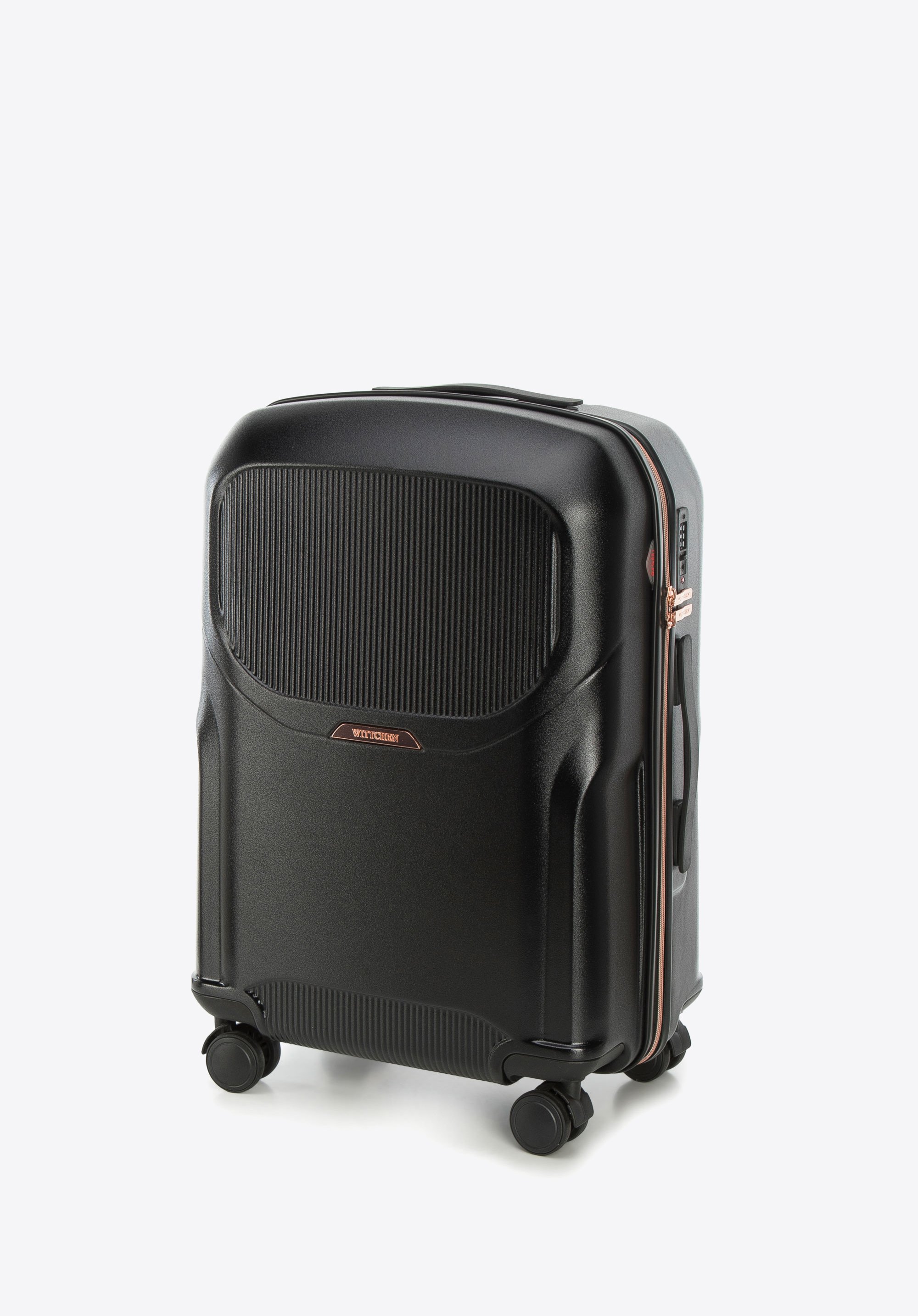 walizka z polikarbonu z suwakiem w kolorze różowego złota to stylowy i praktyczny dodatek, który będzie Ci towarzyszyć na niejednym wyjeździe.
