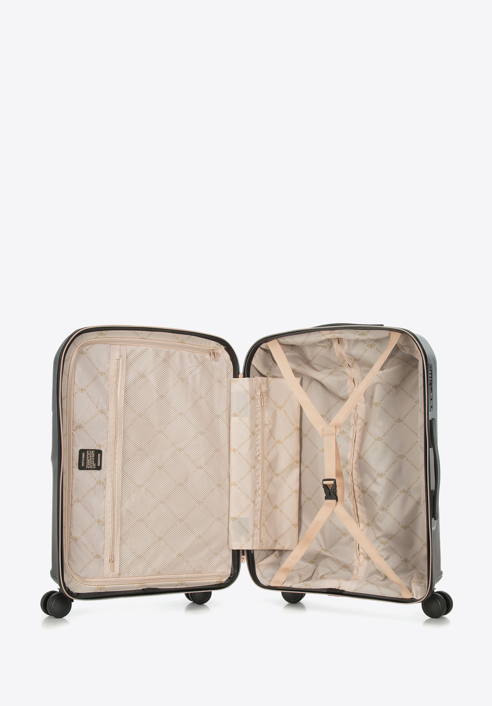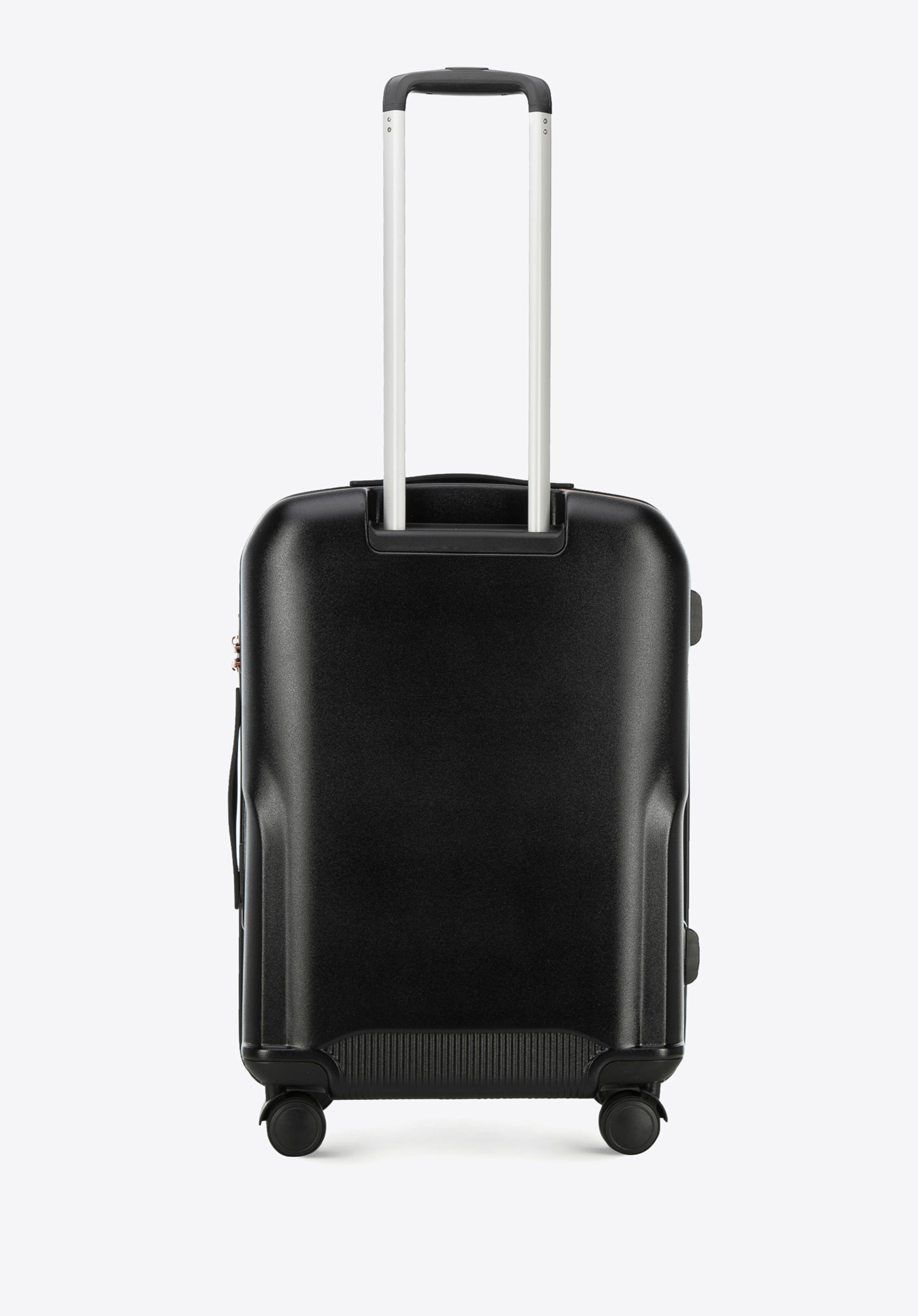 - walizka wyposażona w cztery podwójne kółka ułatwiające prowadzenie;