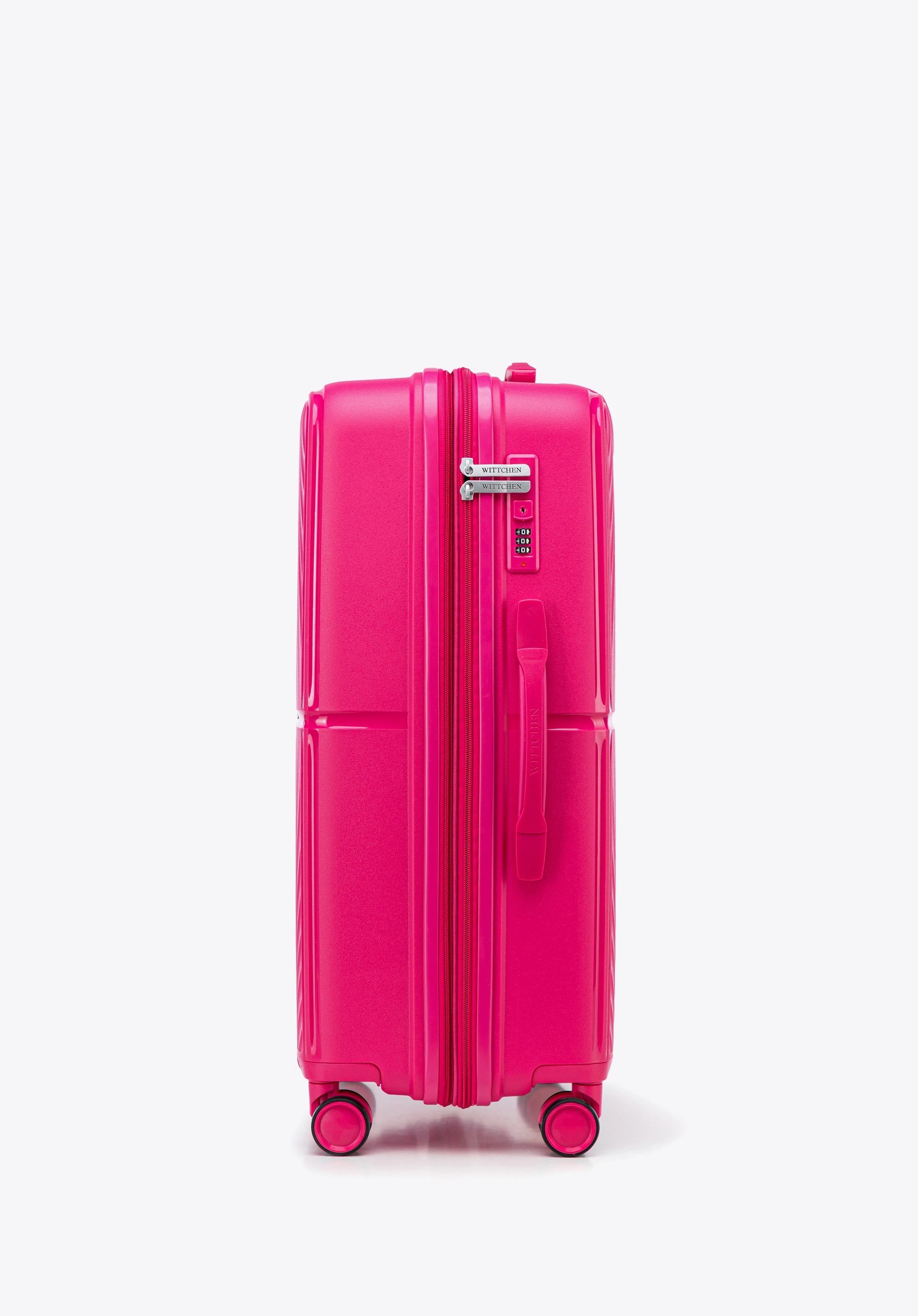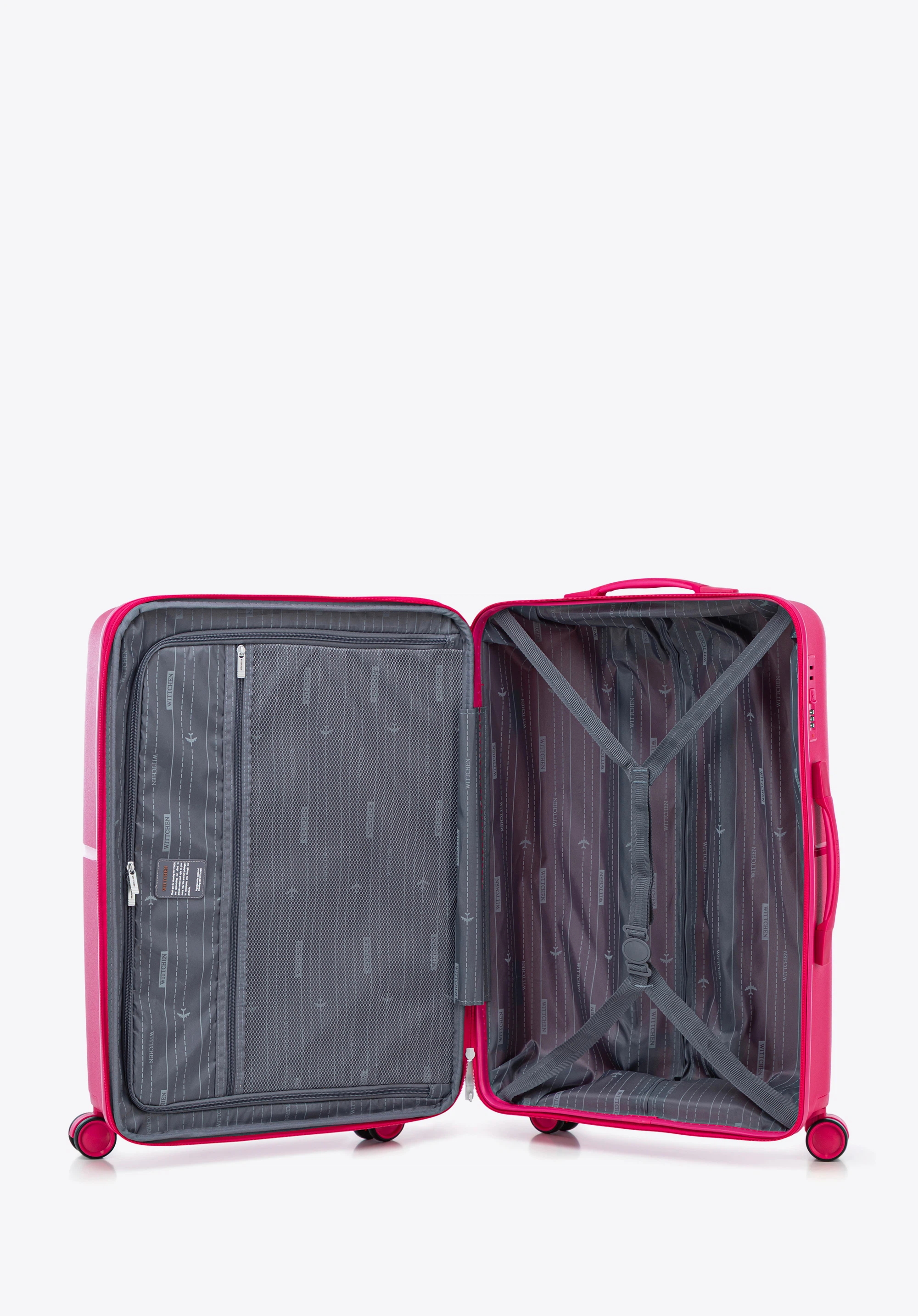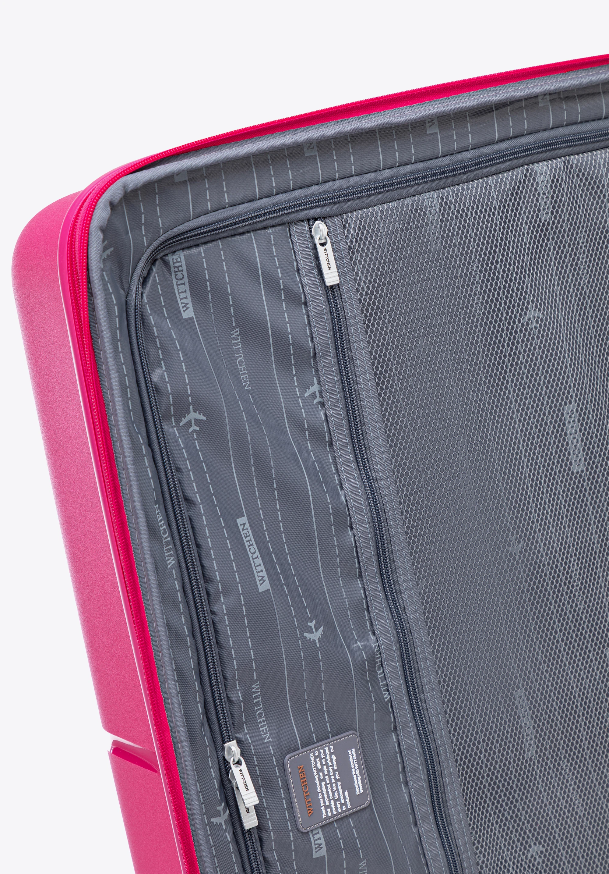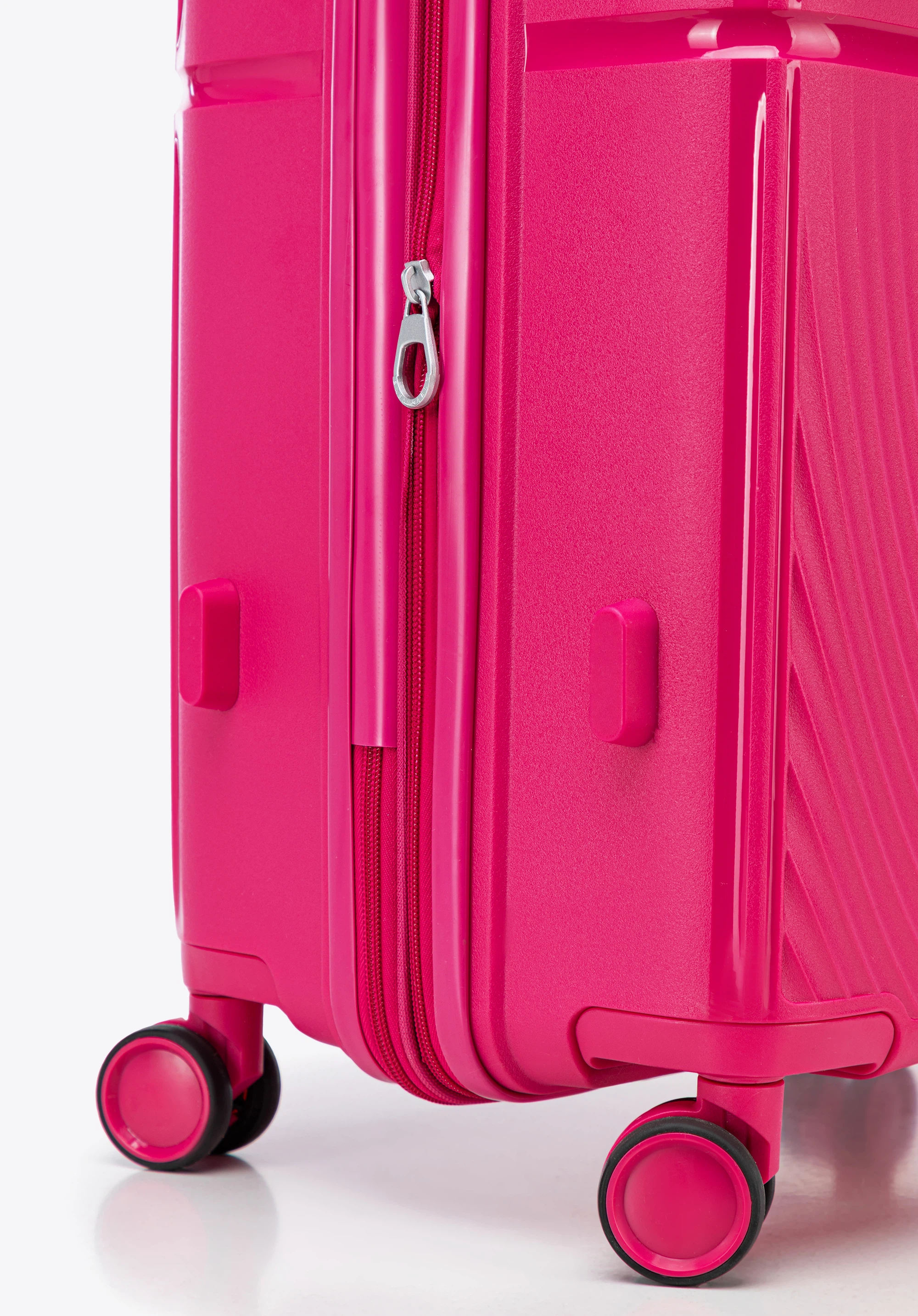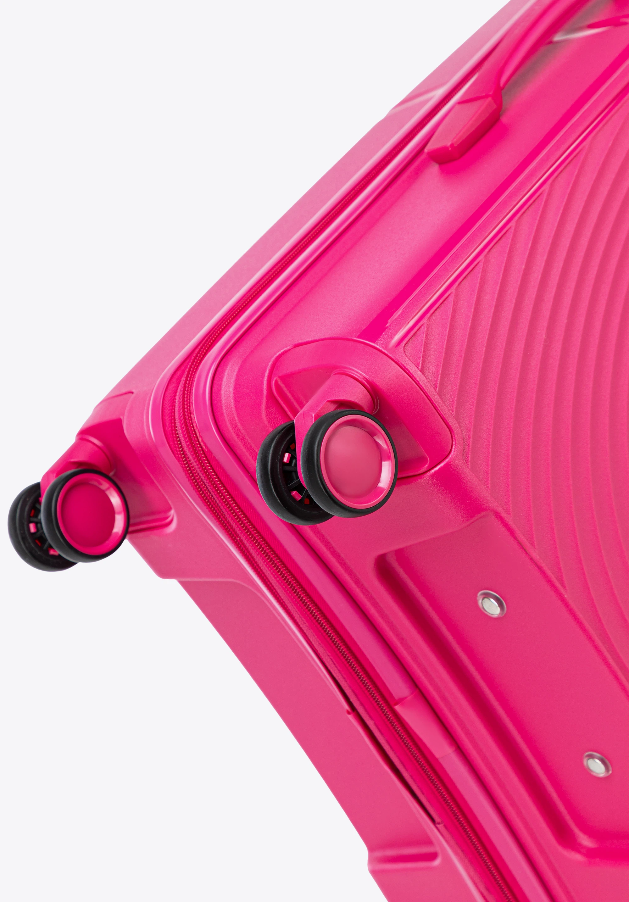 Średnia walizka z polipropylenu w okręgi sprawdzi się na kilkudniowe wyjazdy, gdy chcesz podróżować lekko, ale z zapasem miejsca na to, co naprawdę potrzebne. Poszerzana konstrukcja, dwie komory z pasami i siateczką oraz podwójne kółka 360° dają płynność prowadzenia i świetną organizację w drodze.