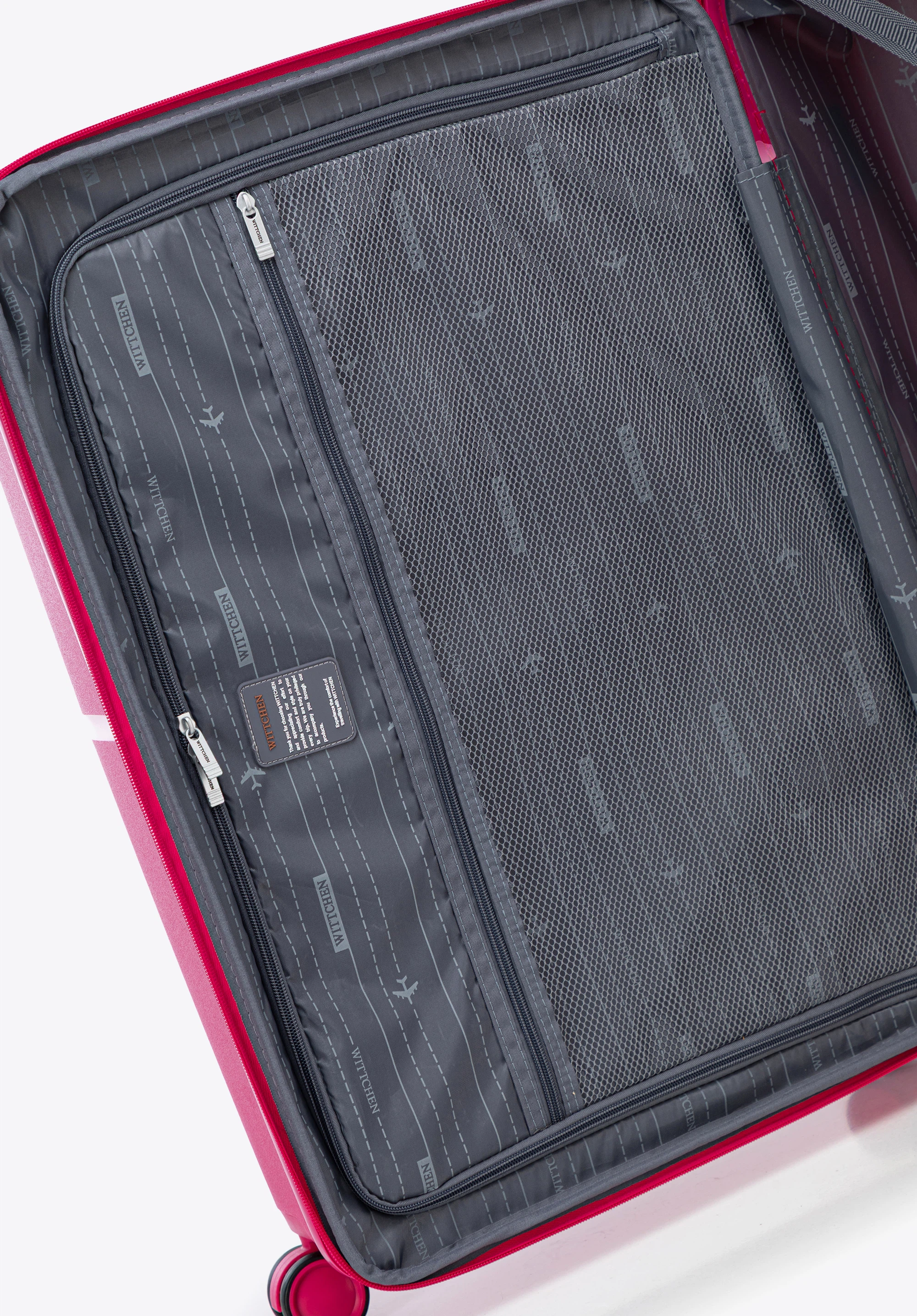 - Stabilność: 4 boczne nóżki gwarantują stabilne postawienie walizki na boku.