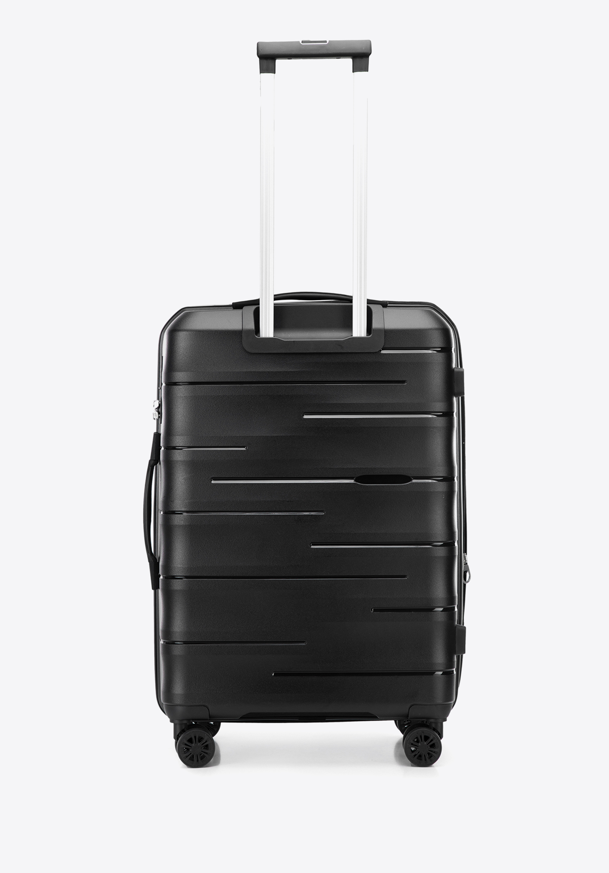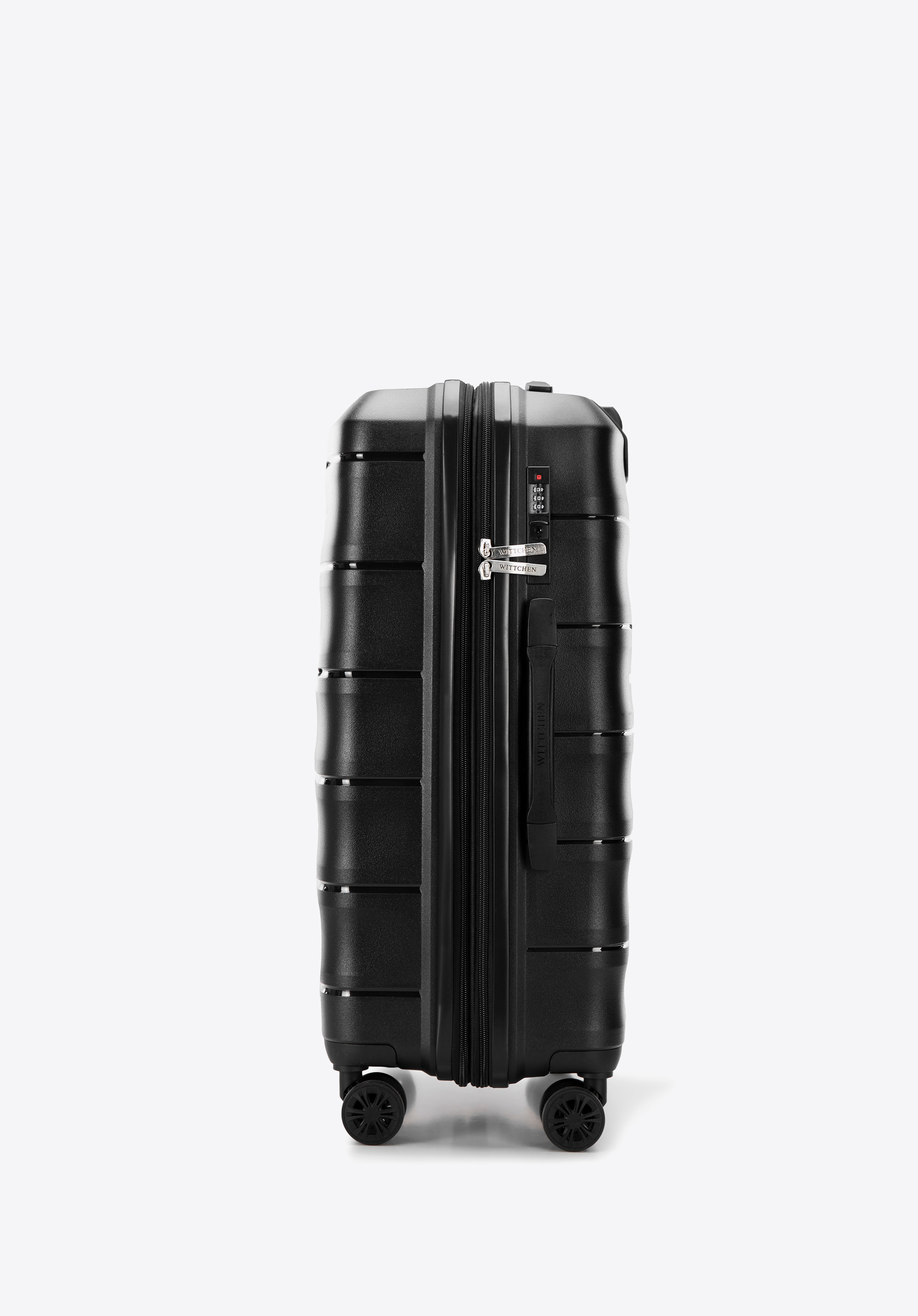 - Materiał: Walizka wykonana jest z polipropylenu, który jest odporny na uszkodzenia i bardzo wytrzymały.