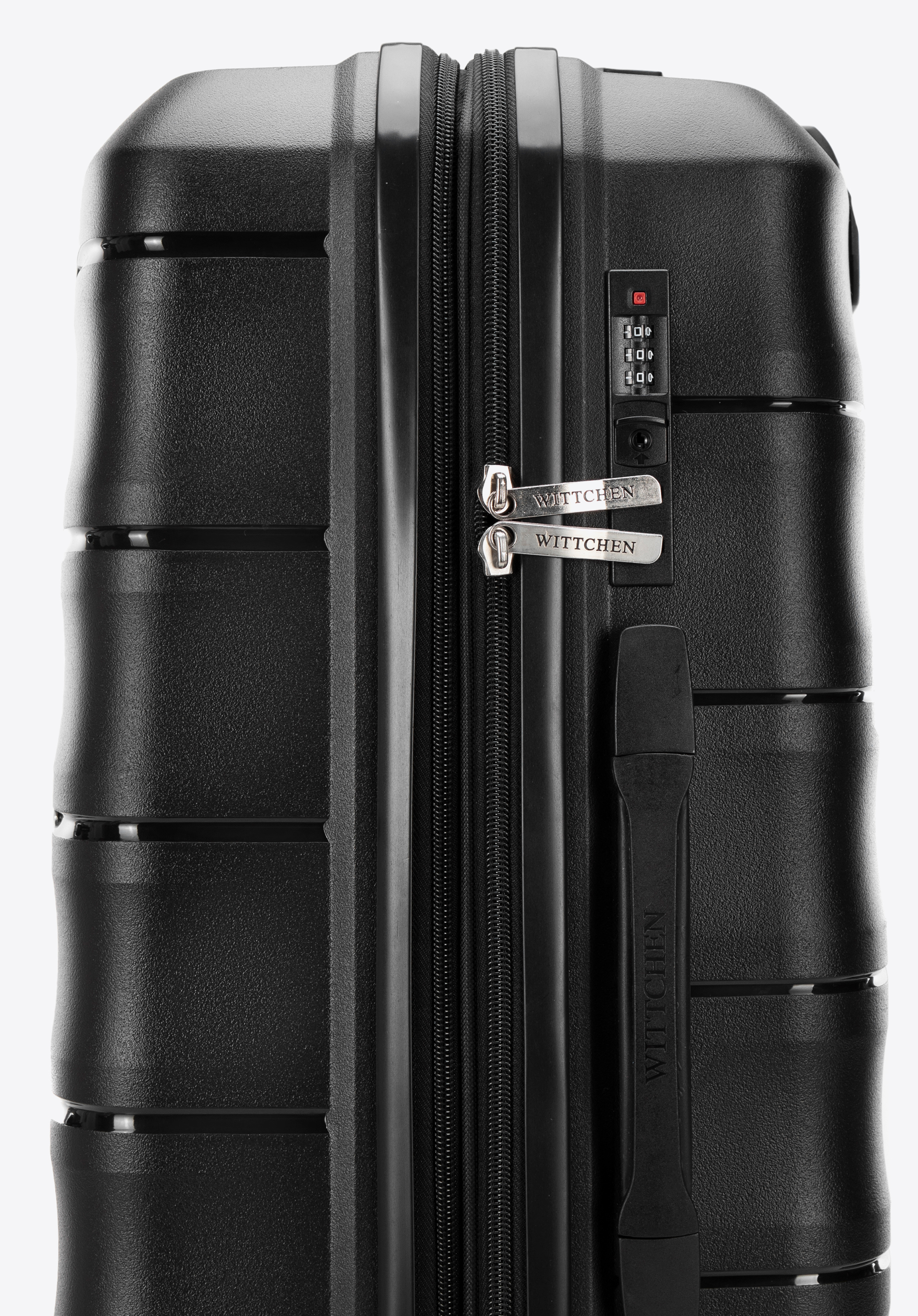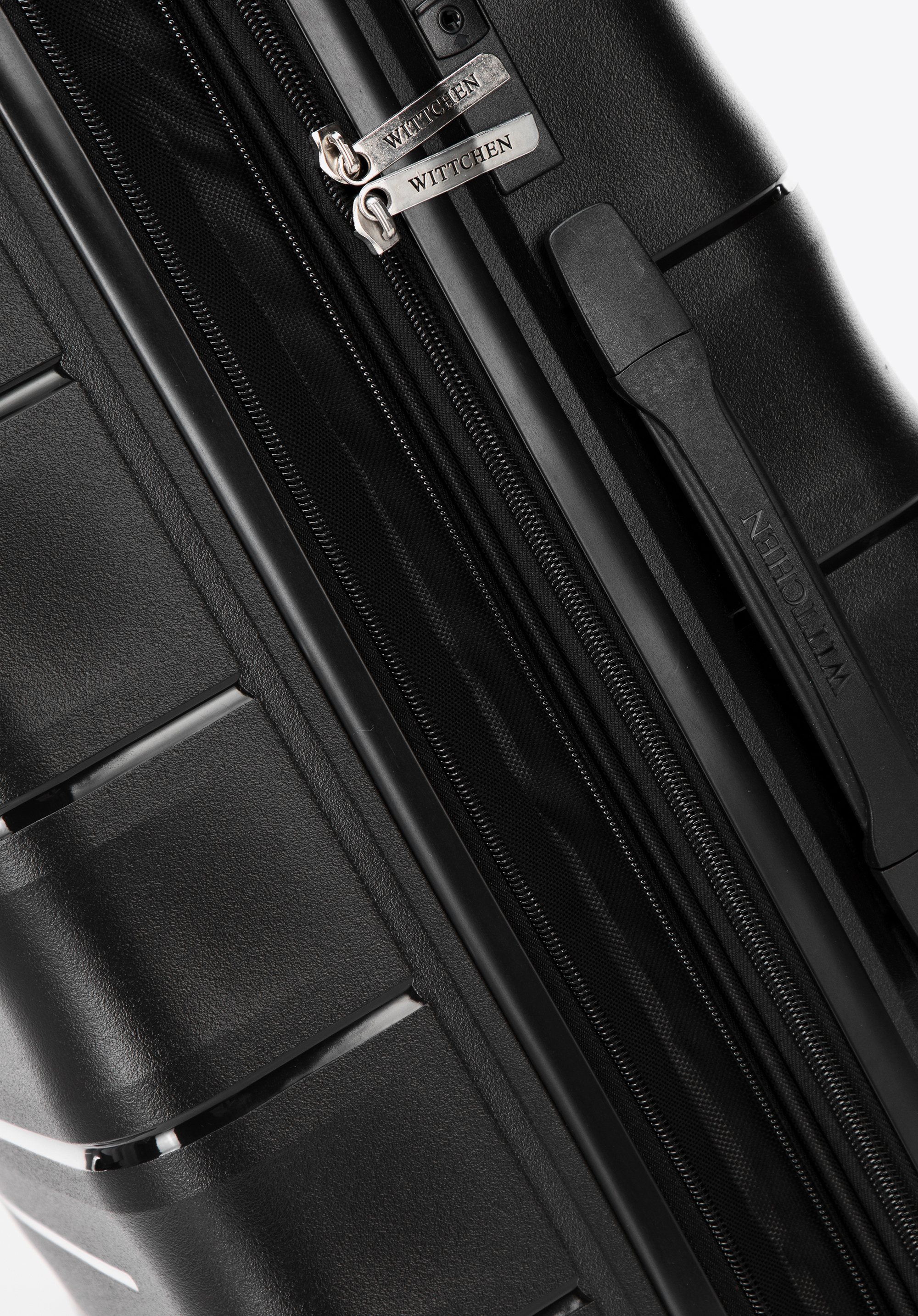 - Estetyka: Dzięki poziomym tłoczeniom walizka wyróżni się z tłumu. Dodatkowo, w każdym kolorze walizki, dopasowaliśmy taśmę suwaka do skorupy, tworząc jednolitą, miłą dla oka bryłę.