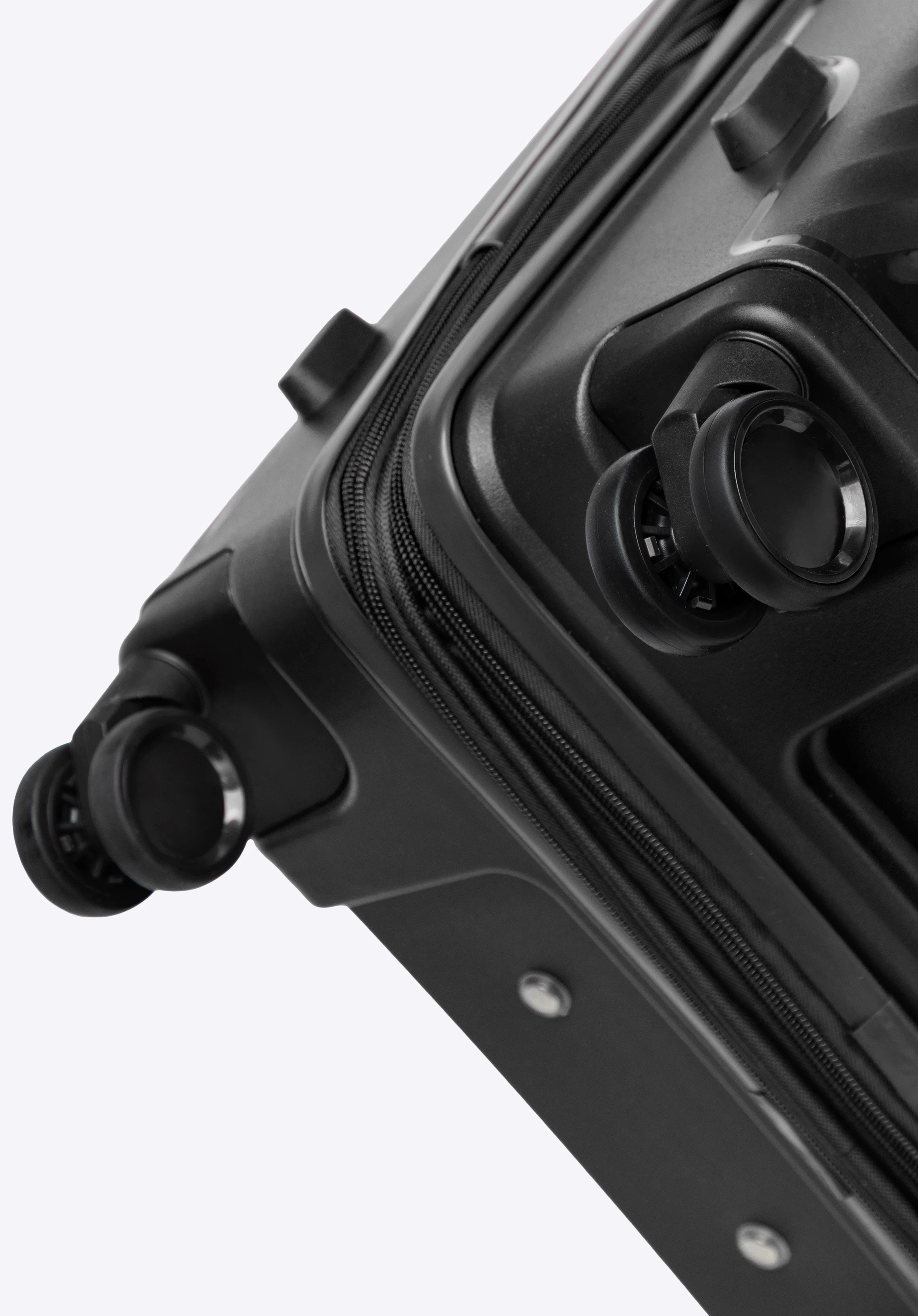 - Stabilność: Cztery boczne nóżki zapewniają stabilne postawienie walizki na boku.