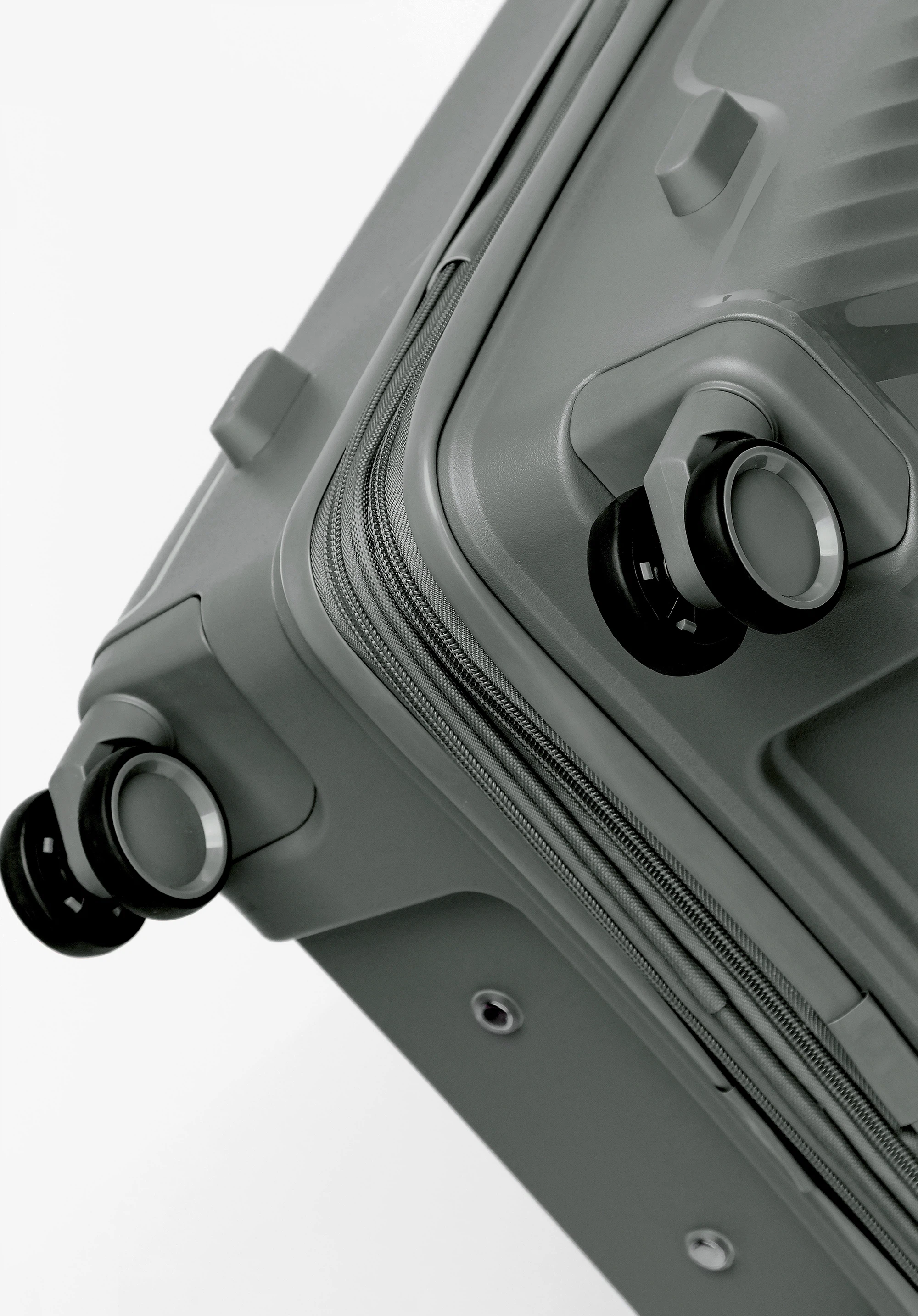 - Stabilność: Cztery boczne nóżki zapewniają stabilne postawienie walizki na boku.