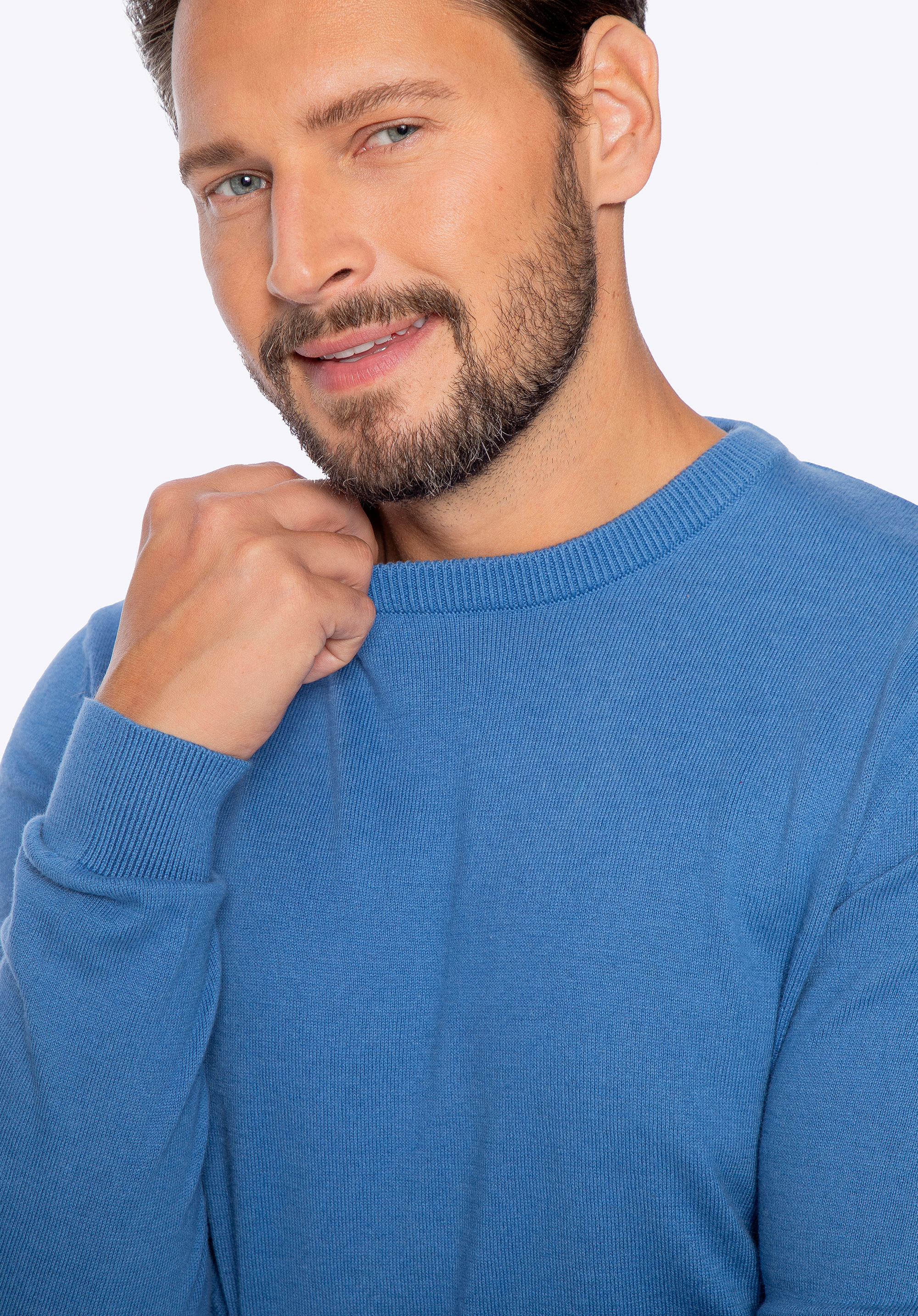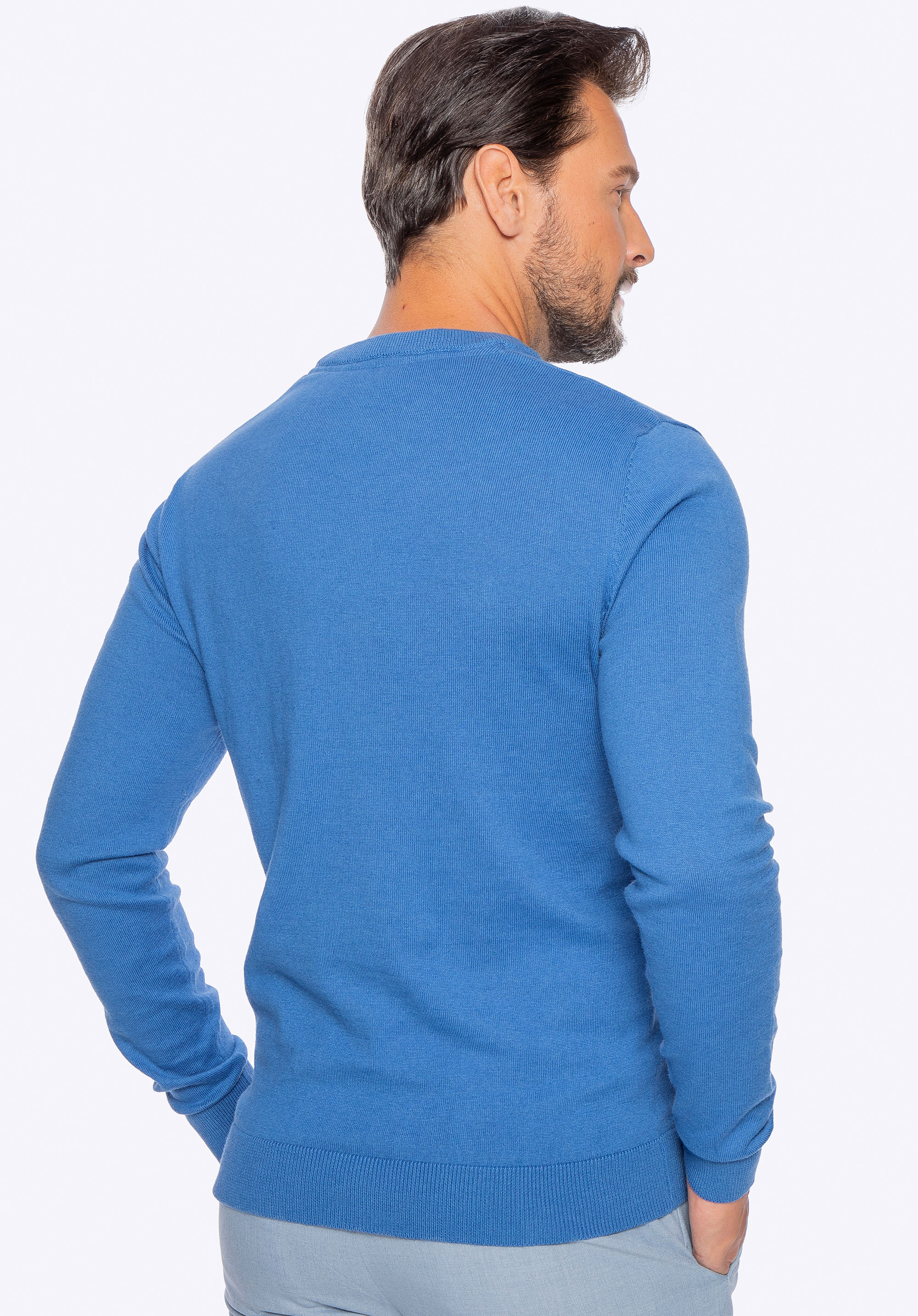 Sweter męski z bawełny z domieszką kaszmiru niebieski