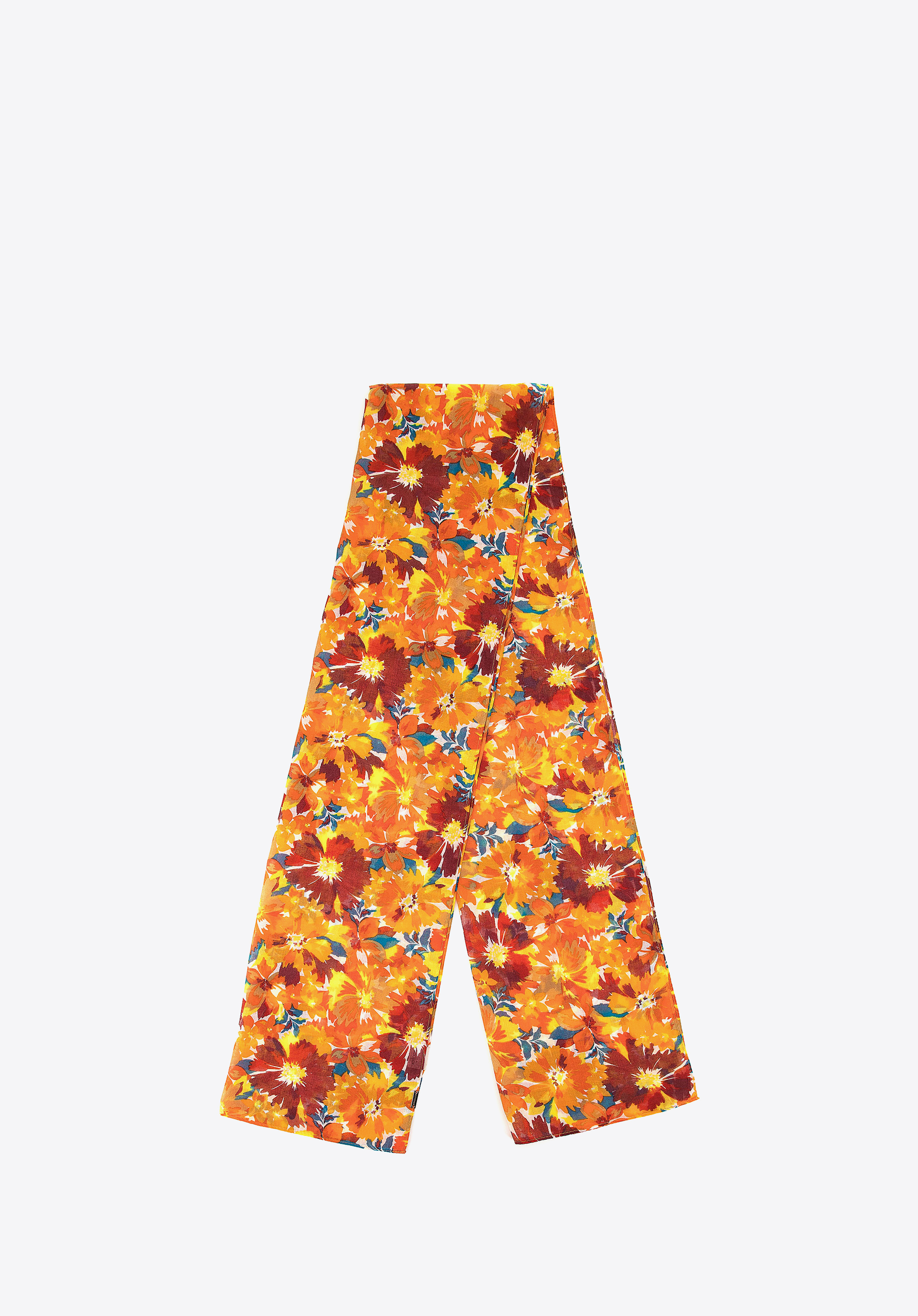 Szal w modny kwiatowy wzór idealnie komponuje się z wiosennymi i letnimi stylizacjami. Jest lekki i przyjemny w dotyku, a struktura materiału pozwala na swobodne drapowanie i układanie w różnorodne sposoby.