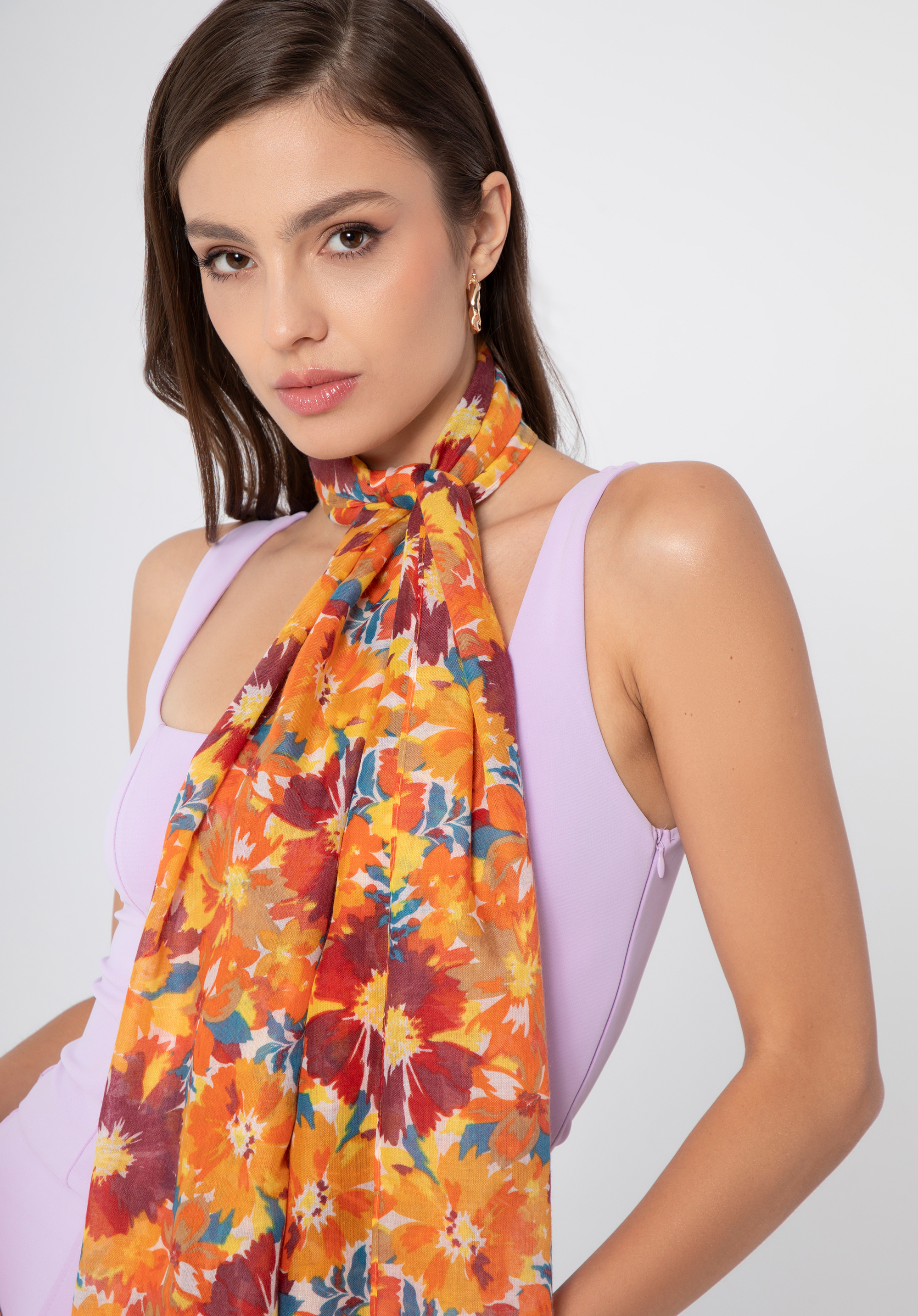 Wielobarwny szal damski z motywem kwiatowym to wyjątkowy dodatek, który doda świeżości i koloru wielu twoim stylizacjom.
