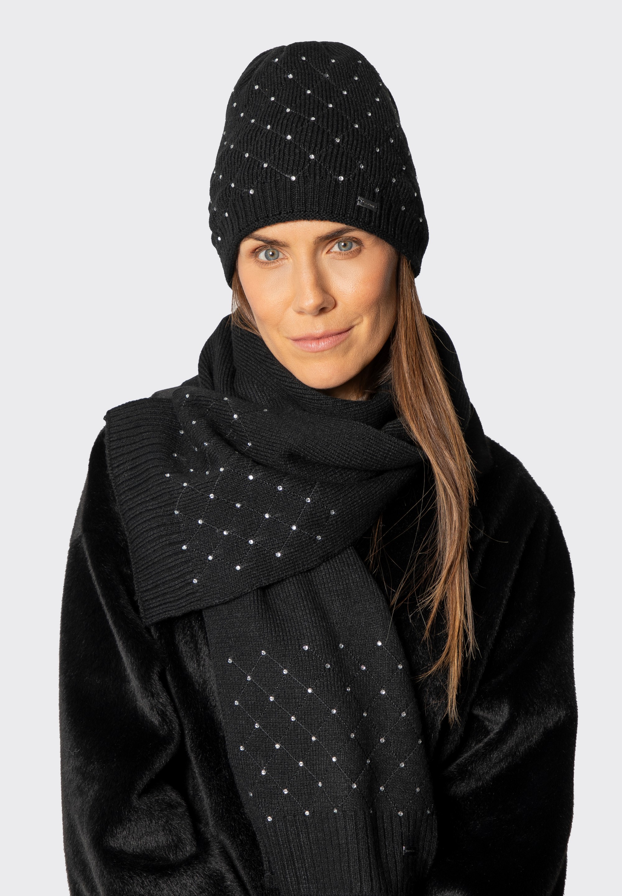 Dodaj swojej zimowej stylizacji odrobinę wyjątkowego szyku dzięki naszemu damskiemu szalikowi ozdobionemu geometrycznym wzorem oraz delikatnymi cyrkoniami. Ten miękki, akrylowy szalik nie tylko skutecznie otuli Cię w chłodne dni, ale także podkreśli Twój wyrafinowany gust i doda każdemu look’owi eleganckiego charakteru.