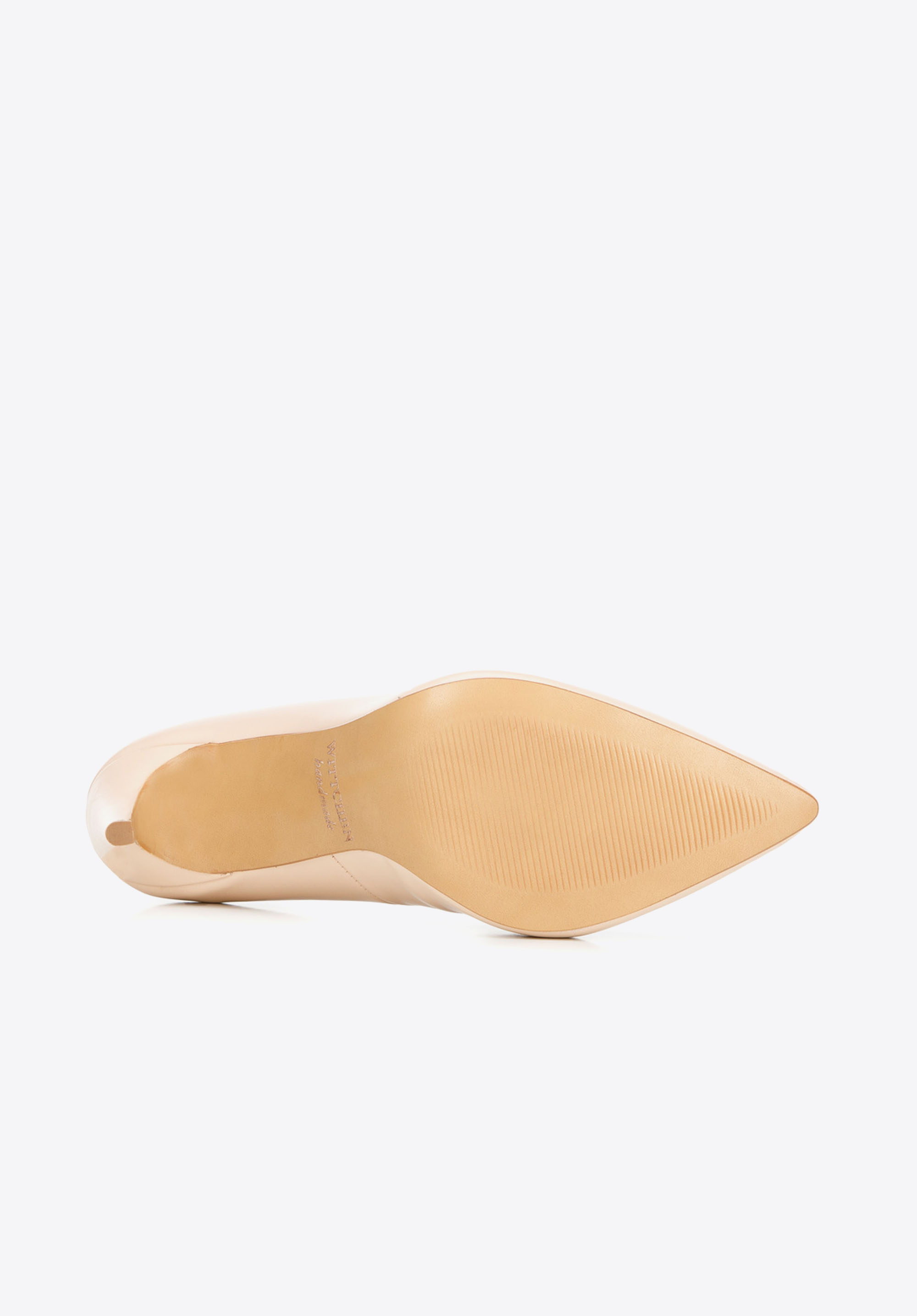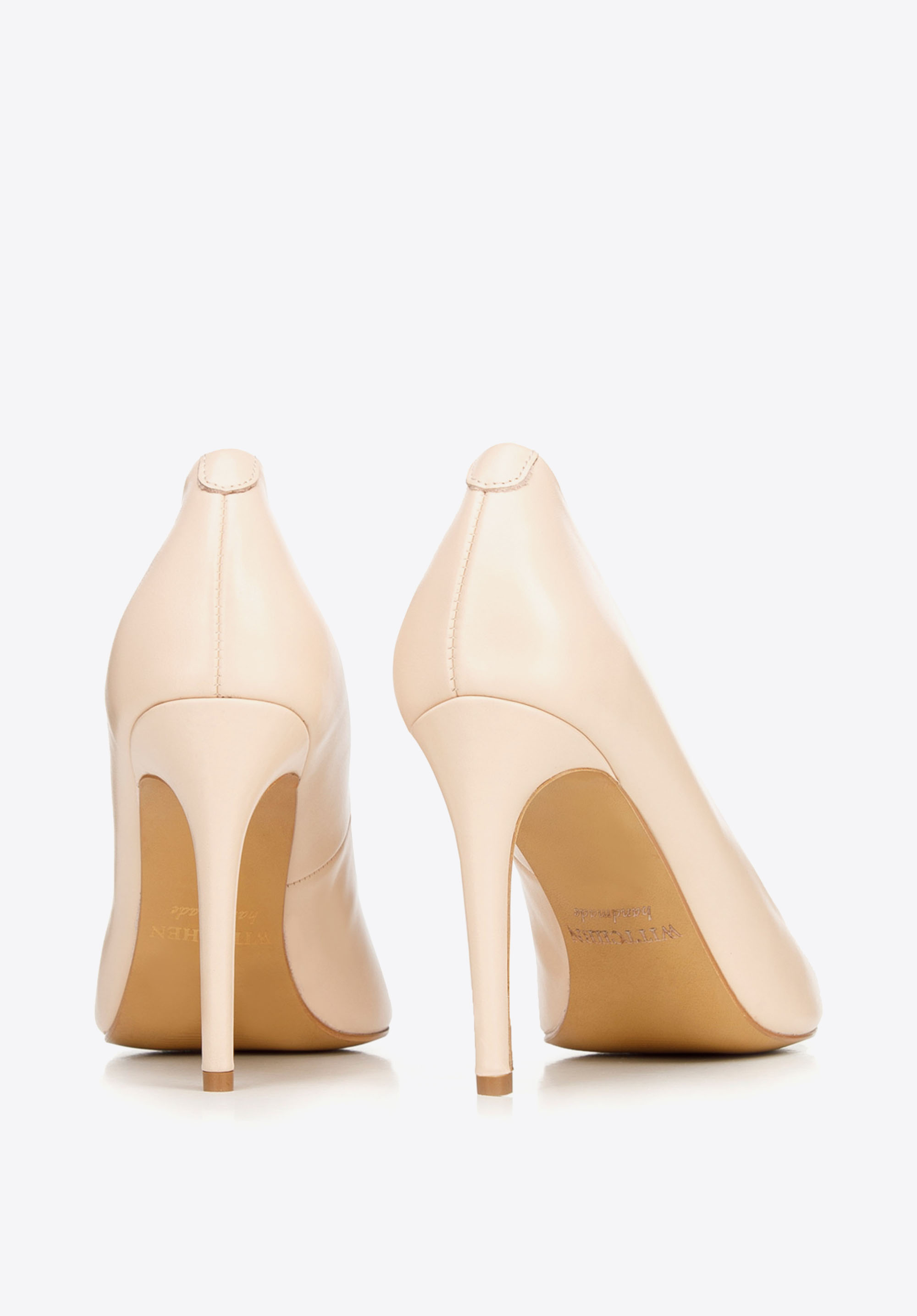 Szpilki skórzane klasyczne sprawdzą się podczas uroczystości, spotkań biznesowych i wyjątkowych okazji. Wysoki, stabilny obcas, staranne wykonanie w Polsce oraz miękka skórzana wkładka zapewniają komfort, a prosta linia pięknie podkreśla sylwetkę i nadaje jej proporcji.