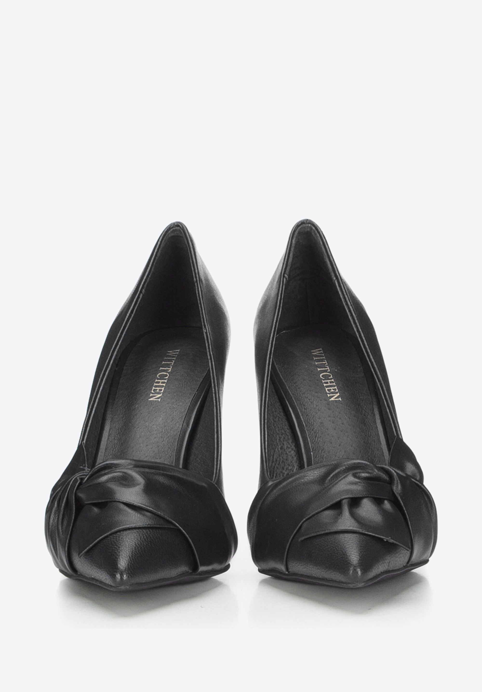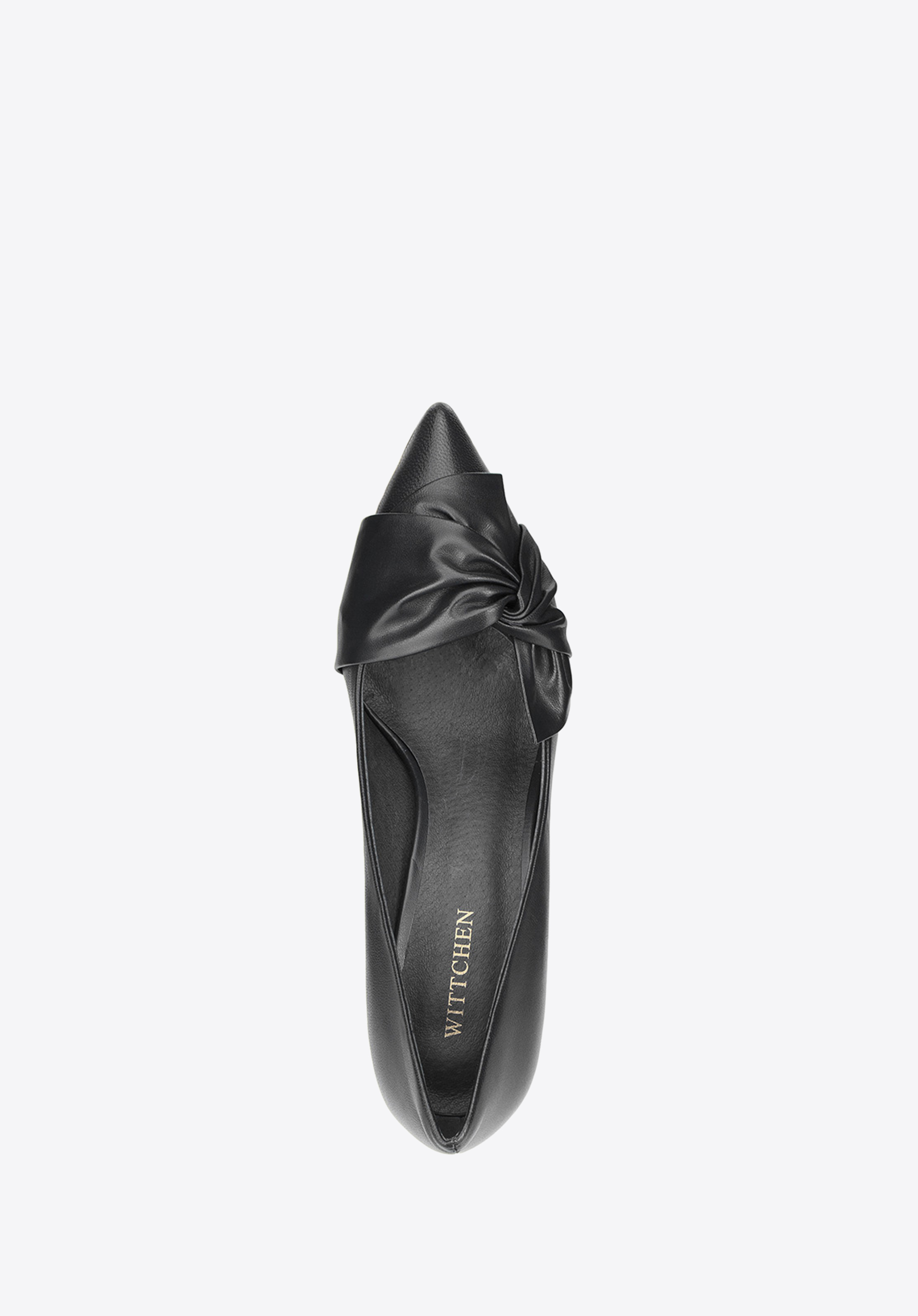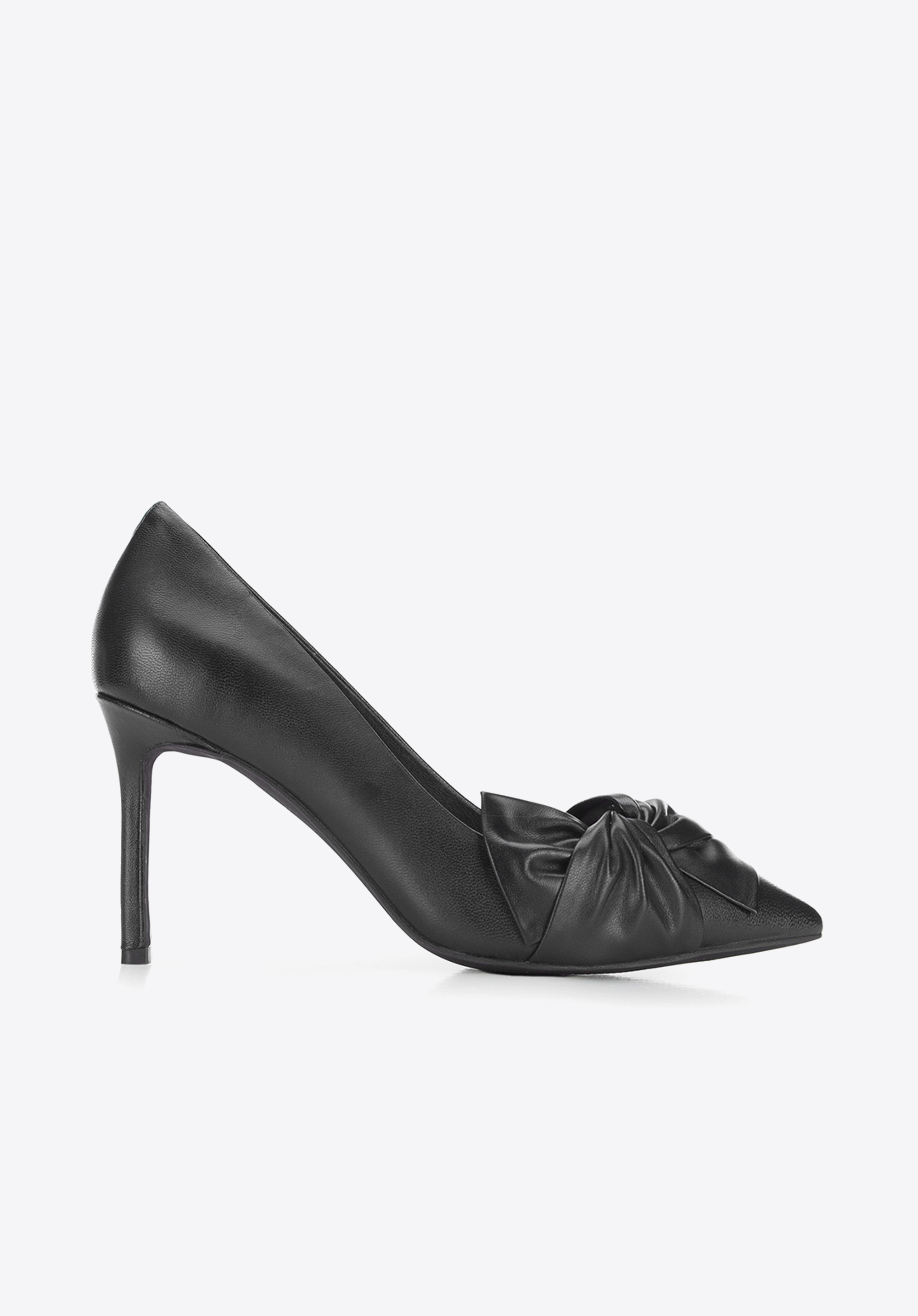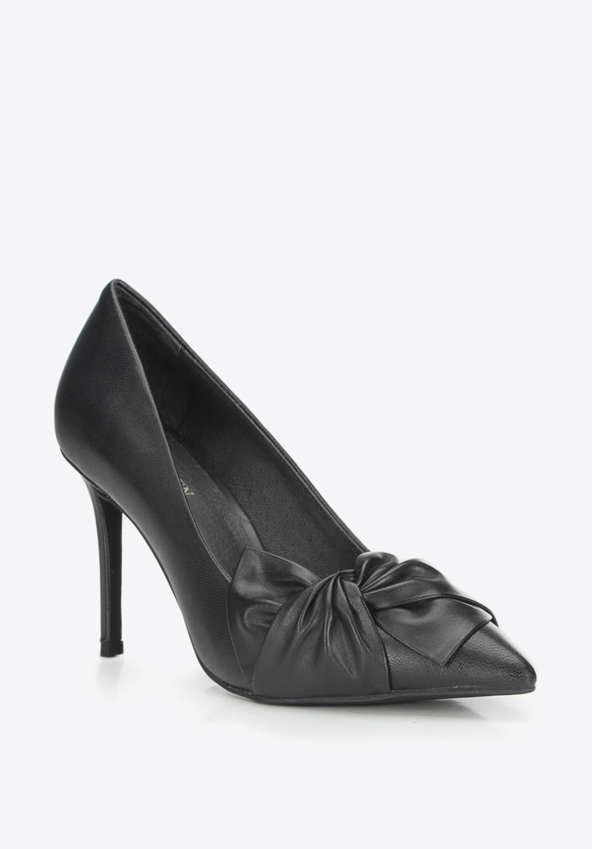 skórzaną kokardą, która wieńczy centralną część buta zakończonego w szpic. Naturalnie