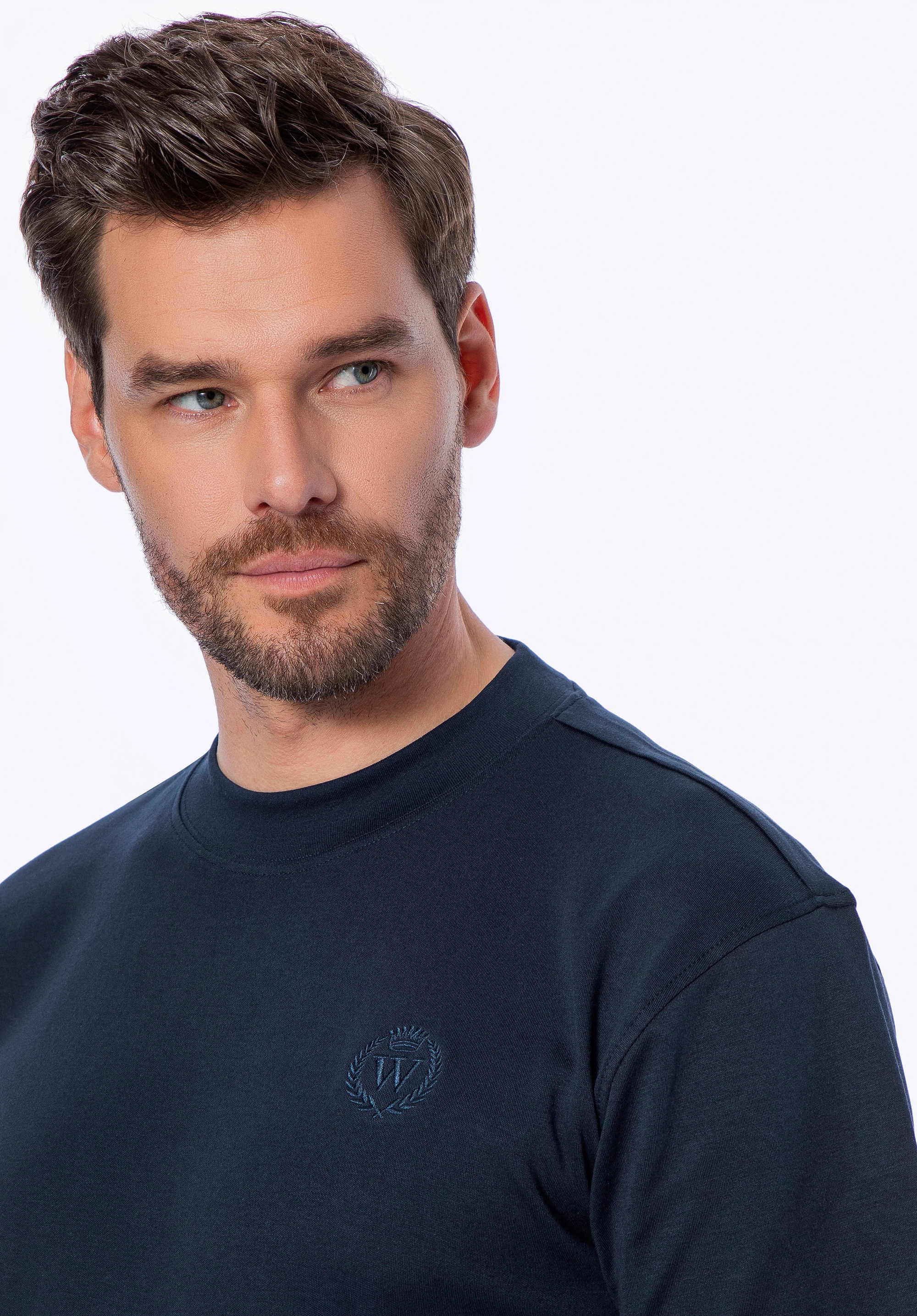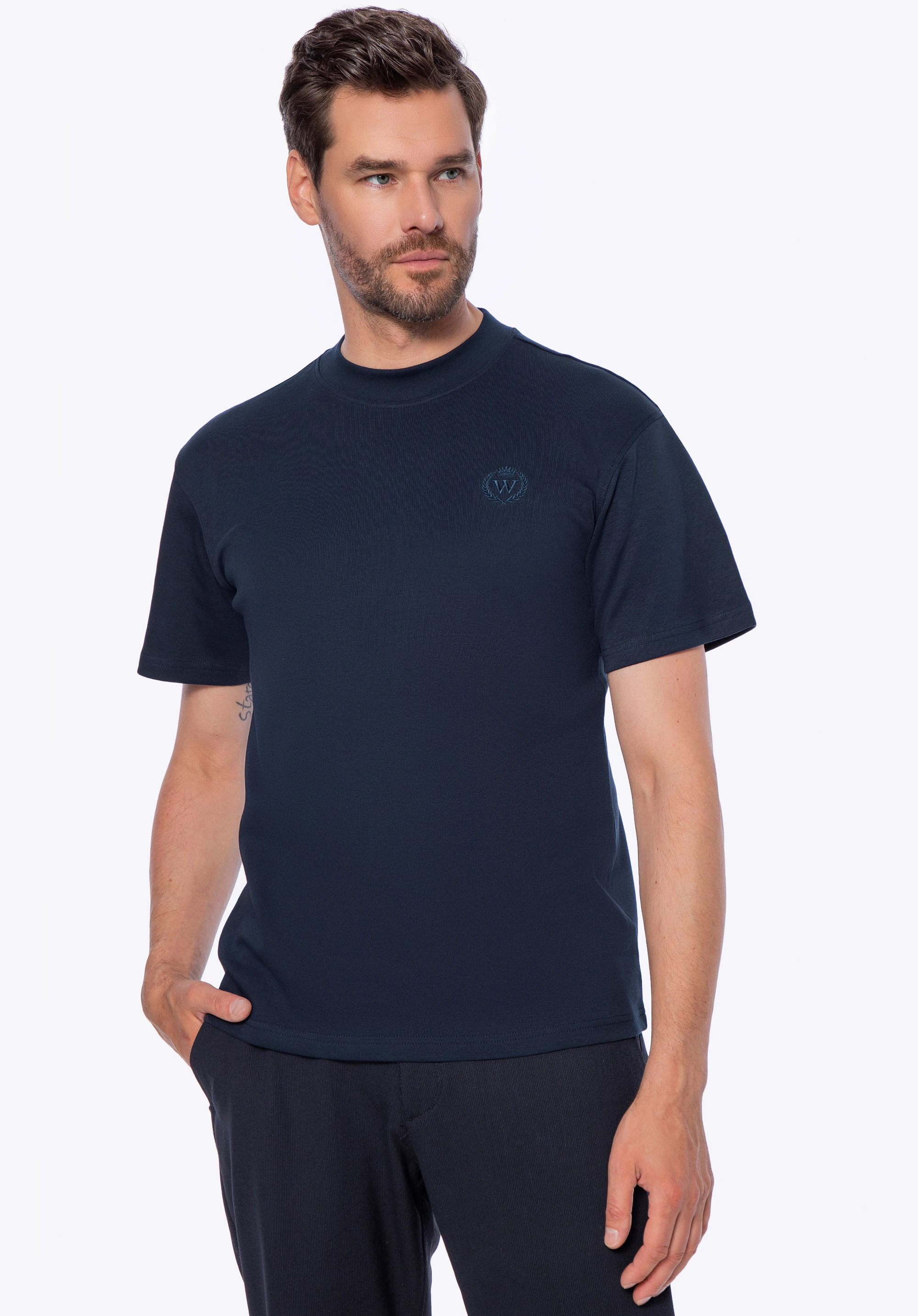 Ten męski T-shirt to połączenie prostoty, jakości i uniwersalnego stylu. Wykonany w 100% z bawełny, zapewnia komfort noszenia przez cały dzień. Klasyczny okrągły dekolt i krótki rękaw czynią go doskonałą bazą zarówno do codziennych, jak i bardziej dopracowanych stylizacji. Subtelne, haftowane logo w formie litery „W” z liściem laurowym i koroną podkreśla charakter marki i nadaje całości wyrafinowany wygląd. Całość starannie wykończona podwójnym ściegiem, co zwiększa trwałość i pozwala zachować idealny fason na długo.