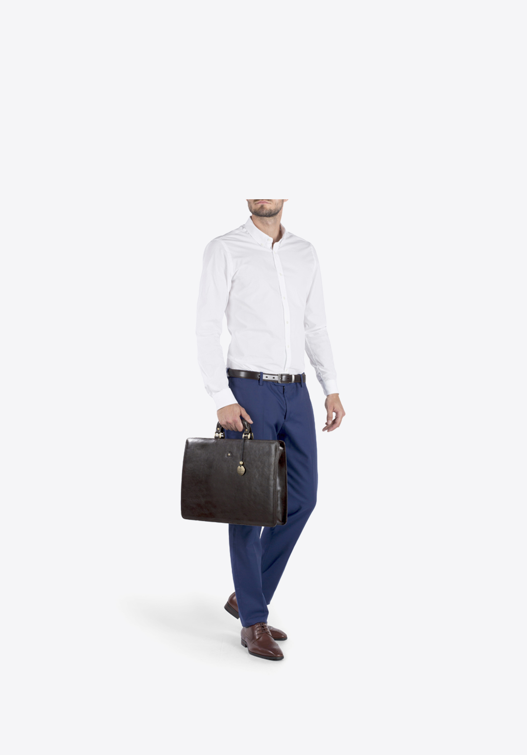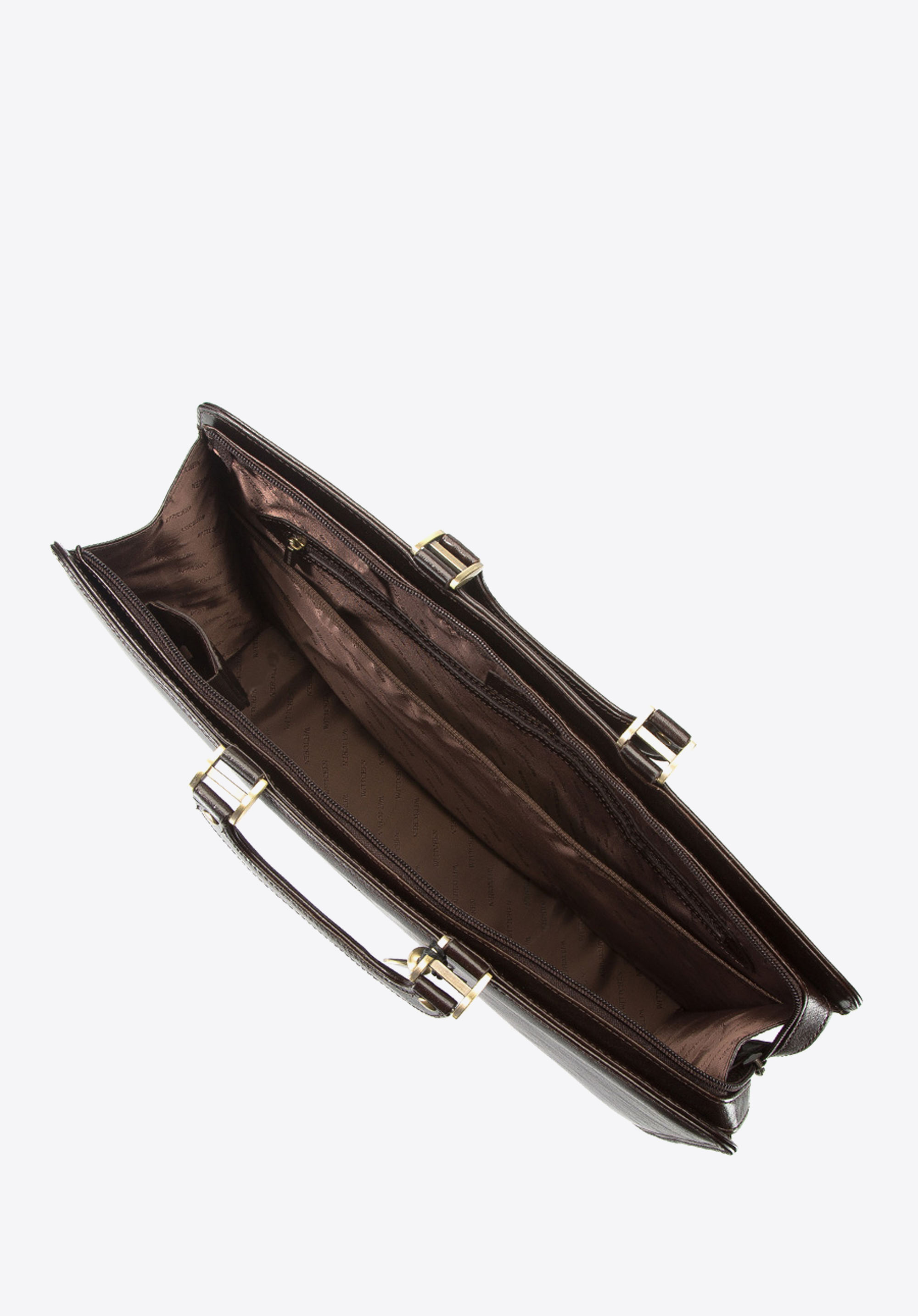 Piękna, skórzana teczka to dodatek, który uzupełni profesjonalną stylizację. Pojemny model cechują minimalizm i elegancja. Nowoczesny design spełni oczekiwania osób ceniących w modzie nowatorskie rozwiązania.