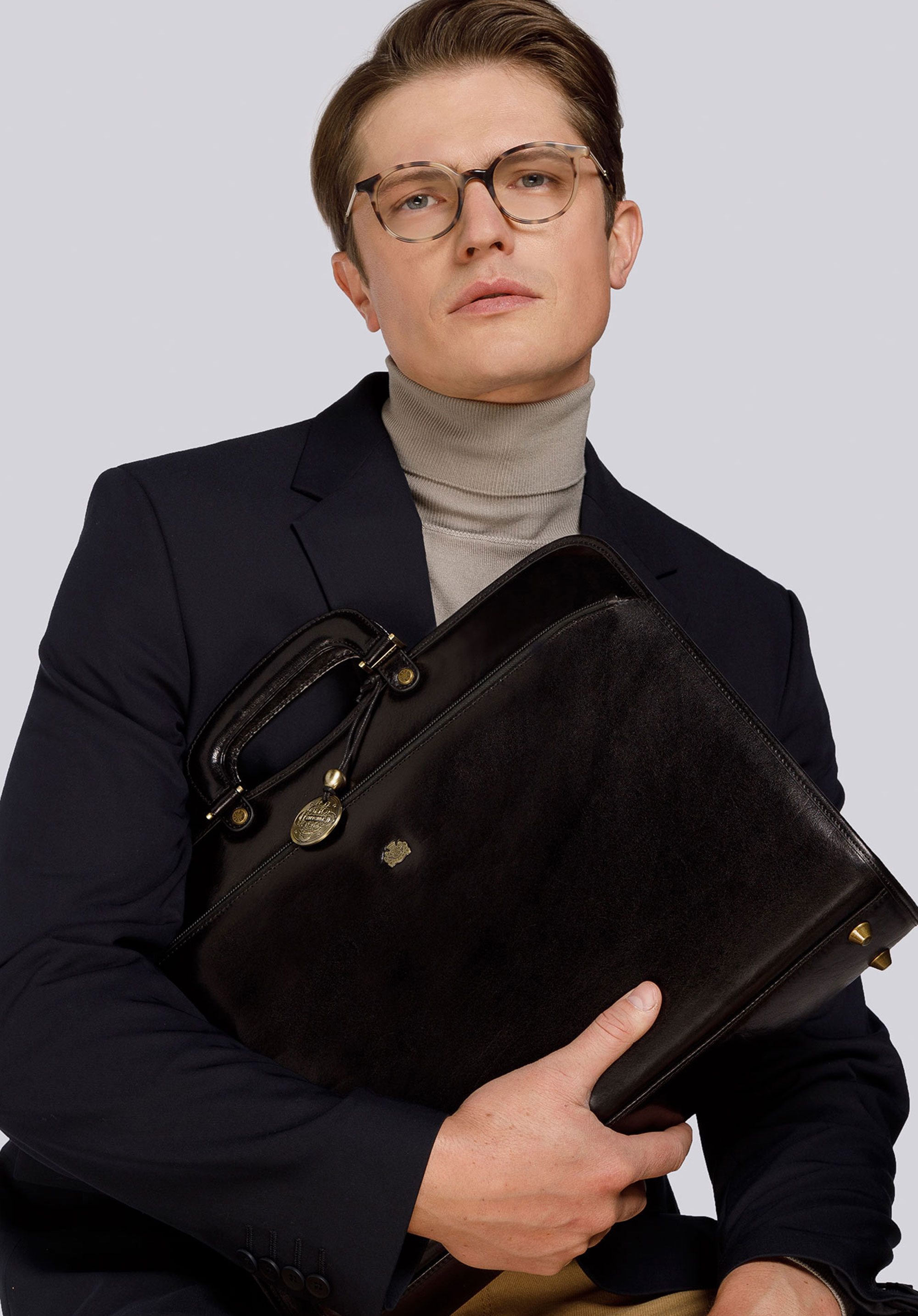 Pojemna skórzana teczka na dokumenty wykonana ze skóry cielęcej, charakteryzującej się wyjątkowo subtelnym połyskiem oraz wysoką wytrzymałością. Teczka pomieści zarówno potrzebne dokumenty, jak i telefon oraz wszelkie niezbędne akcesoria.