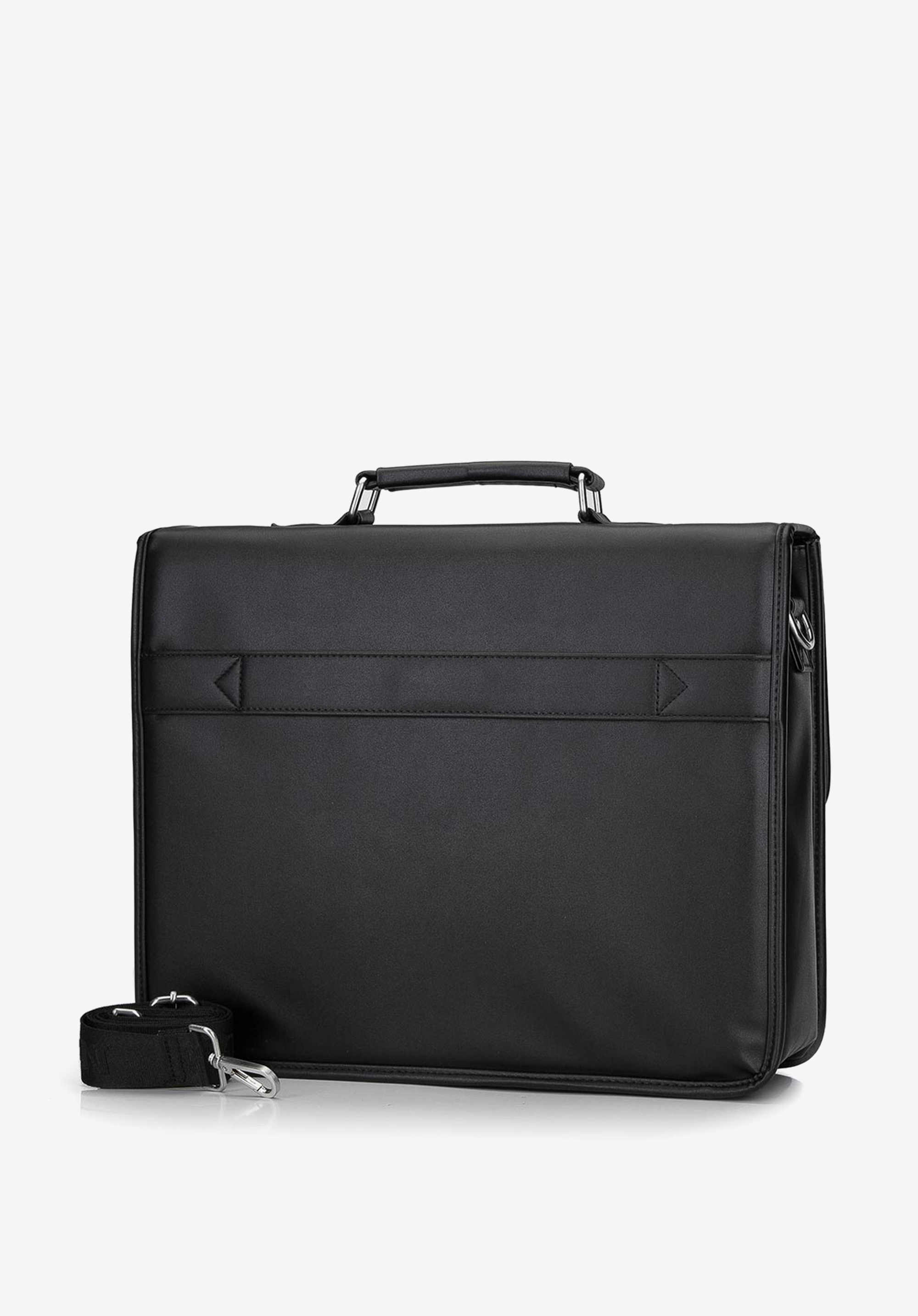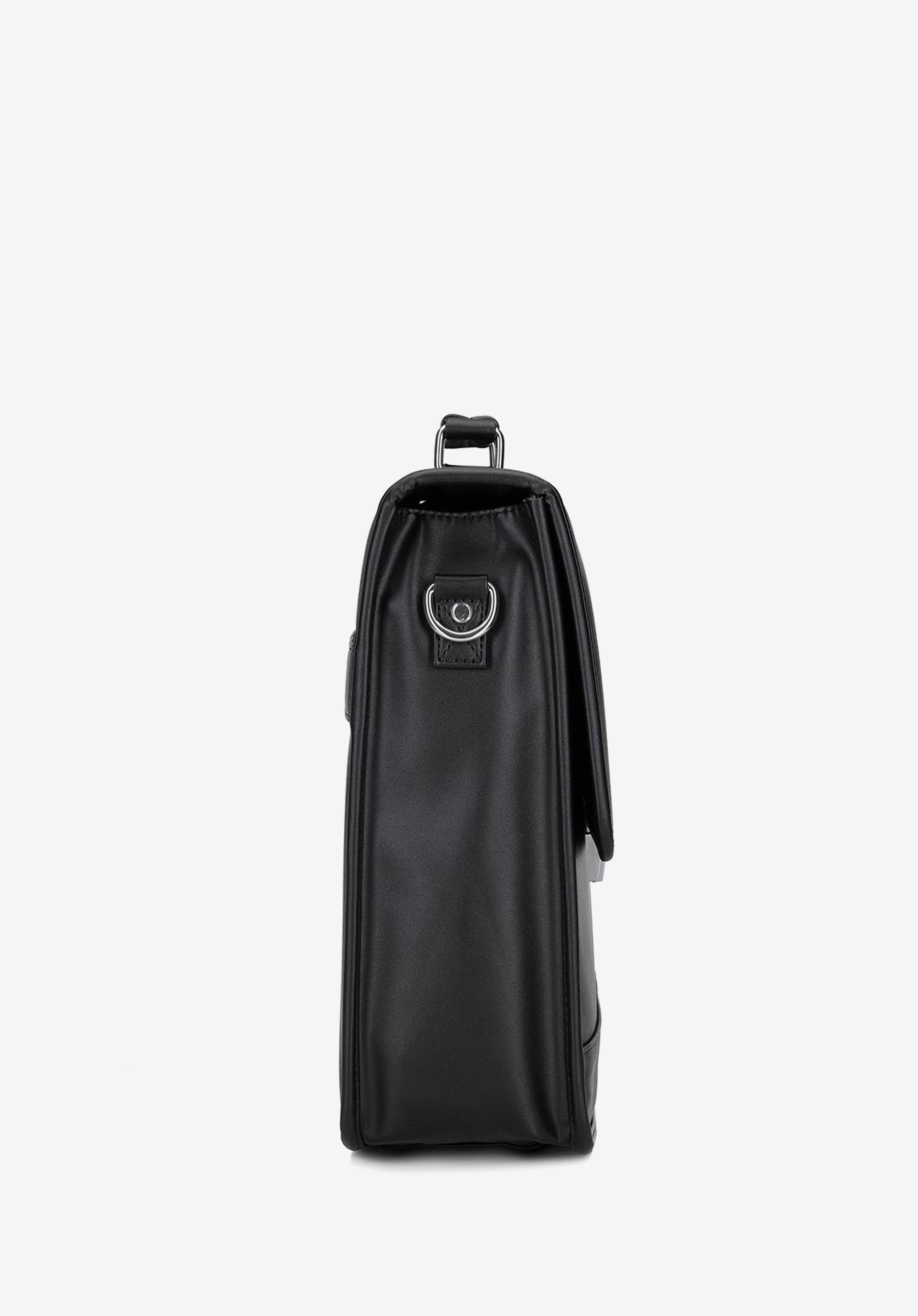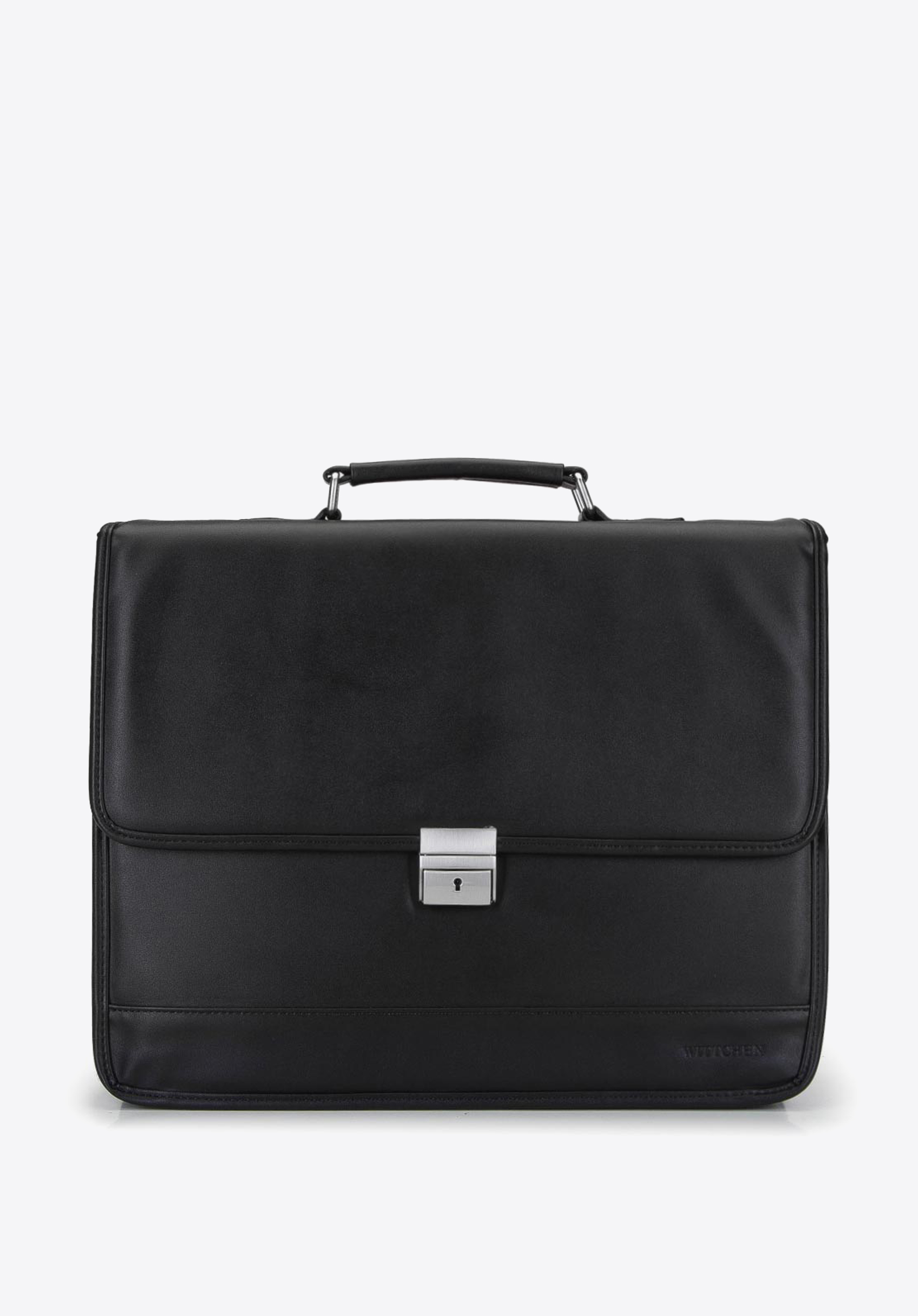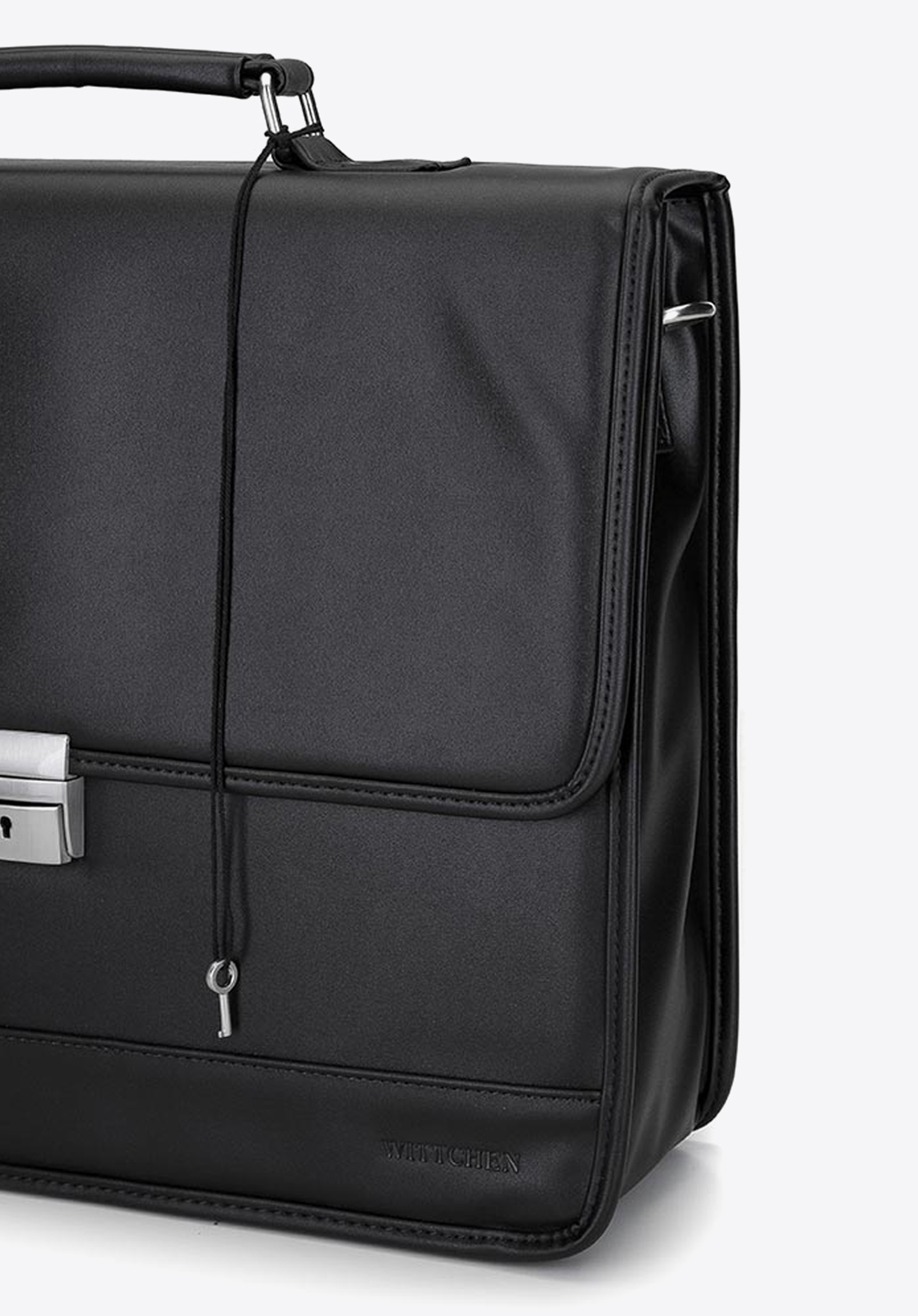 Prosty fason tej pudełkowej teczki zadowoli miłośników klasyki. Jest to idealna męska torba do pracy, na delegację czy służbowe spotkanie. Zmieścisz do niej naprawdę sporo dokumentów, również w formacie A4. Wewnątrz znajdziesz praktyczną, zamykaną na suwak kieszeń, która pomoże Ci w dobrej organizacji. Dodatkowe zapięcie na kluczyk gwarantuje, że jej zawartość będzie dobrze zabezpieczona. Torba uszyta jest z wysokiej jakości, miękkiej skóry ekologicznej o matowym wykończeniu. Na froncie znajduje się dodatkowy, ozdobny panel z ekoskóry. Ta teczka z zapięciem na kluczyk będzie pasować zarówno do garnituru, jak i stroju smart casual. Załóż do niej sportową marynarkę albo klasyczny bawełniany garnitur.