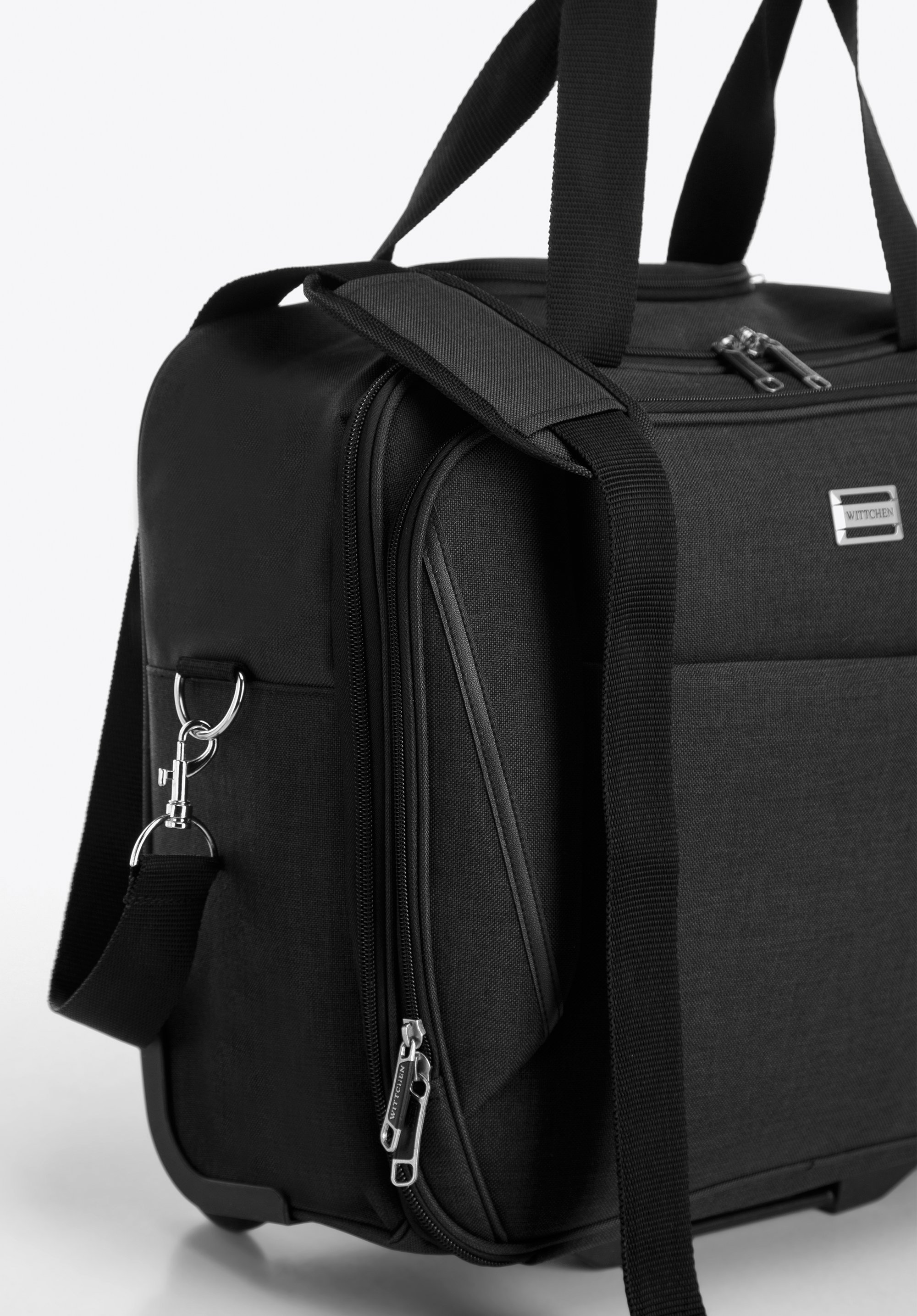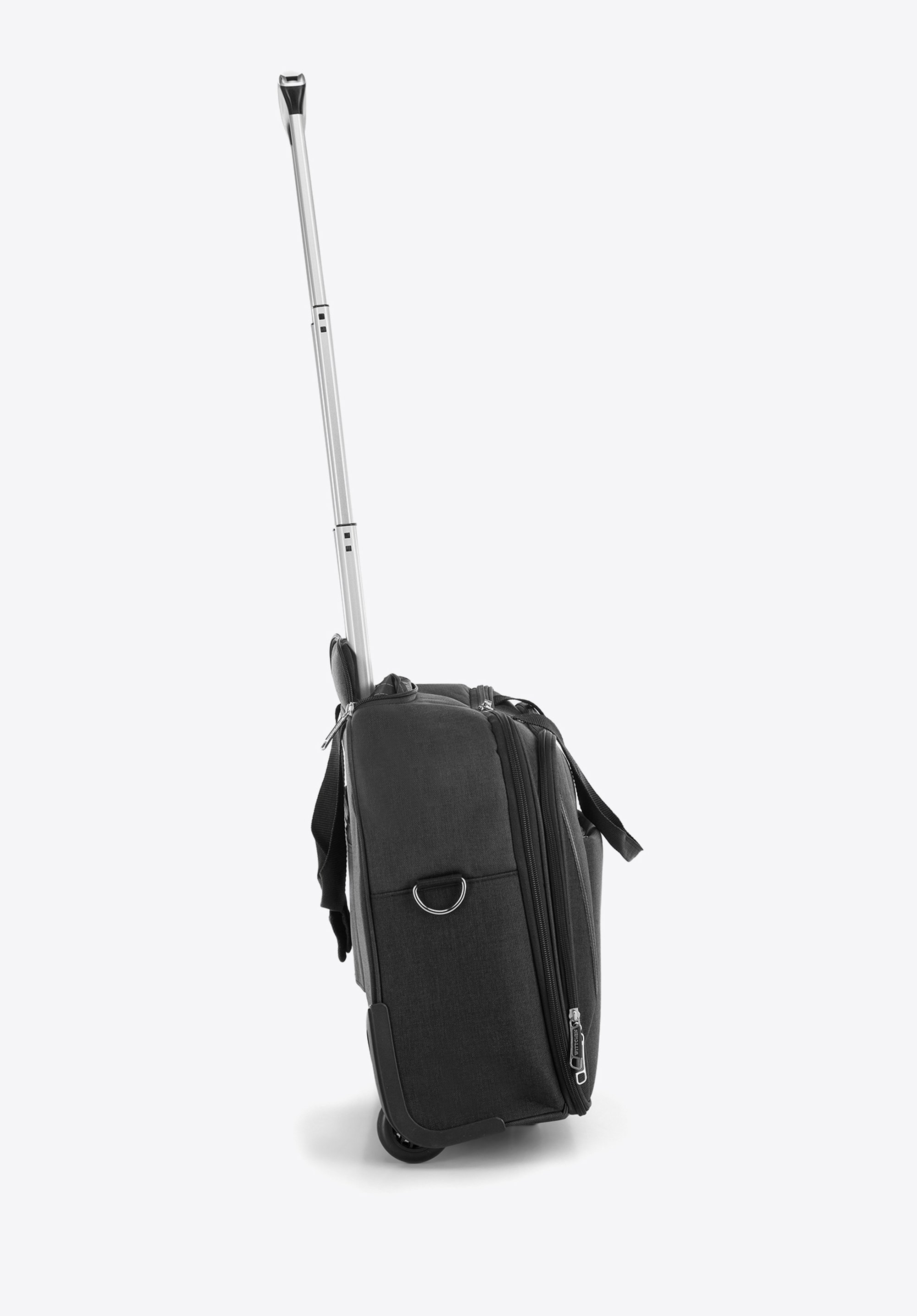 dwa kółka oraz teleskopowy uchwyt, dzięki którym łatwo będzie go przenosić. Torba biznesowa na kółkach przyda się każdej, świetnie zorganizowanej osobie.