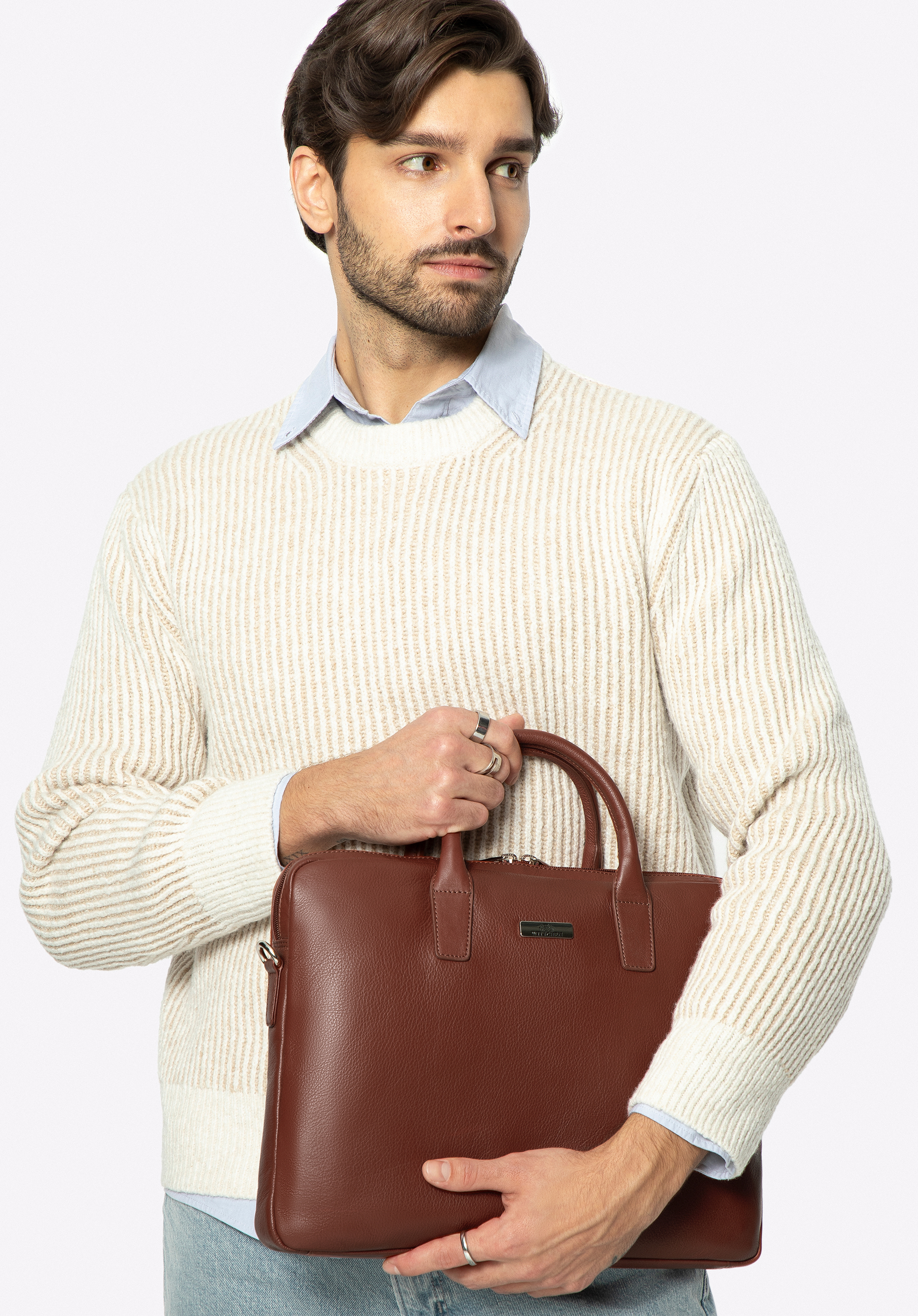 Prosty model bez zdobień dopasujesz zarówno do codziennych, jak i eleganckich stylizacji. Noś ją w ręku lub doczep regulowany pasek i zawieś na ramieniu. Torba na laptopa 11’’/12’’ skórzana klasyczna to świetny wybór na wiele sezonów.