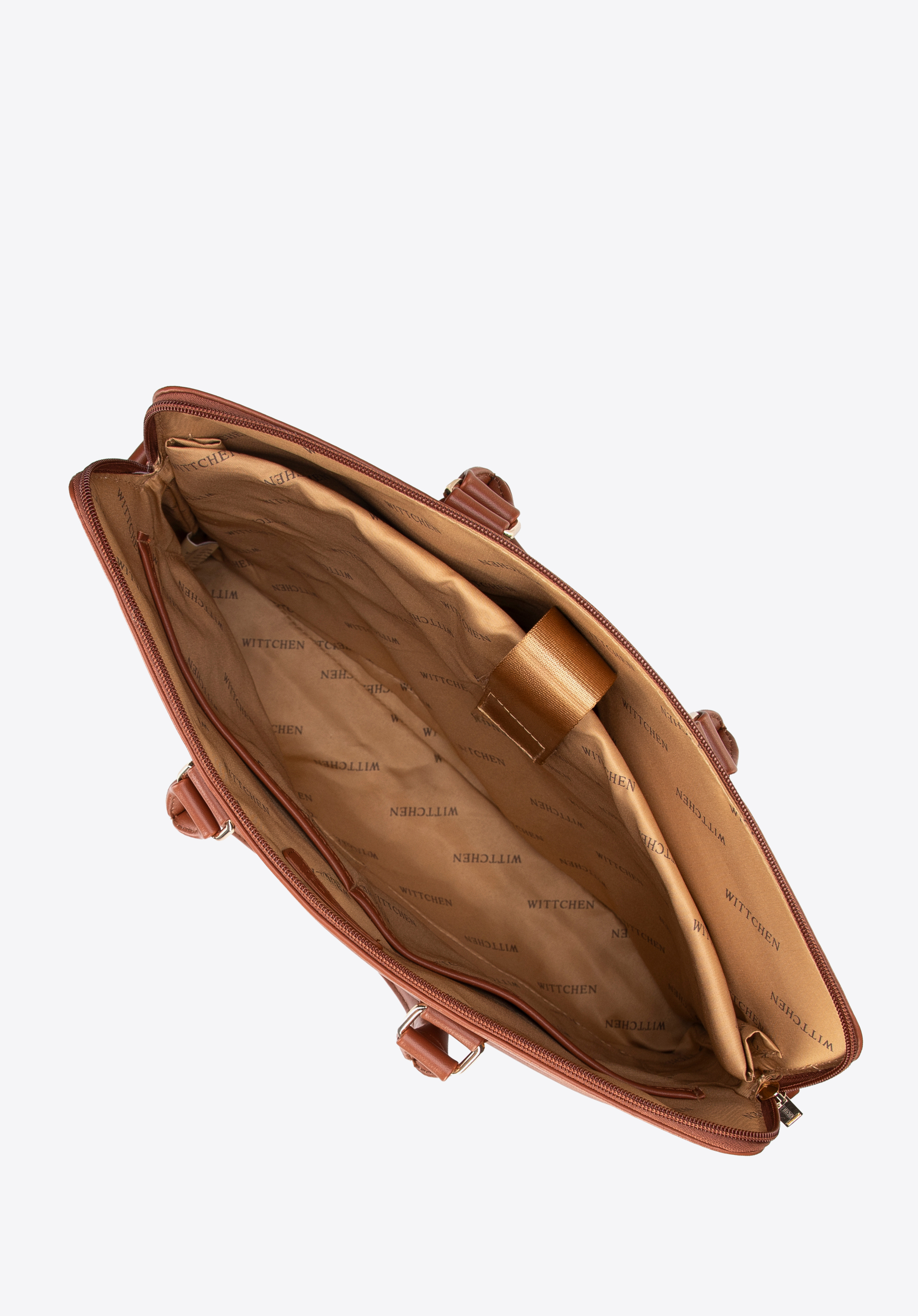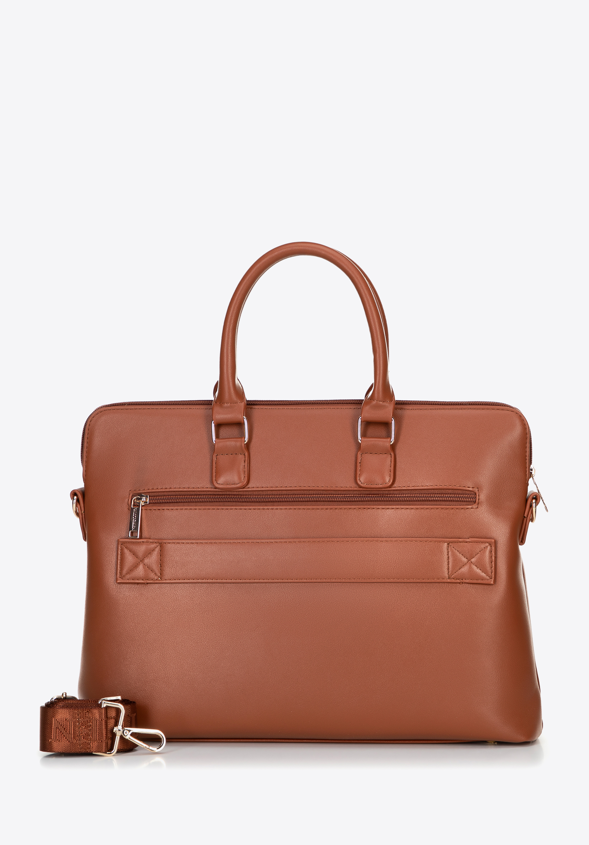 Ta elegancka torba na laptopa to doskonałe połączenie nowoczesnego designu i praktyczności, stworzone z myślą o osobach, które cenią zarówno wygodę, jak i styl. Wykonana z ekoskóry, zapewnia trwałość i subtelny wygląd. Dzięki klasycznemu zamkowi błyskawicznemu, z łatwością otworzysz torbę, by sięgnąć po swoje rzeczy. Torba posiada specjalnie zaprojektowaną przegrodę na laptopa (max. 24 x 37 cm), a także przestronne wnętrze, które pomieści wszystkie Twoje niezbędne akcesoria.