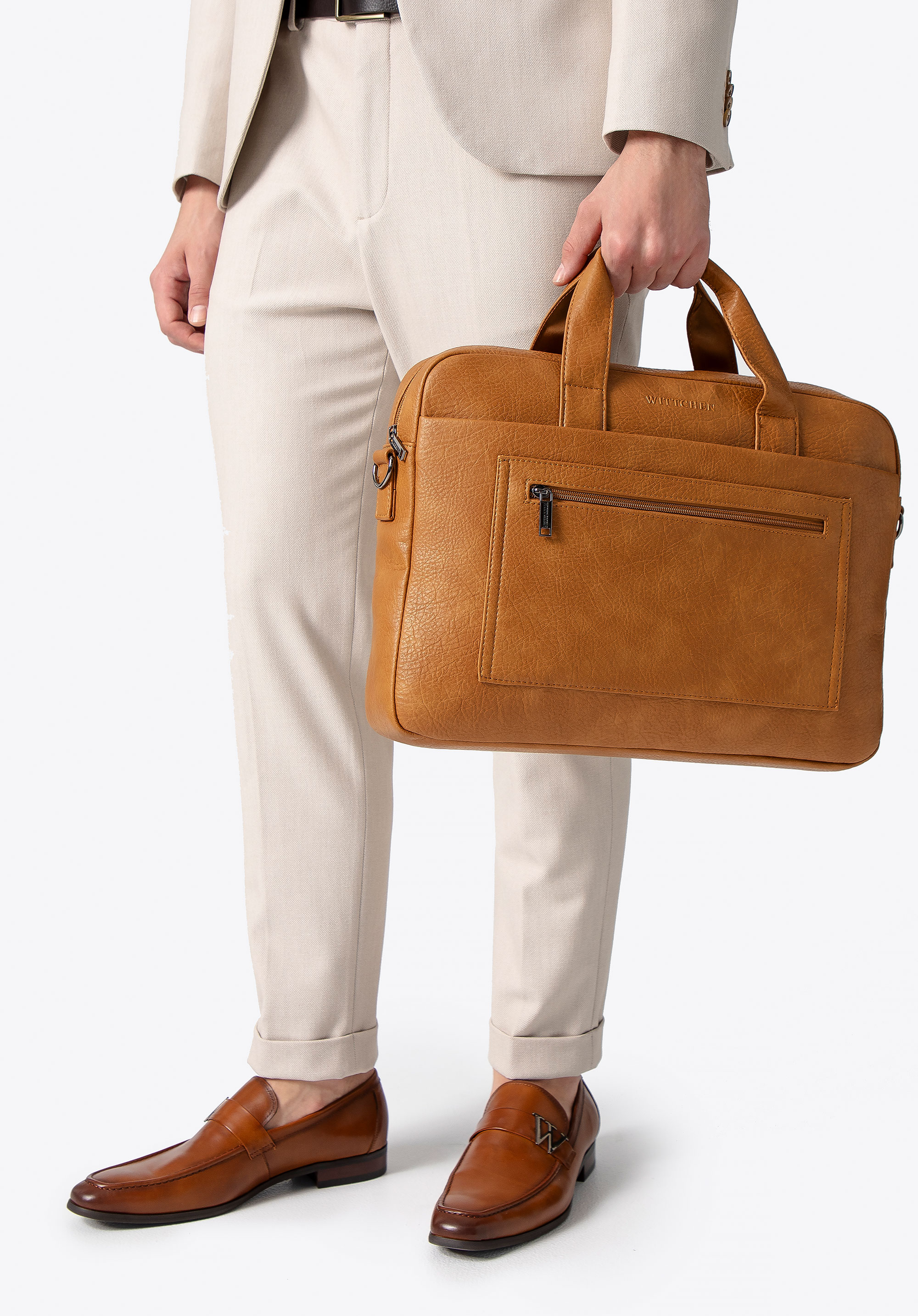 Torba na laptopa 17" z imitacji skóry pasuje do pracy, na uczelnię i w delegacje, gdy potrzebujesz pojemnego modelu z dobrą organizacją. Bezpieczna przegroda na laptop, liczne kieszenie, odpinany pasek i uchwyt do walizki ułatwiają codzienną logistykę, a ekoskóra trzyma profesjonalny wygląd.