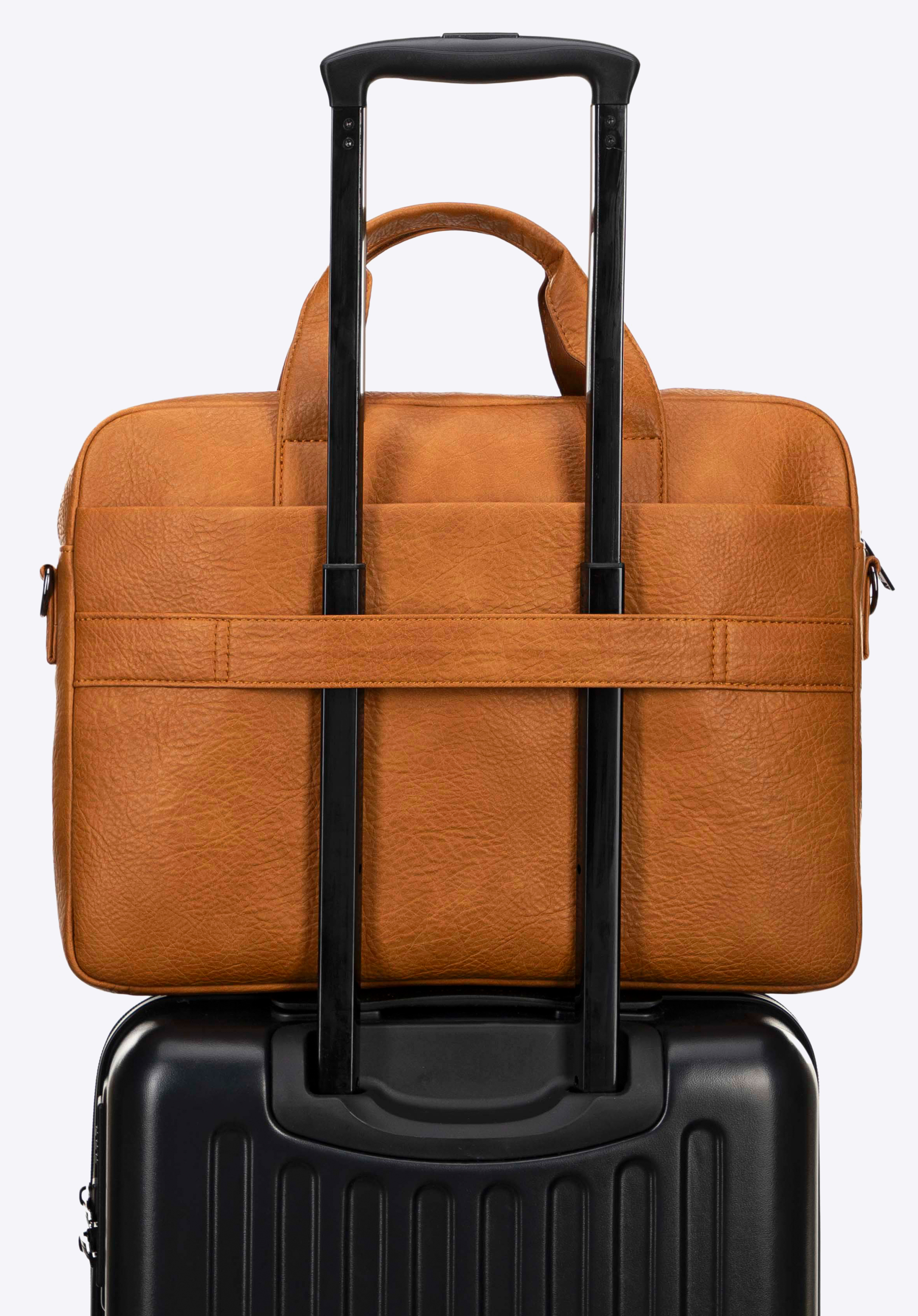 - Uchwyt na walizkę: Sprawia, że torba świetnie sprawdza się podczas wyjazdów służbowych i delegacji.