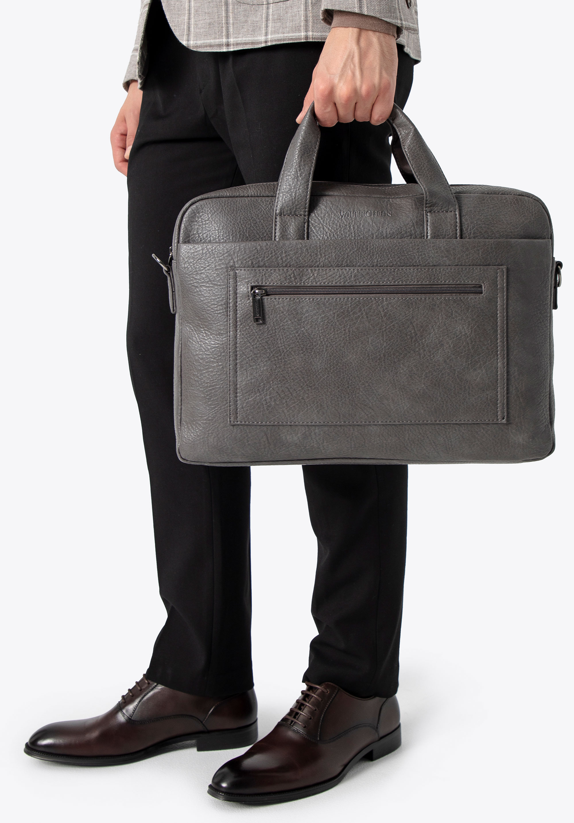 Torba na laptopa 17" z imitacji skóry pasuje do pracy, na uczelnię i w delegacje, gdy potrzebujesz pojemnego modelu z dobrą organizacją. Bezpieczna przegroda na laptop, liczne kieszenie, odpinany pasek i uchwyt do walizki ułatwiają codzienną logistykę, a ekoskóra trzyma profesjonalny wygląd.