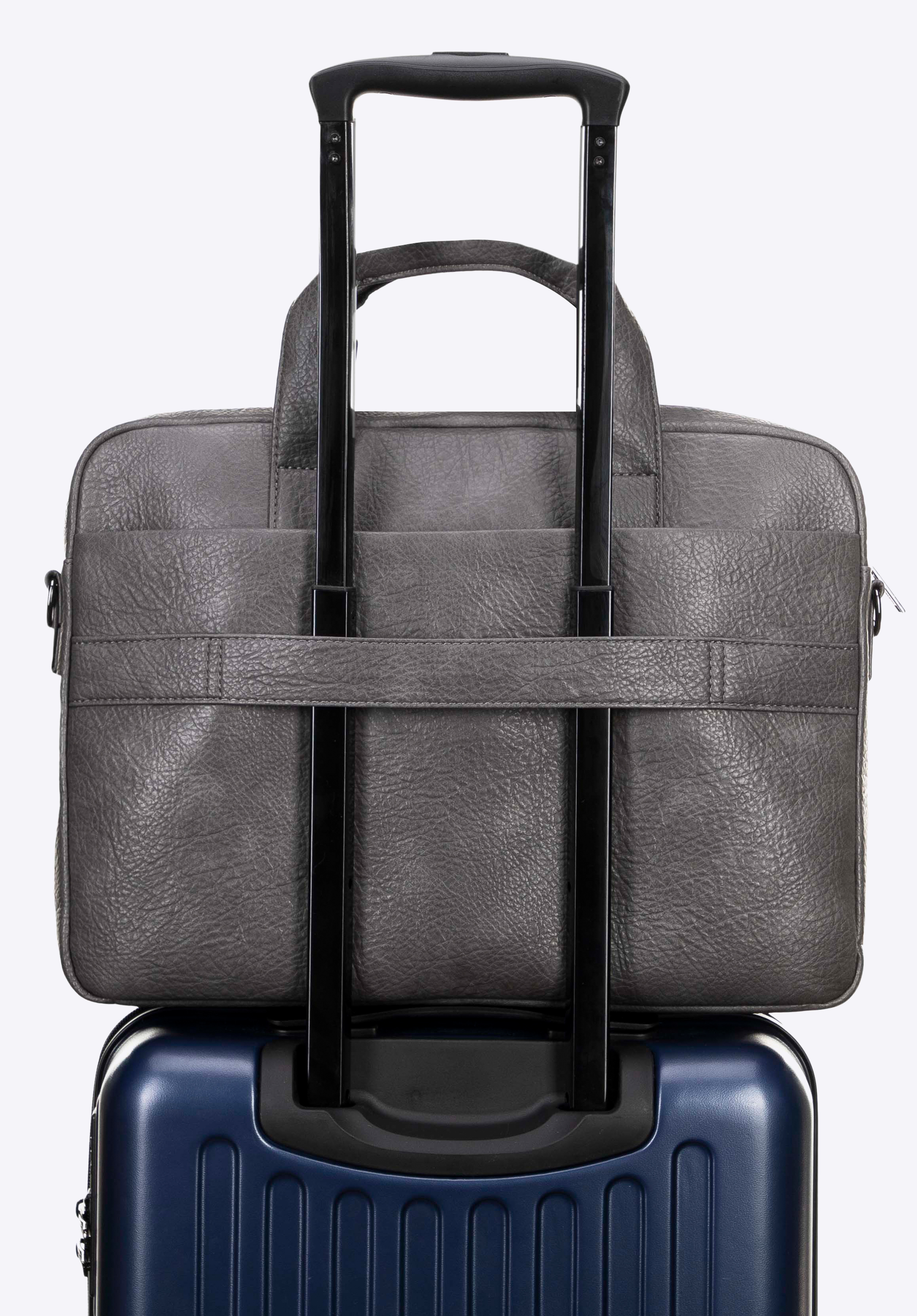 - Uchwyt na walizkę: Sprawia, że torba świetnie sprawdza się podczas wyjazdów służbowych i delegacji.