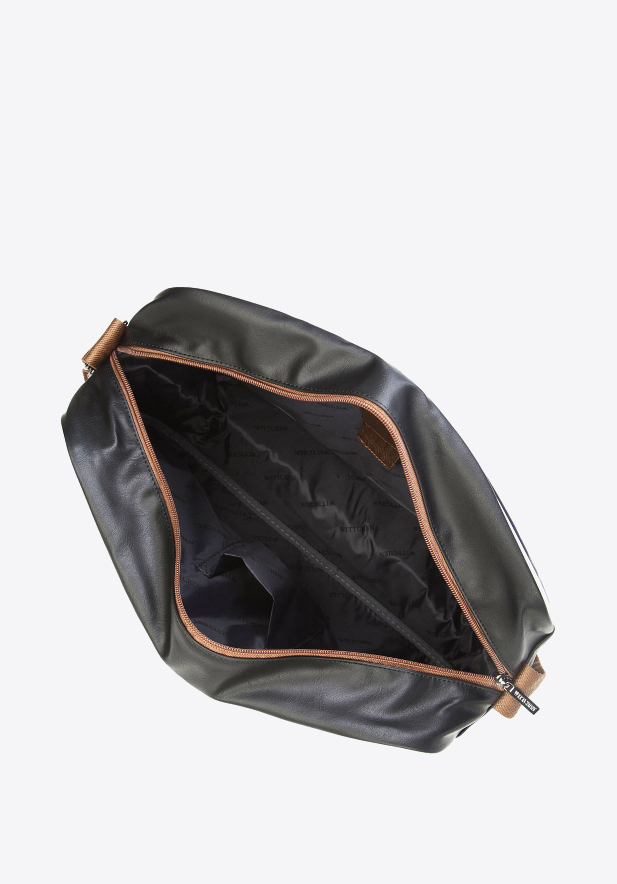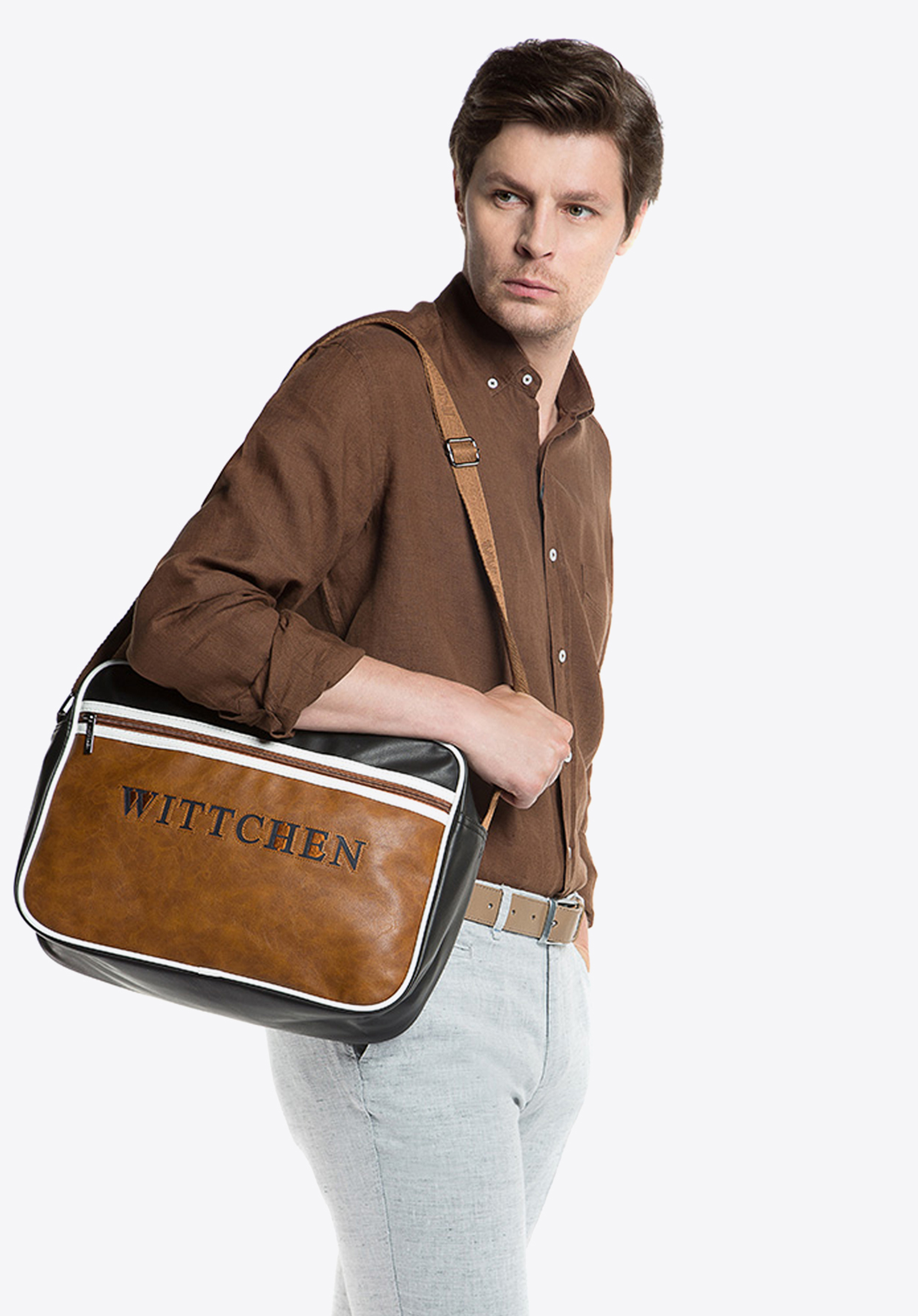 Torba na komputer przenośny wykonana z wysokiej jakości skóry ekologicznej, uzupełniona o materiałowy pasek. Modne połączenie czerni z brązem zostało uzupełnione o wyraźne logo WITTCHEN na froncie modelu. Torba doskonale sprawdzi się do szkoły, na uczelnię lub na co dzień do pracy.