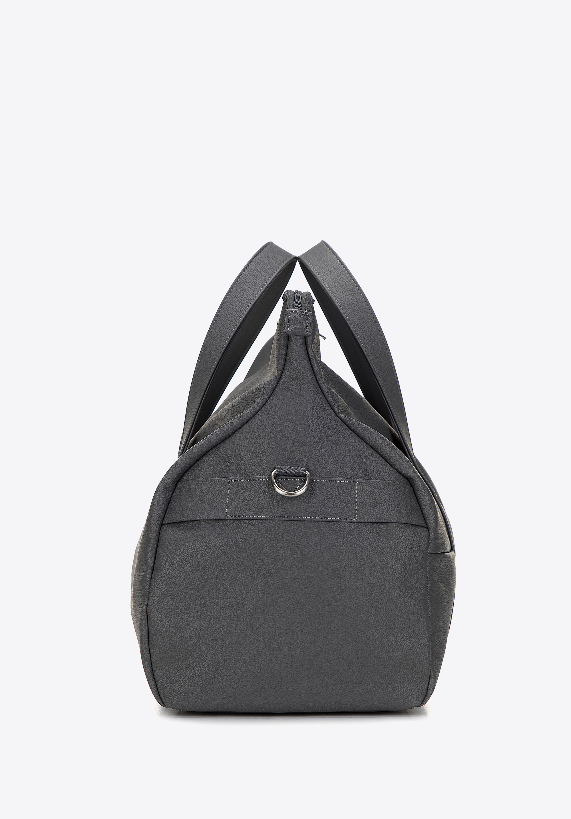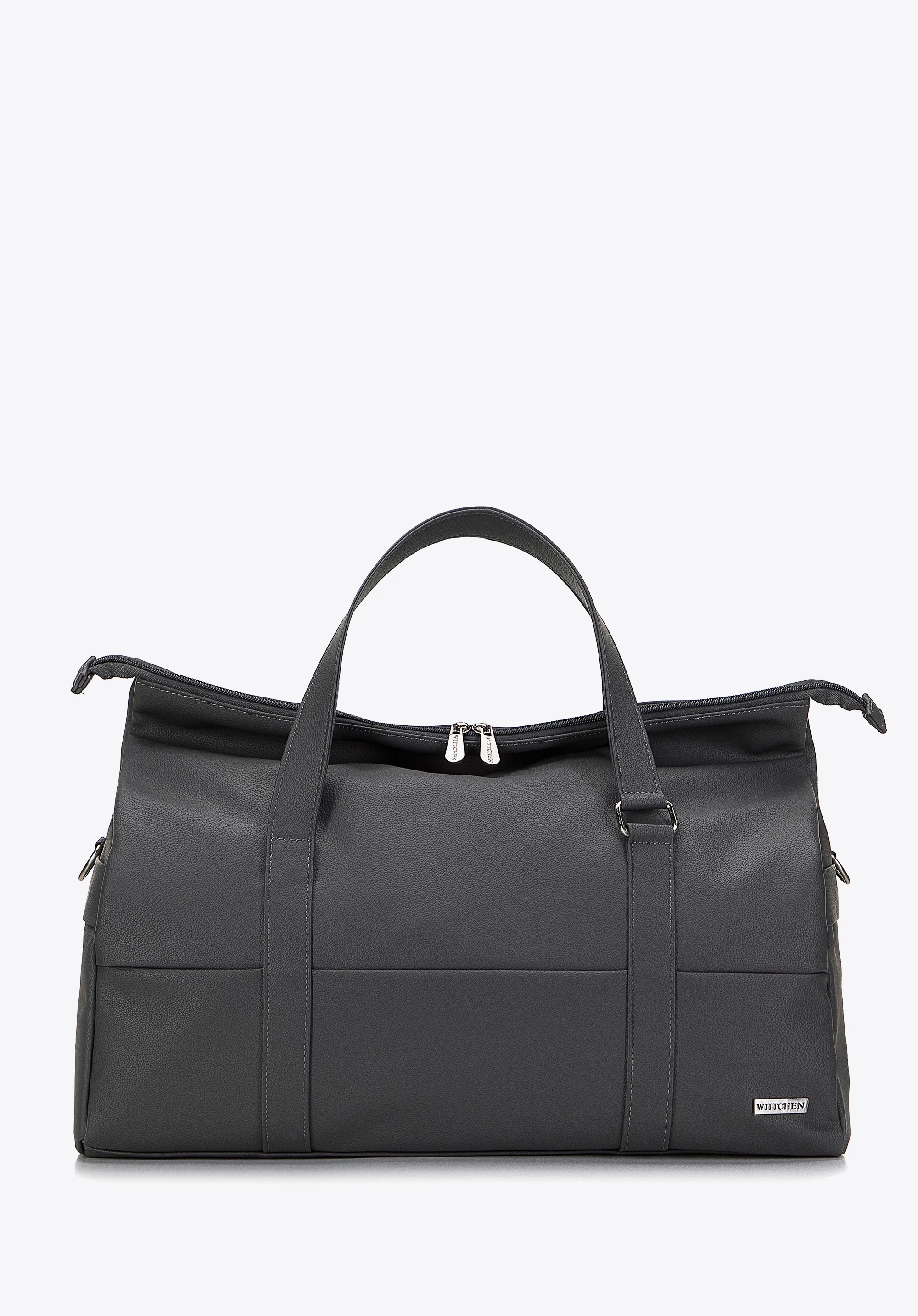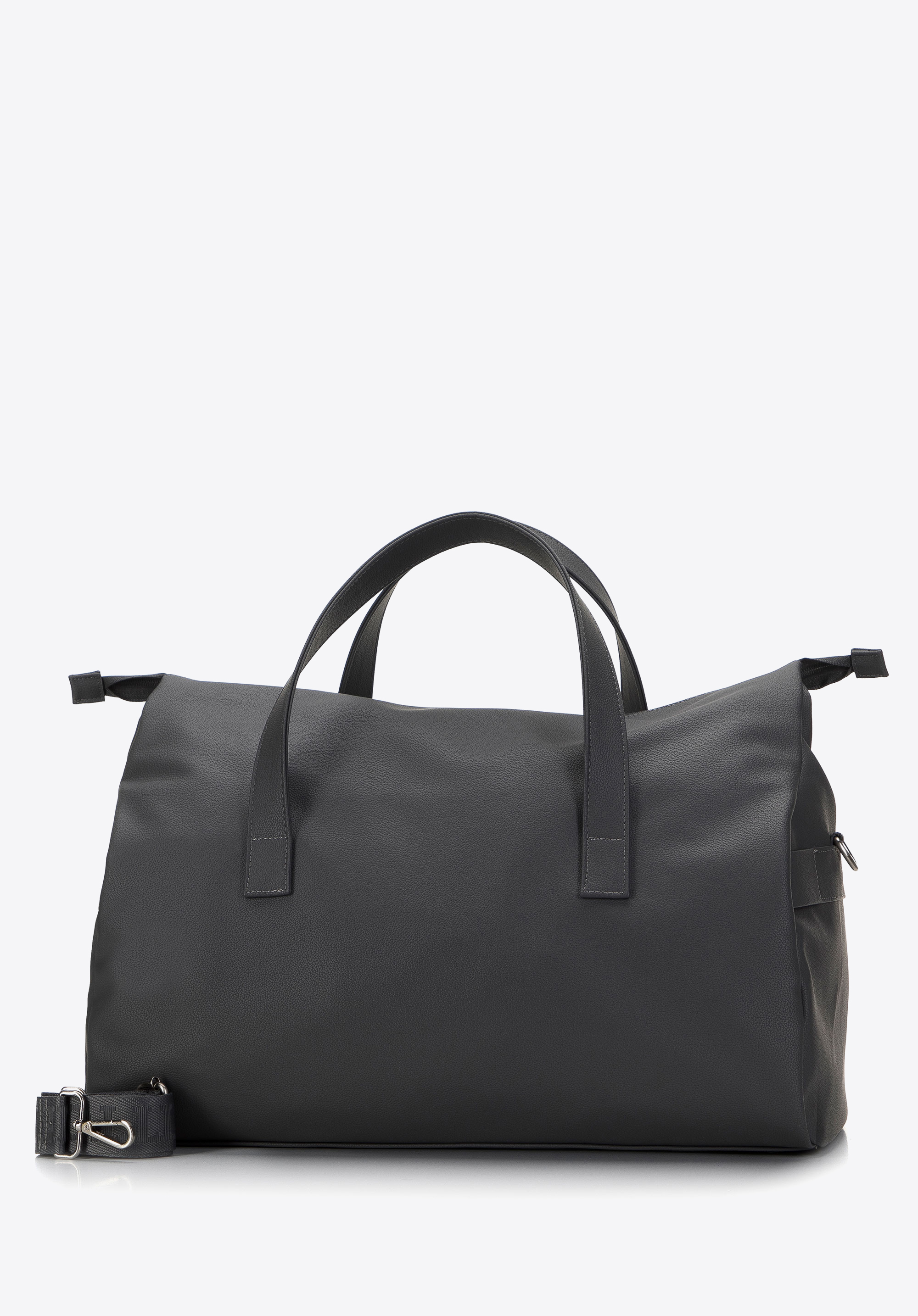 zgrabny trapezowy kształt, a w środku dużej komory znajdują się trzy kieszonki, które pomogą Ci w utrzymaniu porządku. Możesz ją nosić klasycznie – do ręki lub przewiesić przez ramię na dołączonym pasku. Nowoczesna torba podróżna z ekoskóry to ponadczasowy dodatek, który przyda się w Twojej szafie.