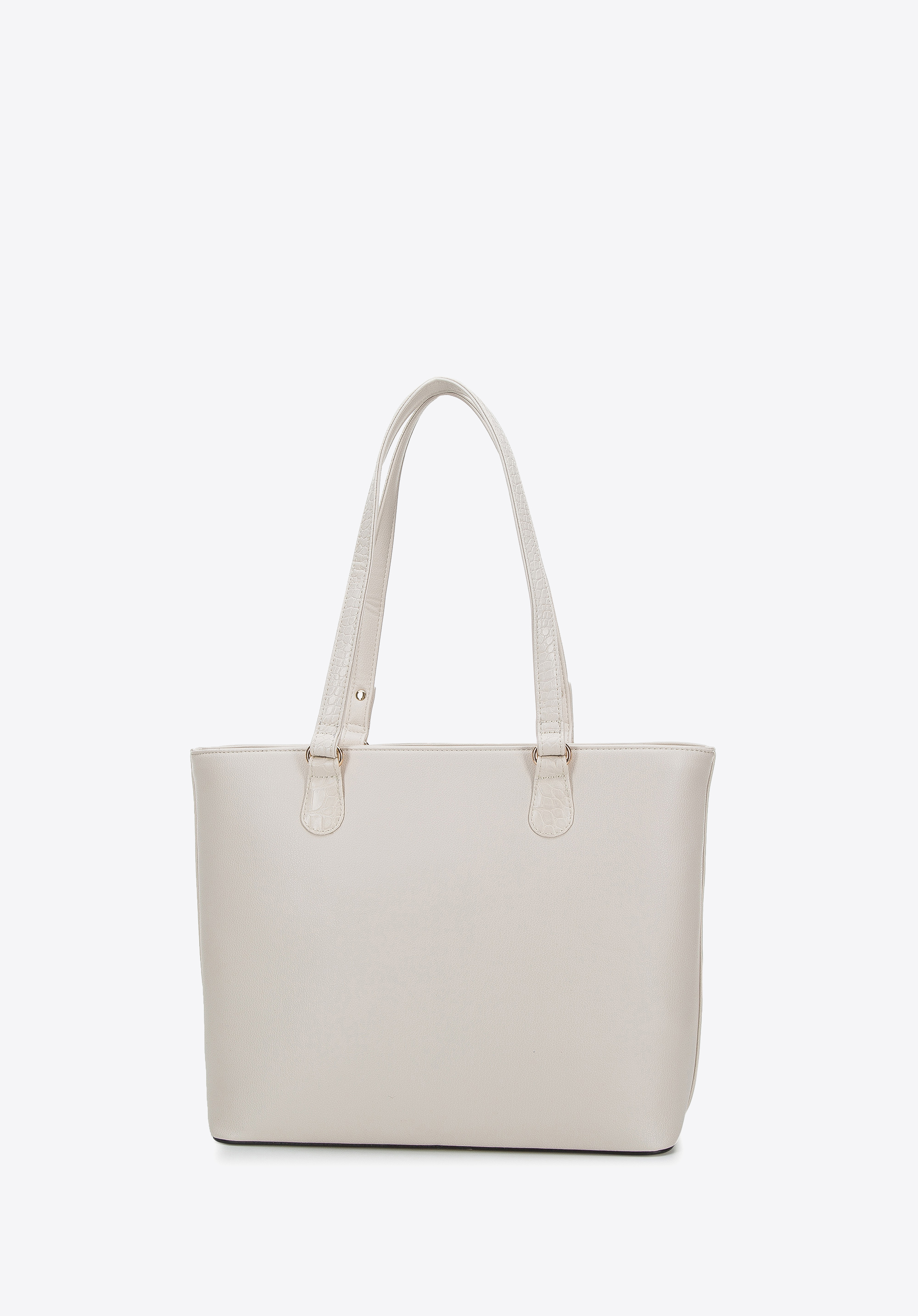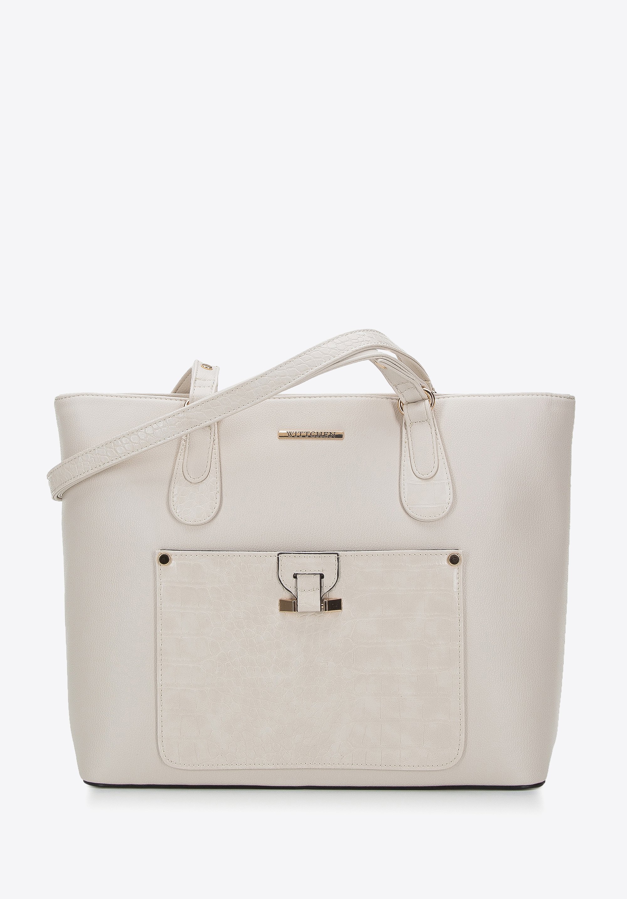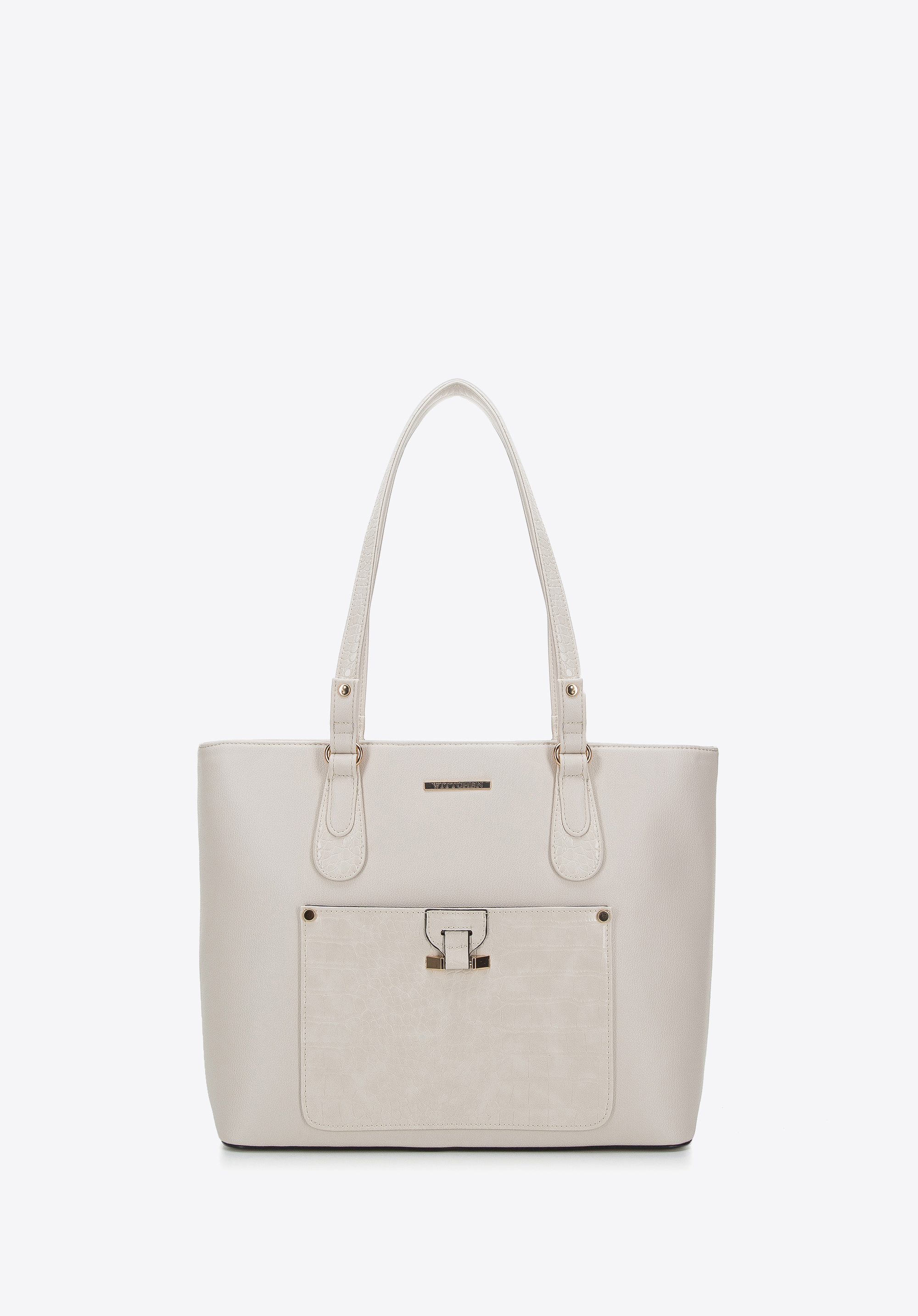 Torebka shopperka z geometryczną ozdobą i wstawkami croco może być Twoją nową, ulubioną torebką, z którą będziesz wyglądała stylowo każdego dnia.