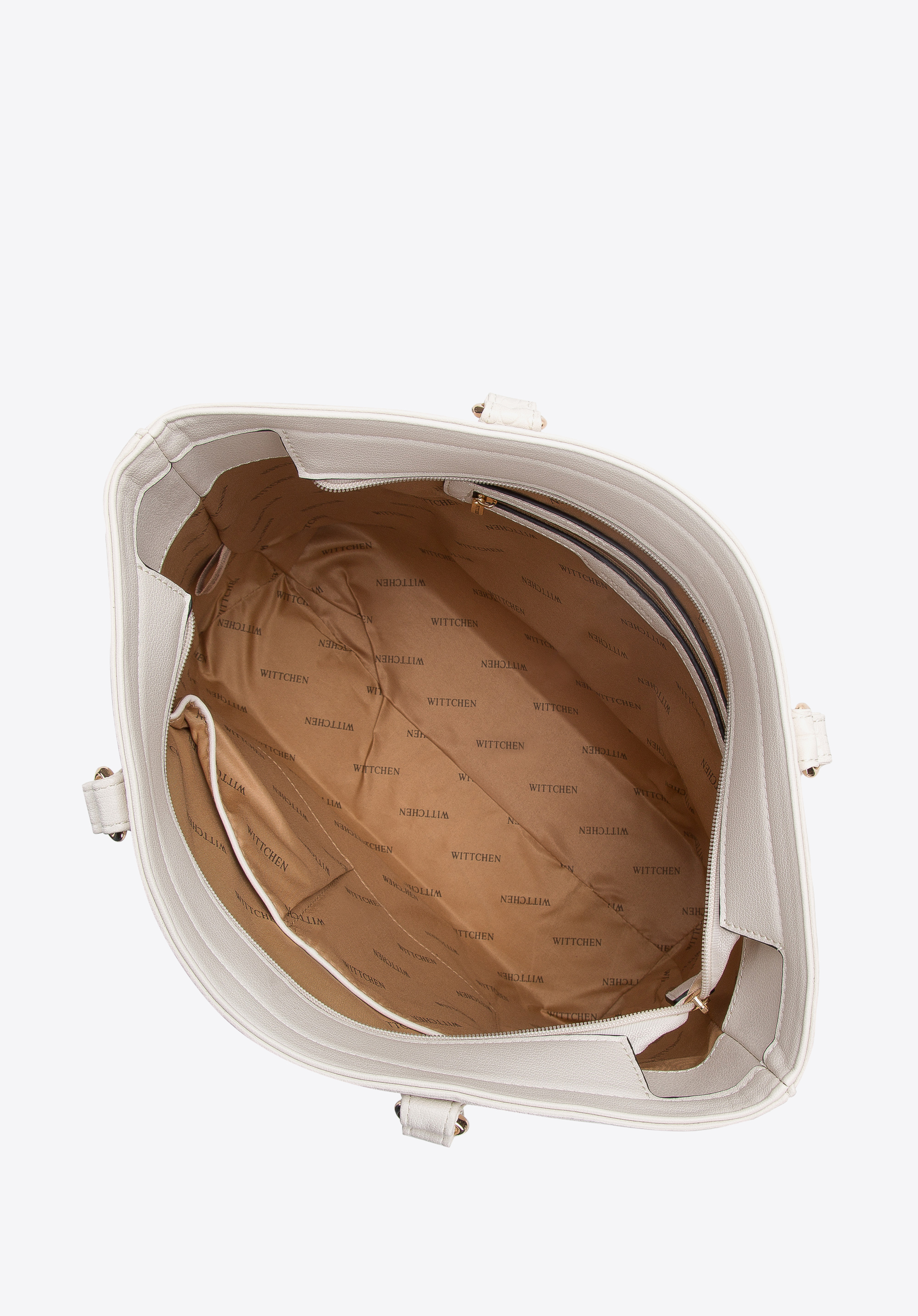 shopperka jest bardzo pakowna: zmieści portfel, kalendarz, butelkę wody, dokumenty w formacie A4 i jeszcze więcej. Możesz ją zabrać na wycieczkę, jak również do pracy lub na uczelnię. Będzie świetnie pasowała do długiej sukienki, jak również marynarki i prostych spodni – właściwie do wszystkiego, co nosisz na co dzień.